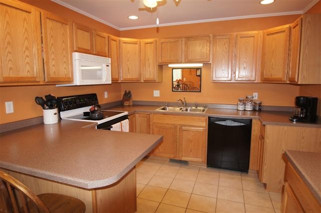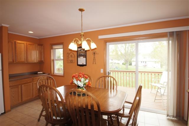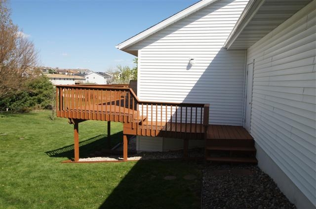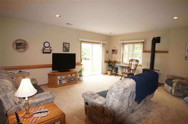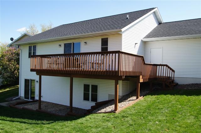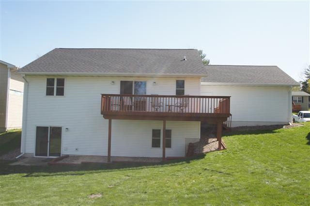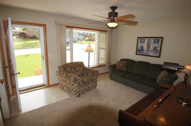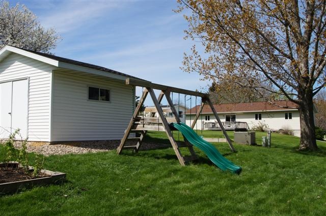 Quality built ranch home with finished walkout lower level. This home features 2 x 6 exterior construction, brick front, spacious kitchen (appliances included) with ceramic tile floor, master bedroom suite, 18 x 21 family room, free standing gas stove, oversized 2 car garage, large deck and deep lot. 14 x 14 storage shed. Conveniently located just a few minutes from Lands' End, Hwy 18/151 and shopping. Square footage approximated per the seller.