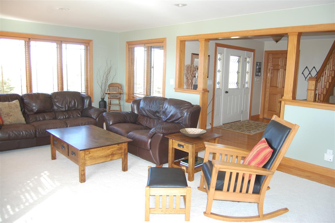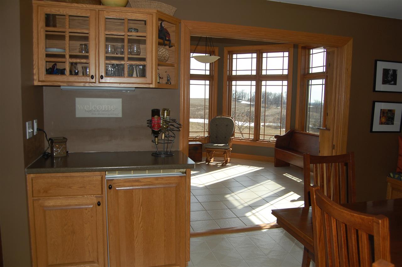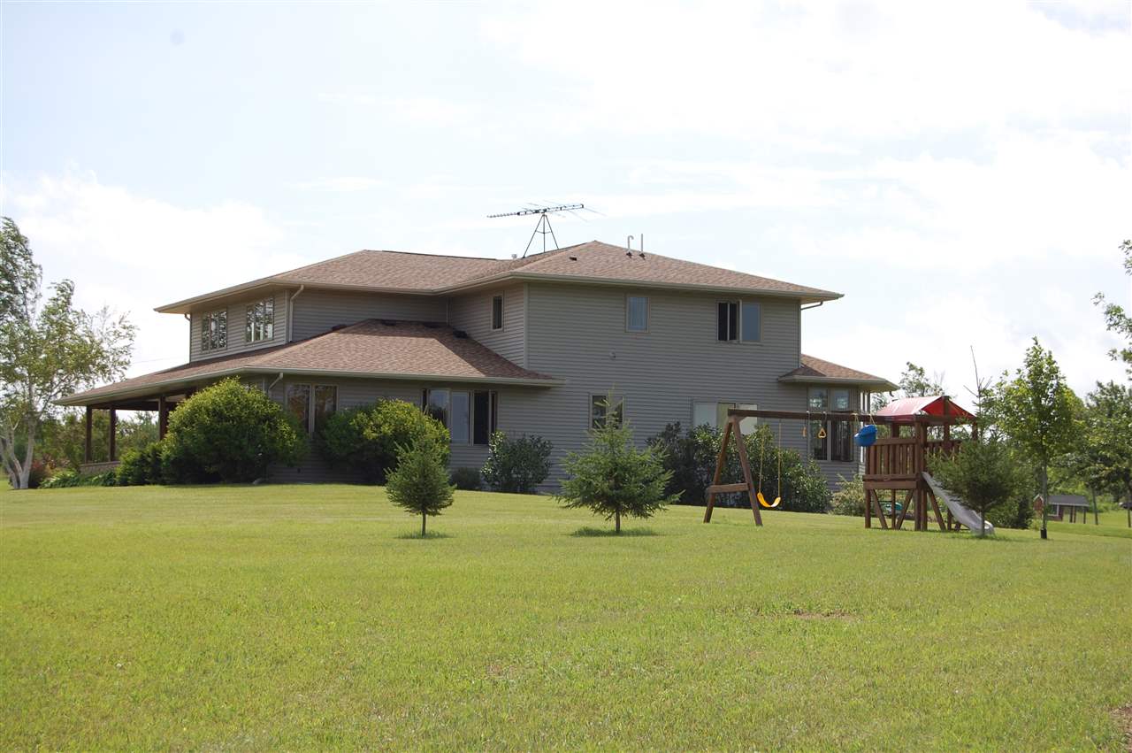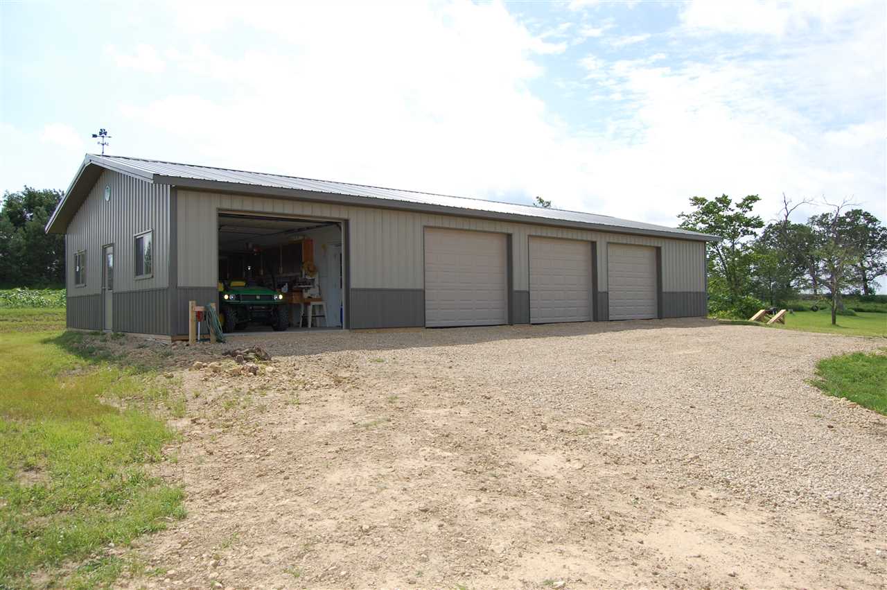 Rare opportunity for country living near town. Meticulously maintained & updated 5 bdrm home. You'll love the open floor plan, huge kitch area w/ island breakfast bar & tile backsplash. Office on main flr or use as a 5th bdrm. Lrg bdrms & master bdrm suite w/ walk-in closet & private full bath. Convenient upper level laundry. Home sits on 40 ac & incl a spectacular newer 4 bay outbldg w/ running water & heated workshop. The perfect man cave! 11 tillable ac currently rented, 17 ac CRP pays most of the taxes.