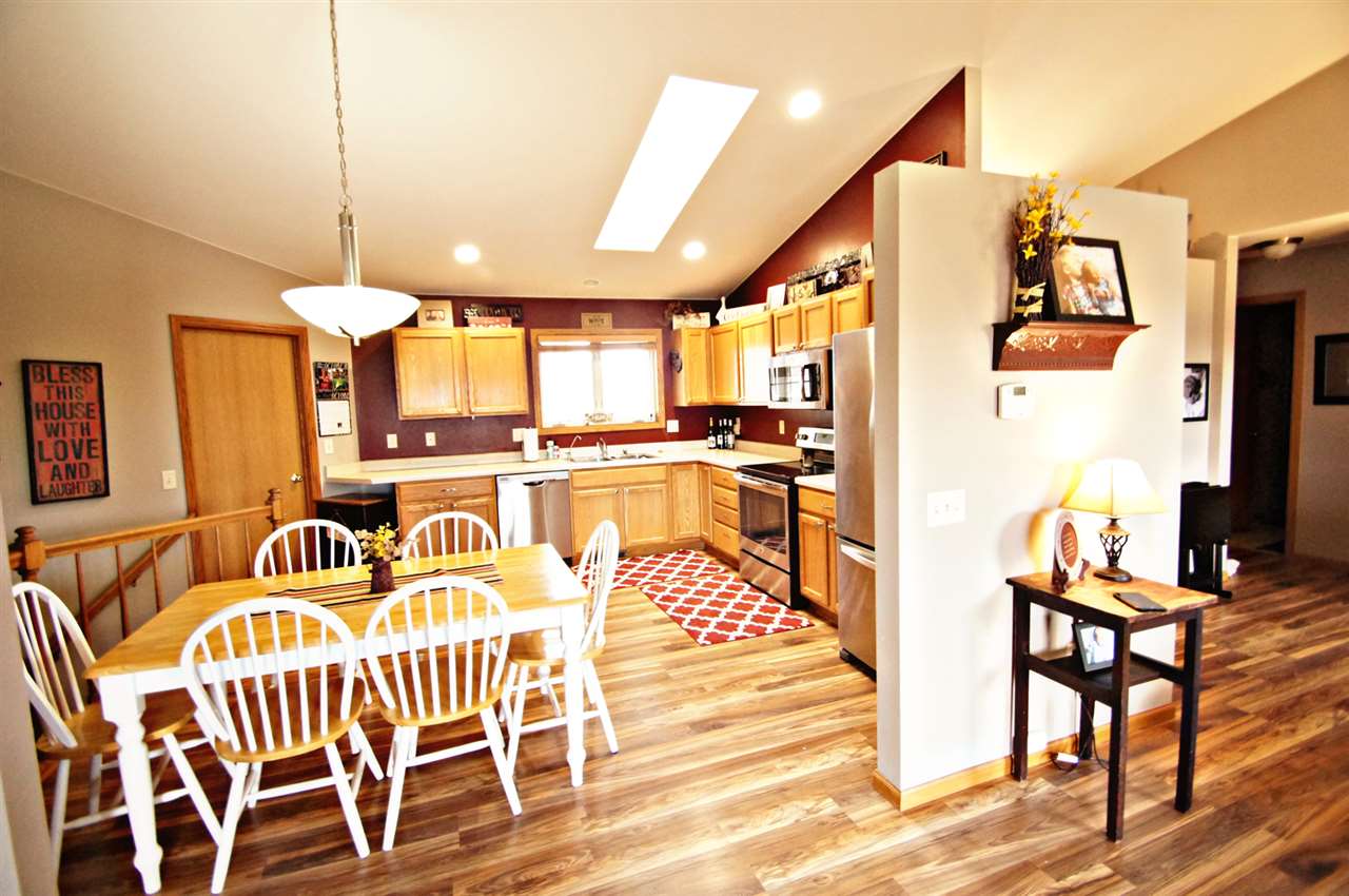 Stunning 3 bedroom, 3 full bath ranch in the heart of Barneveld. Open main living area complimented with vaulted ceilings. Recently installed beautiful wood laminate flooring throughout. Large master suite. Separate laundry off garage. Amazing finished lower level walk-out offers a spacious rec room with lots of area to entertain, including a bar! Basement also has a finished bonus den/office, full bath and BIG storage room. Everything is ready to go for you in this "like new" home. Must see today!