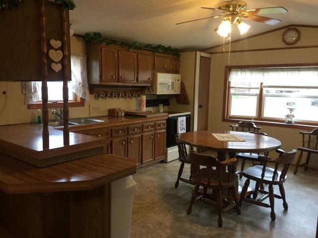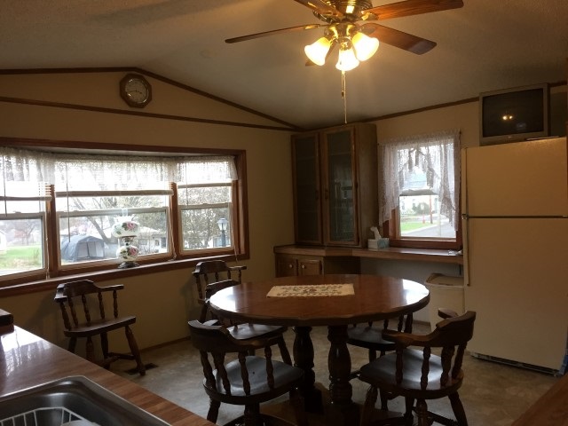 Why rent when you can own this property! 2 bedroom manufactured home nestled on a nice sized lot with a 2 car detached garage. Located only a couple blocks from the school and park. All appliances are included. Come take a look!