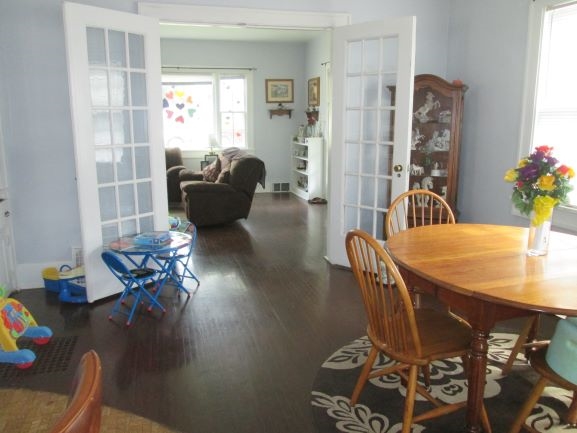 Classic 4 bedroom 1.5 bathroom affordably priced two story home with hardwood floors throughout in great location just 2 blocks from the square in Lancaster. Living room features a breathtaking fireplace which has been converted to burn pellets. Dining room includes french doors and built in storage. Entry to upstairs from either the living room or kitchen. A very gracious home just waiting for a new owner.