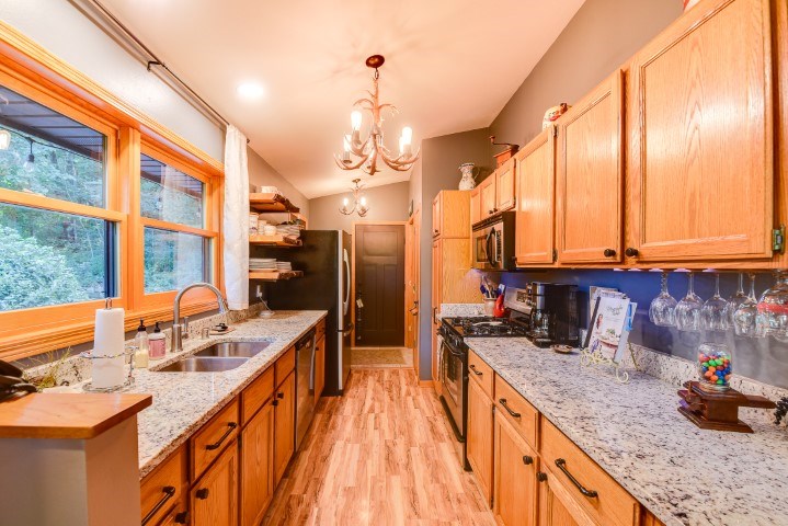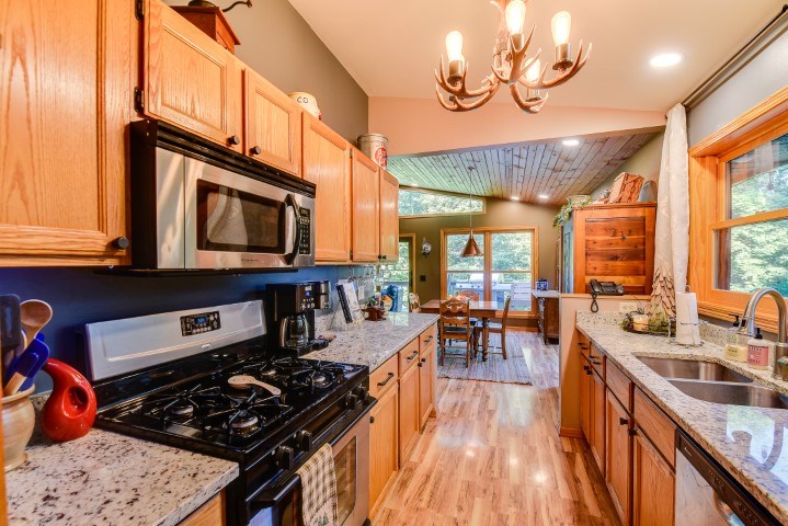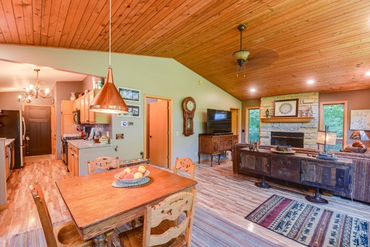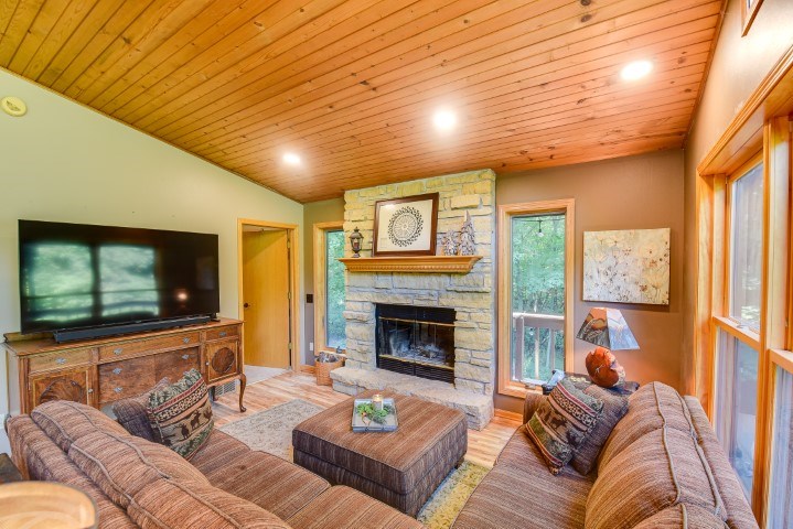 You’ll love this stunning 3 bed, 2 bath home in a park-like setting. Features an open dining/living room combo & floor-to-ceiling stone fireplace. The master bedroom & bath with skylights are also on the main level. Recently remodeled LL includes a family room & 2 bedrooms that walk-out to the patio. Many updates including granite counters, windows, sliding and exterior doors, newer furnace and A/C. Located on a beautiful wooded hillside in a lovely rural neighborhood on private drive. Close to Gov. Dodge St Park, full shopping & excellent medical services in Dodgeville, major employers such as Lands’ End, Vortex Optics & Duluth Trading. 20 mins to APT.
