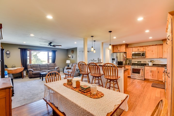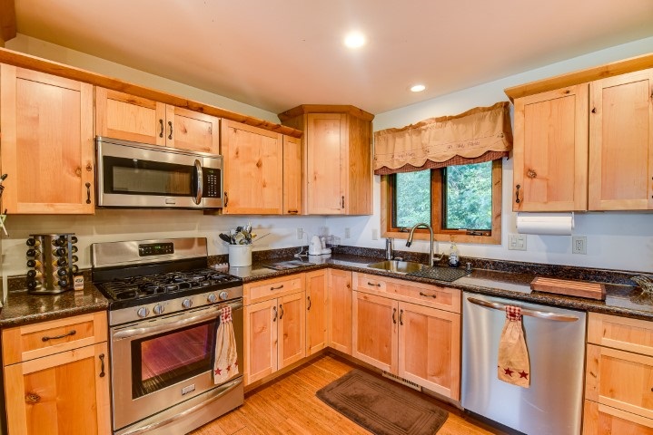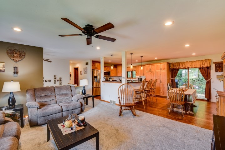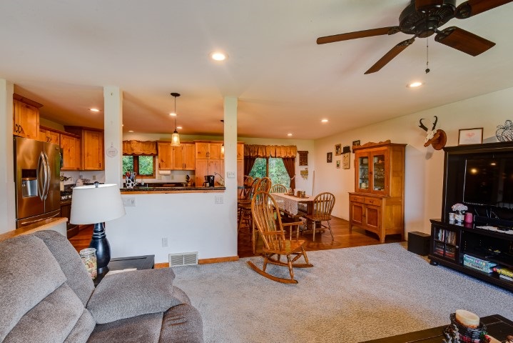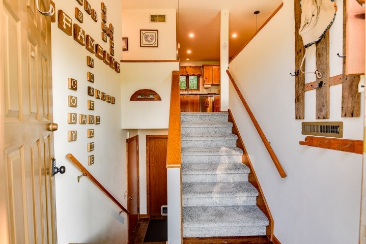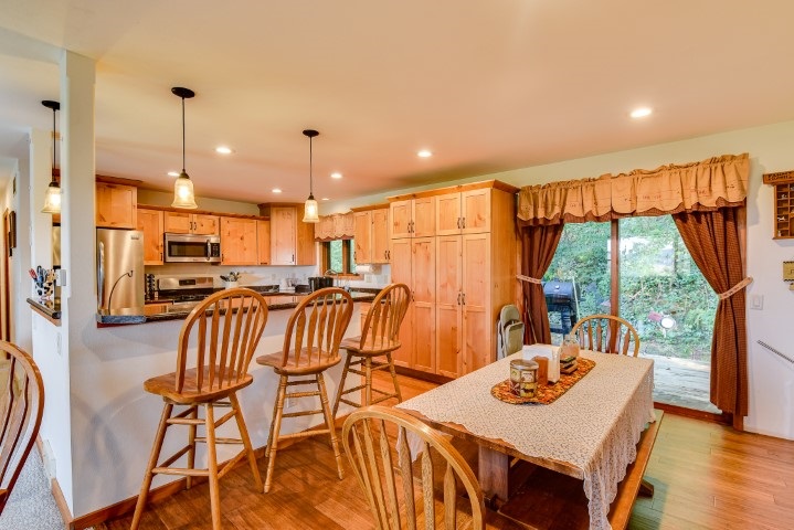 Motivated Seller!! Don’t miss out on the breathtaking views right outside your front door! Beautiful 3 bedroom home ready for you to move in. Rare lot with 1.13 acres! Beautiful updated kitchen with breakfast bar, stainless steel appliances and gorgeous knotty pine cabinets. Extra family room in the basement. Enjoy the frequent visits from deer and other wildlife. Many updates throughout, some carpet 2020, water softener & water heater 2016, garage doors and openers 2015, kitchen and bath 2016, basement refinished 2017. Backs up to the park where you can enjoy the walking paths.