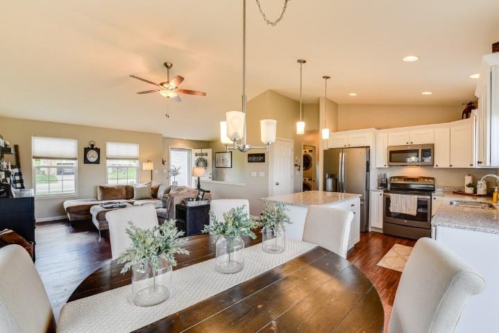 Showings start Saturday, May 15 and end Sunday, May 16 @ 7:00pm. This home is gorgeous! 4 bedroom, 3 full bath with a 3 car garage. Spacious and open from the living room to the kitchen, full of light with beautiful quartz countertops. Current owners have done many updates, added a deck that walks to back yard, landscaping, fully insulated the garage, finished the basement, which is a must see! The basement includes a full bath and bedroom with a large living room space, workout/office area and a wet bar. Welcome Home!