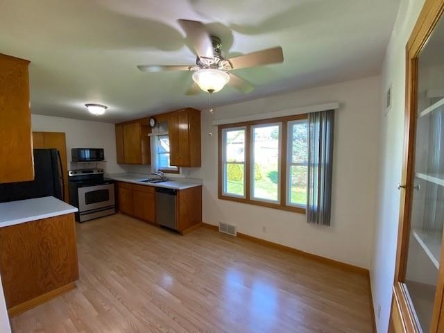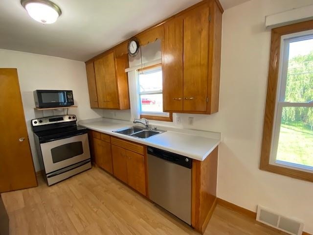 Charming 2-bedroom bungalow walkable to the schools, parks and downtown. You will love the gleaming wood floors, built-ins & arched doorways, main-floor primary bedroom and laundry. There is a 1 car attached garage with additional storage below to store your lawn mower & patio furniture. The unfinished walkout basement can be finished to your taste. Level lot with nice back yard & patio. All appliances included. Many updates throughout including newer windows, fresh paint and a hot water heater in 2019. The flexible finished space in the upstairs would provide great space for a home office, craft room or potentially another bedroom. All measurements are approx. Call for your private showing today!