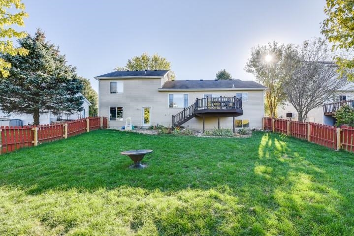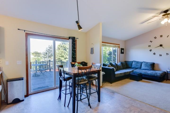 This is home! 4 bedroom with the potential to have a 5th bedroom or family room in the lower level. Beautiful open kitchen with island that opens up to a relaxing deck and large fenced in yard. Vaulted ceilings and solid oak 6 panel doors. Gorgeous built-in oak bookshelf in the lower level. Tons of storage with extra closet space throughout. Desirable location in a wonderful neighborhood, close to schools and a quick walk to Farmers Market and downtown Mount Horeb.