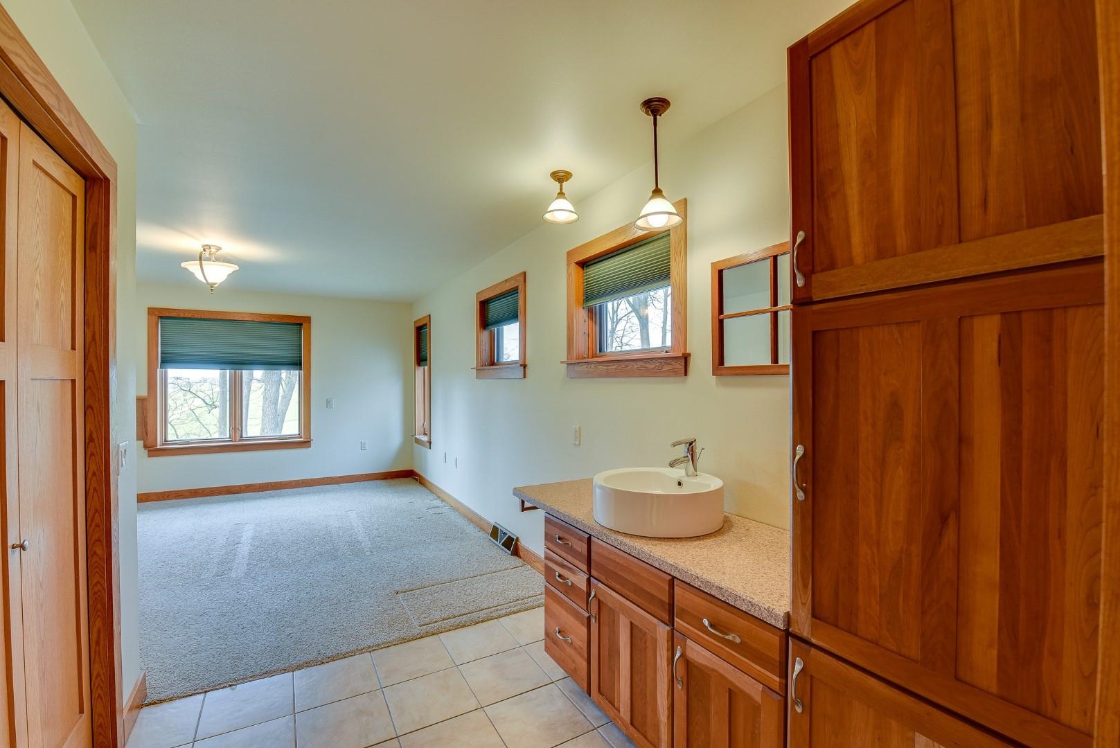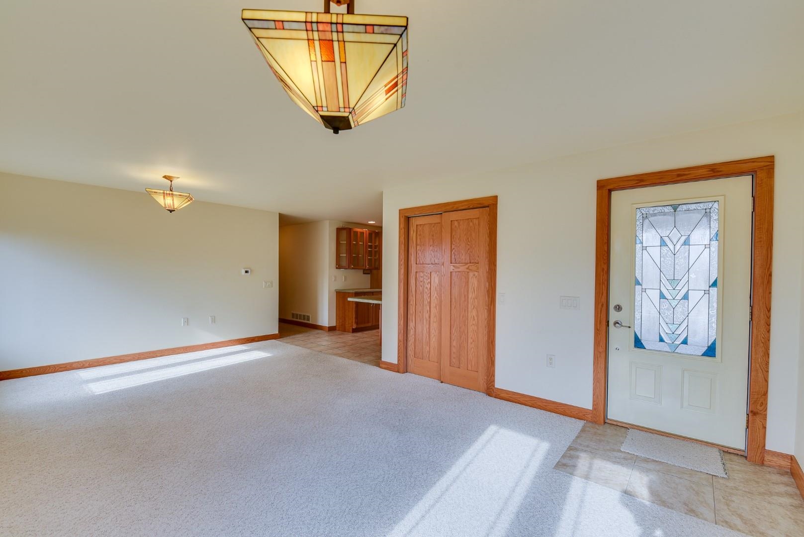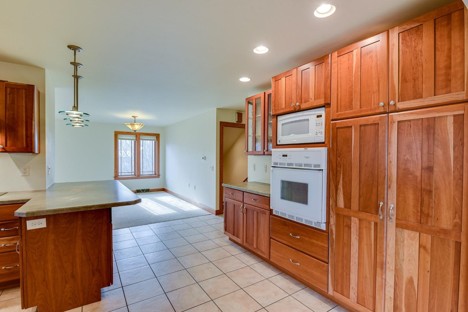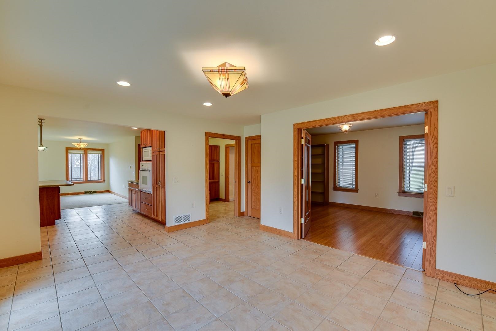 You will love this well thought out custom built home and the beautiful sweeping countryside views from the back of the home. This home was designed to be aging friendly with everything you need on the main level. There are 2 primary bedrooms with full en-suites. Conveniently located close to the schools, downtown and for commuting. This home boasts a 2-car garage connected to main level with additional space for up to three more vehicles and/or toys connected to the lower level. The main level office/den could easily be converted to another bedroom. The lower level is partially finished and plumbed for an add. bath (stool inst.). It would make great space for an in-law suite and has the potential to be a separate apartment. Loads of storage throughout. Lots of windows & nat. light.