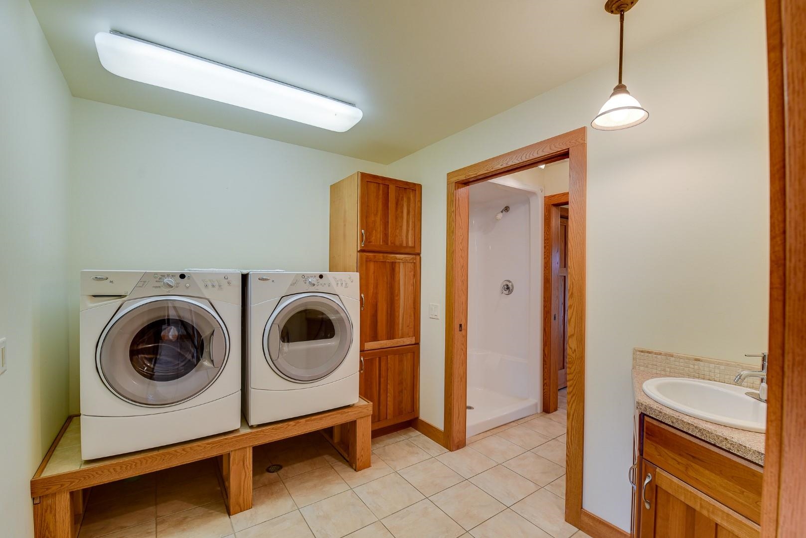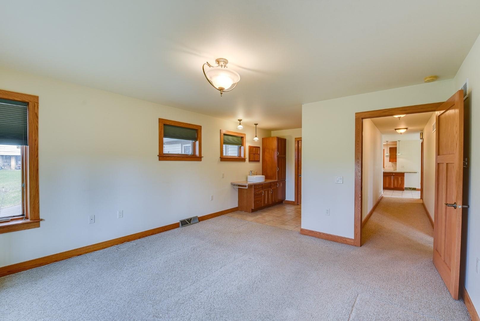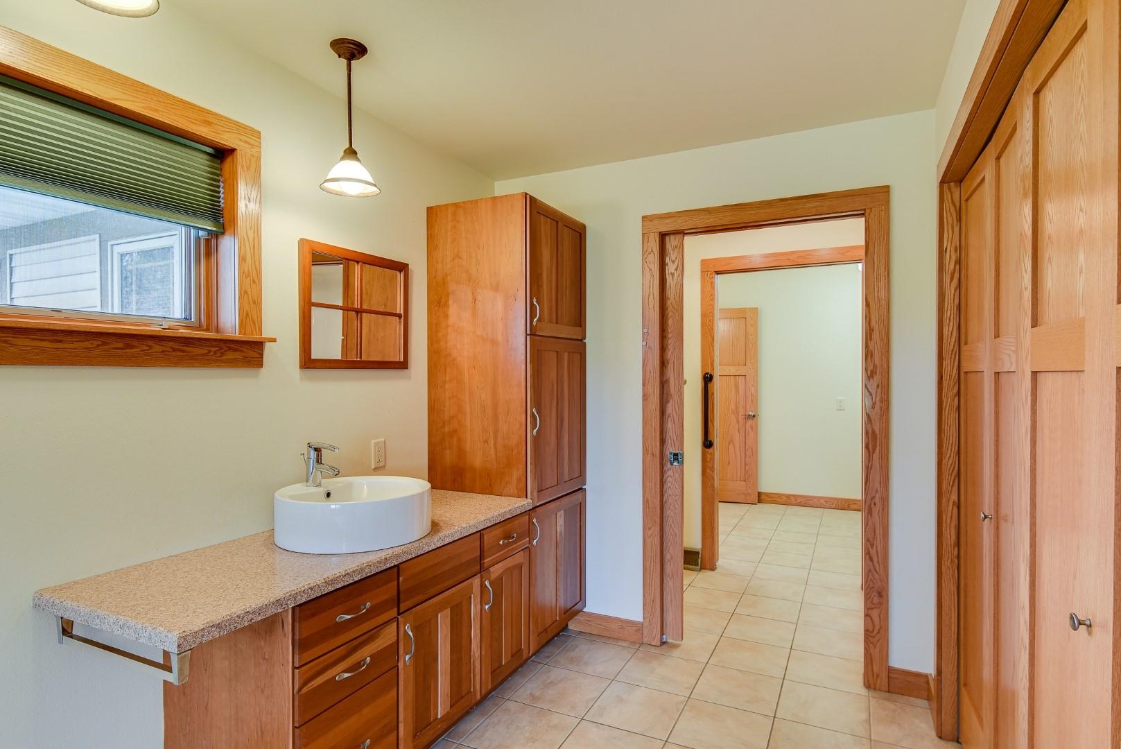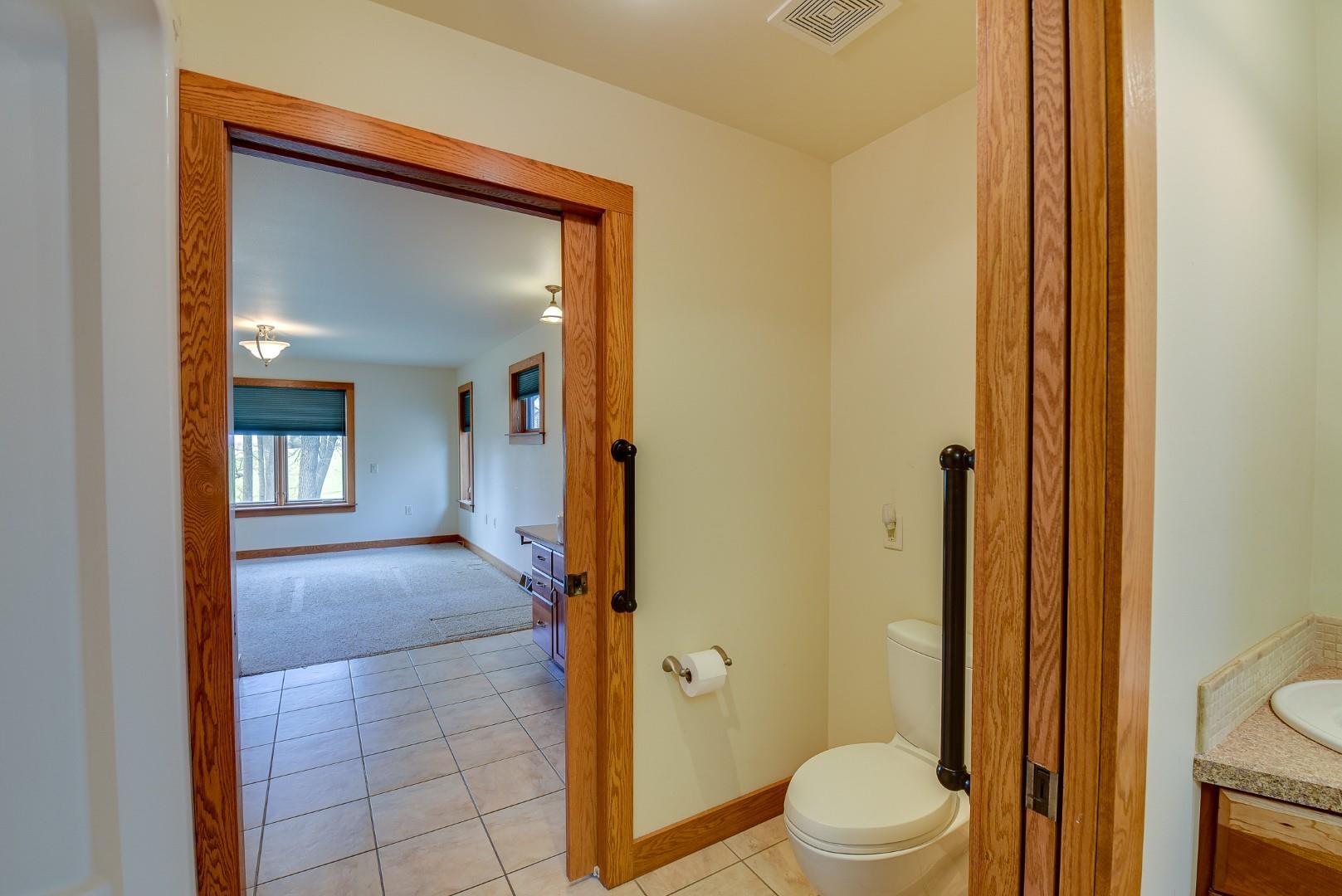You will love this well thought out custom built home and the beautiful sweeping countryside views from the back of the home. This home was designed to be aging friendly with everything you need on the main level. There are 2 primary bedrooms with full en-suites. Conveniently located close to the schools, downtown and for commuting. This home boasts a 2-car garage connected to main level with additional space for up to three more vehicles and/or toys connected to the lower level. The main level office/den could easily be converted to another bedroom. The lower level is partially finished and plumbed for an add. bath (stool inst.). It would make great space for an in-law suite and has the potential to be a separate apartment. Loads of storage throughout. Lots of windows & nat. light.