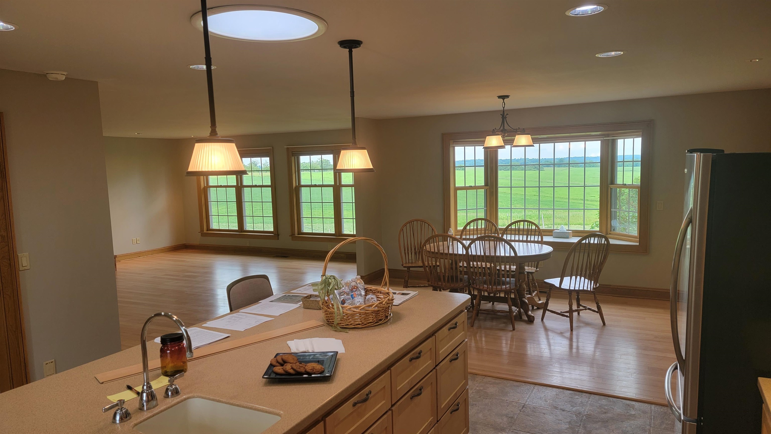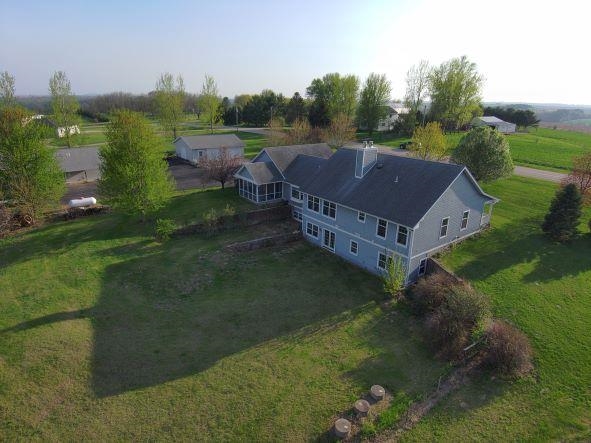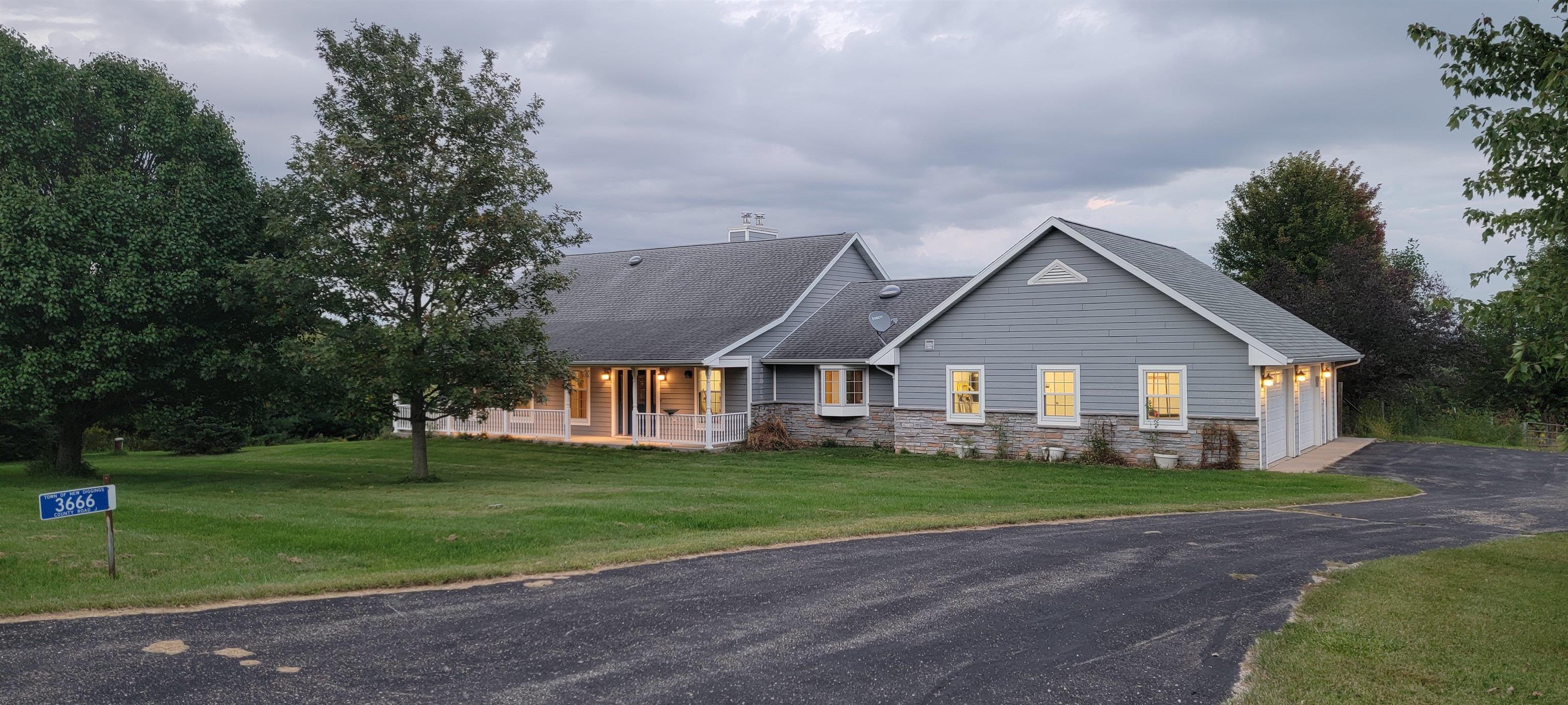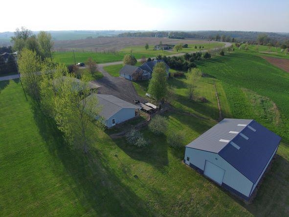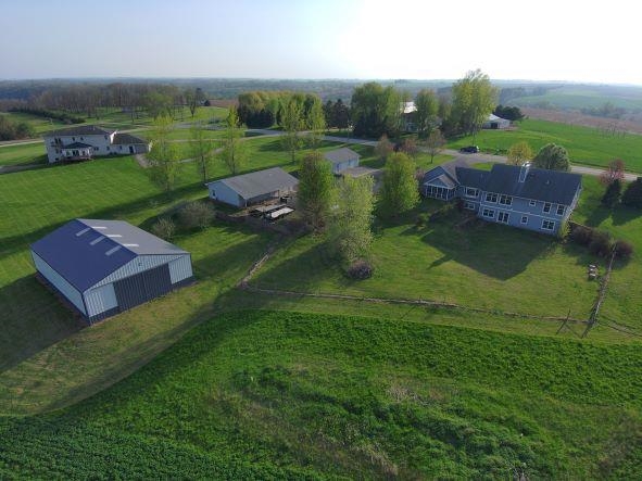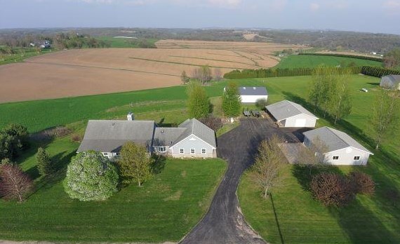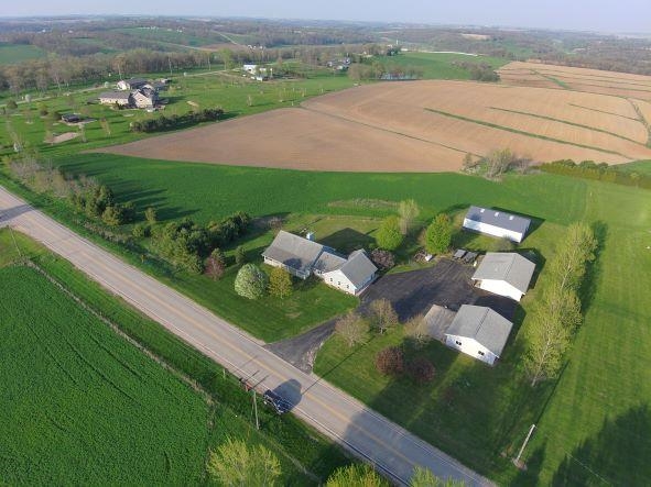 Looking for a piece of the country. This is it. Built 16 yrs ago this over 3500 sq ft 4 BR 3 BA is on 11 acres of heaven w/ beautiful views all around just minutes from Dbq, Galena, Pville or Monroe. Spacious main floor great room includes maple floor throughout, kitchen w/ Wolf BI appliances & LR w/ wood fireplace. Laundry area w/ appliances, 3 spacious BRs, main having a bath w/ WI closet. Walk out LL includes wood fireplace, 4th BR & bath w/ human shower & pet shower. Heat is provided by in floor geo thermal system w/ a heat pump for CA. Not sold yet? Wait there's more!!! Also included are 3 buildings w/ cement floors. A 30x36 detached garage with heat & electric, 30x50 workshop w/ heat & electric, & a 42x60 machine shed w/ electric. You will love this from the moment you look.