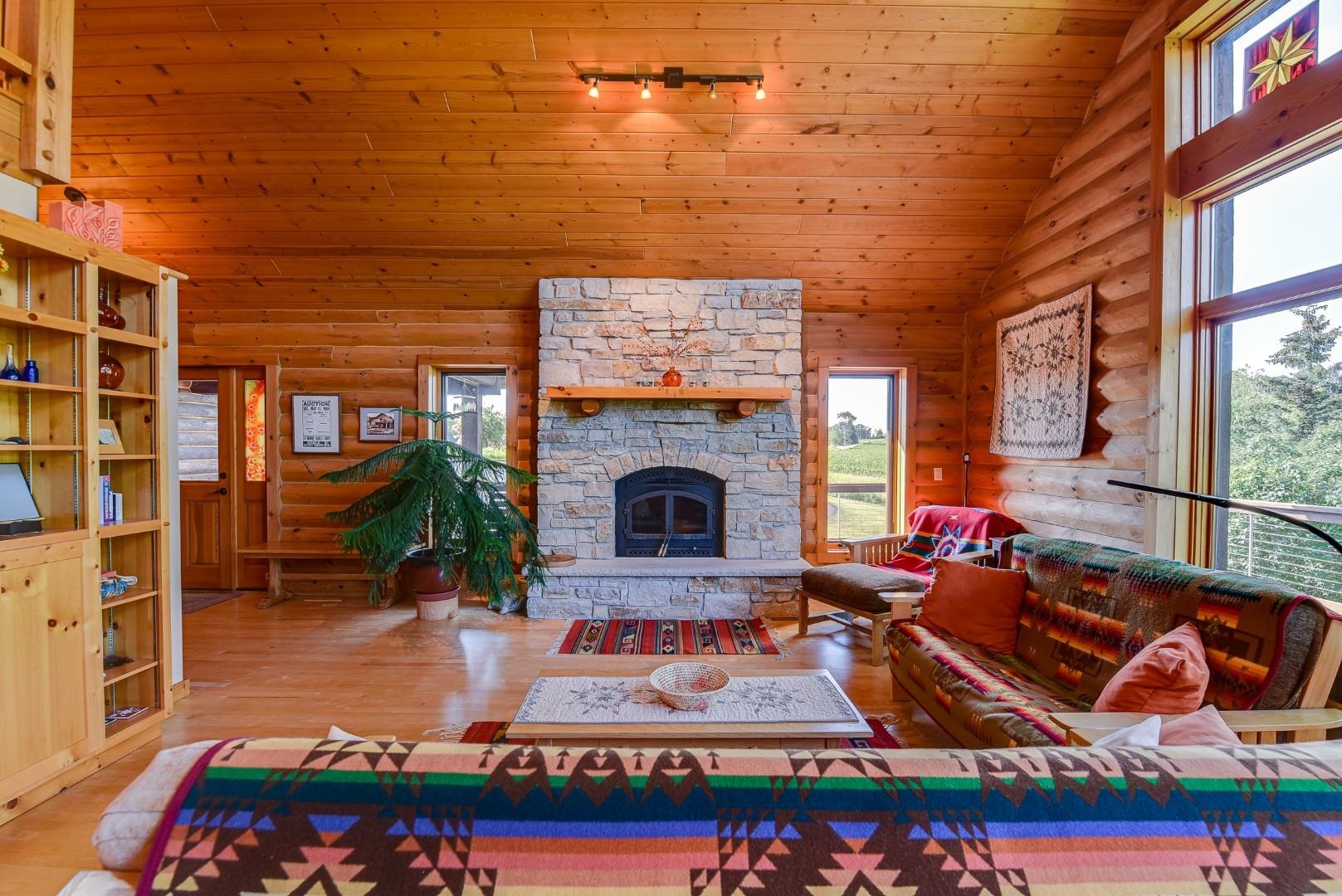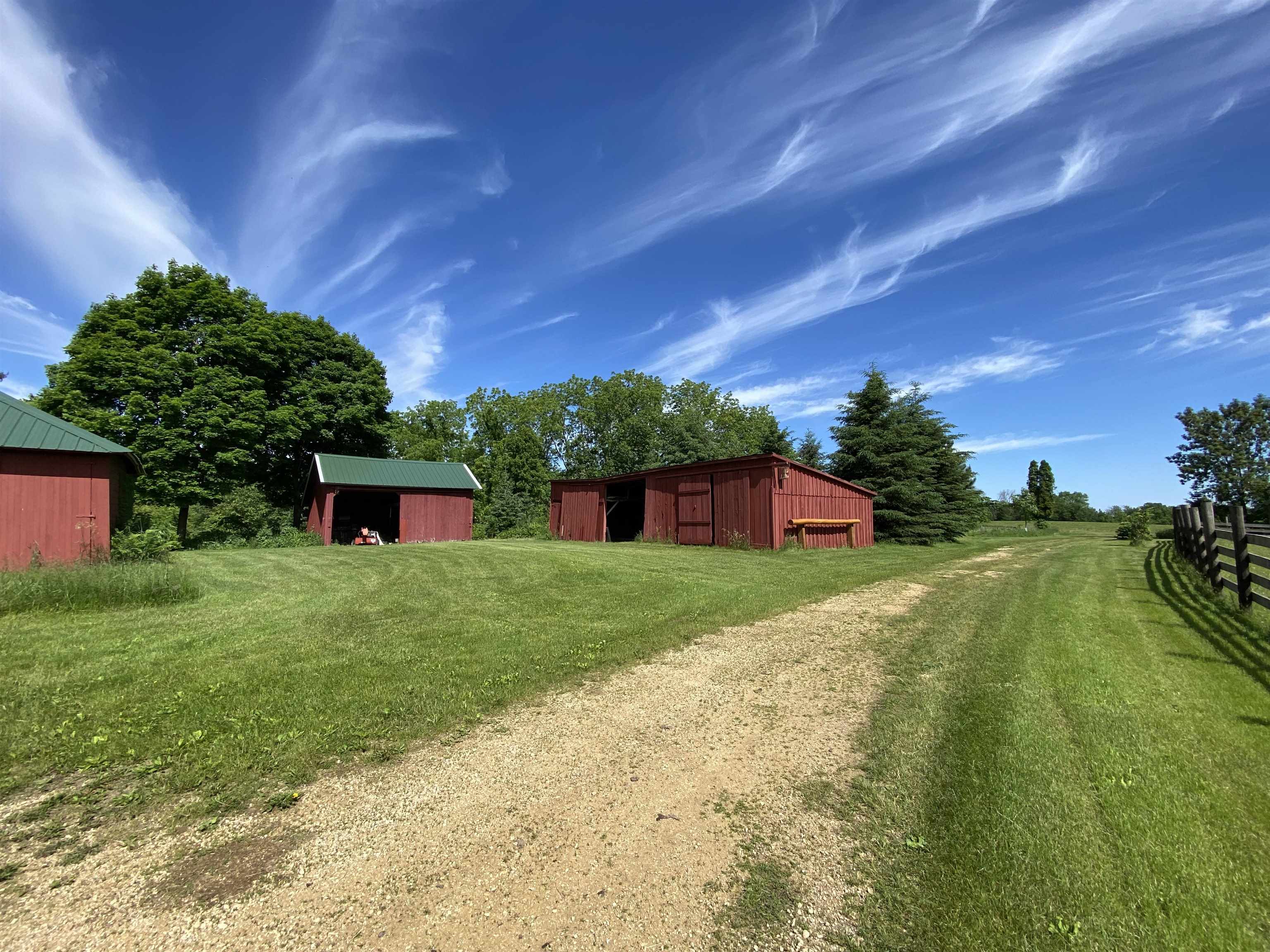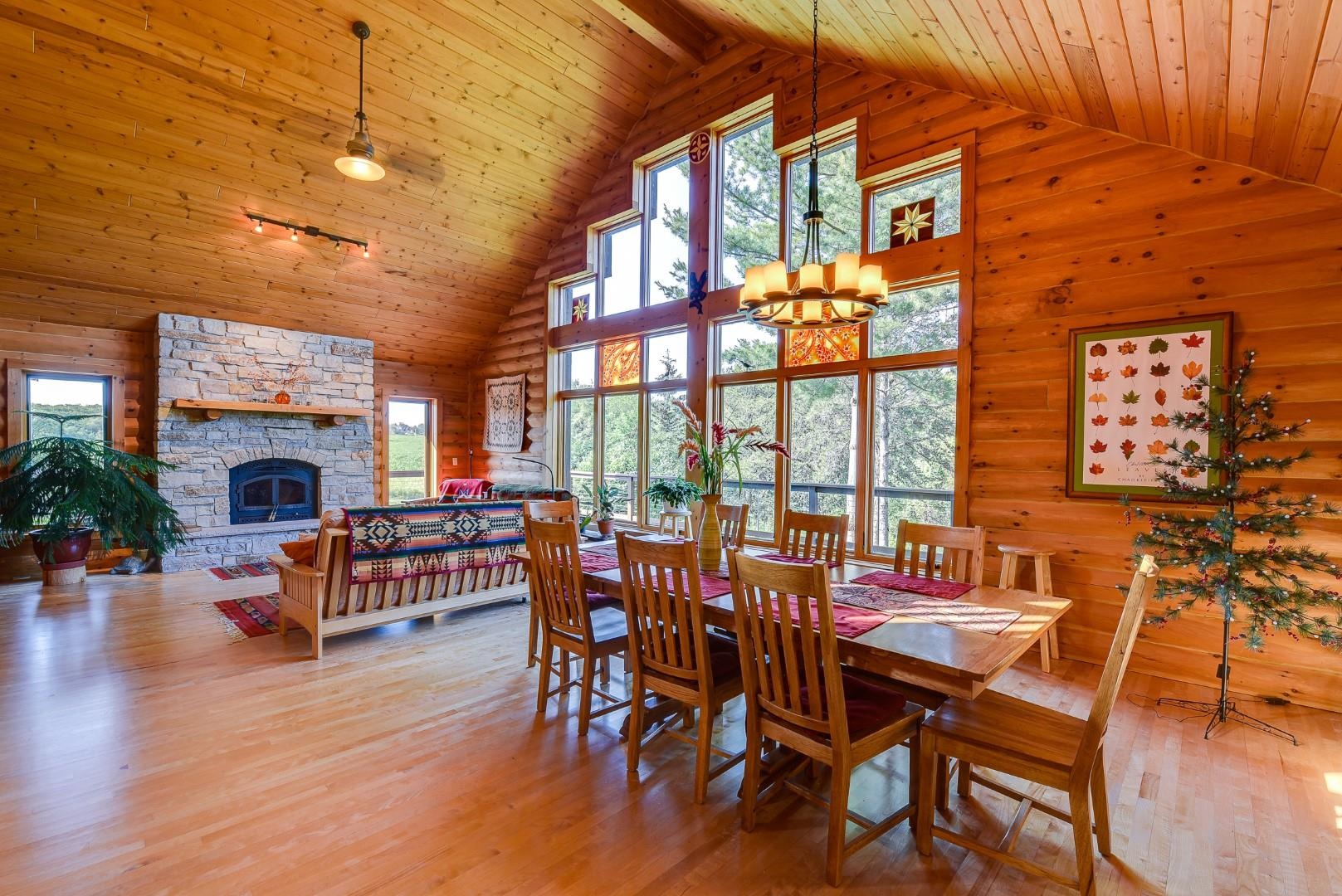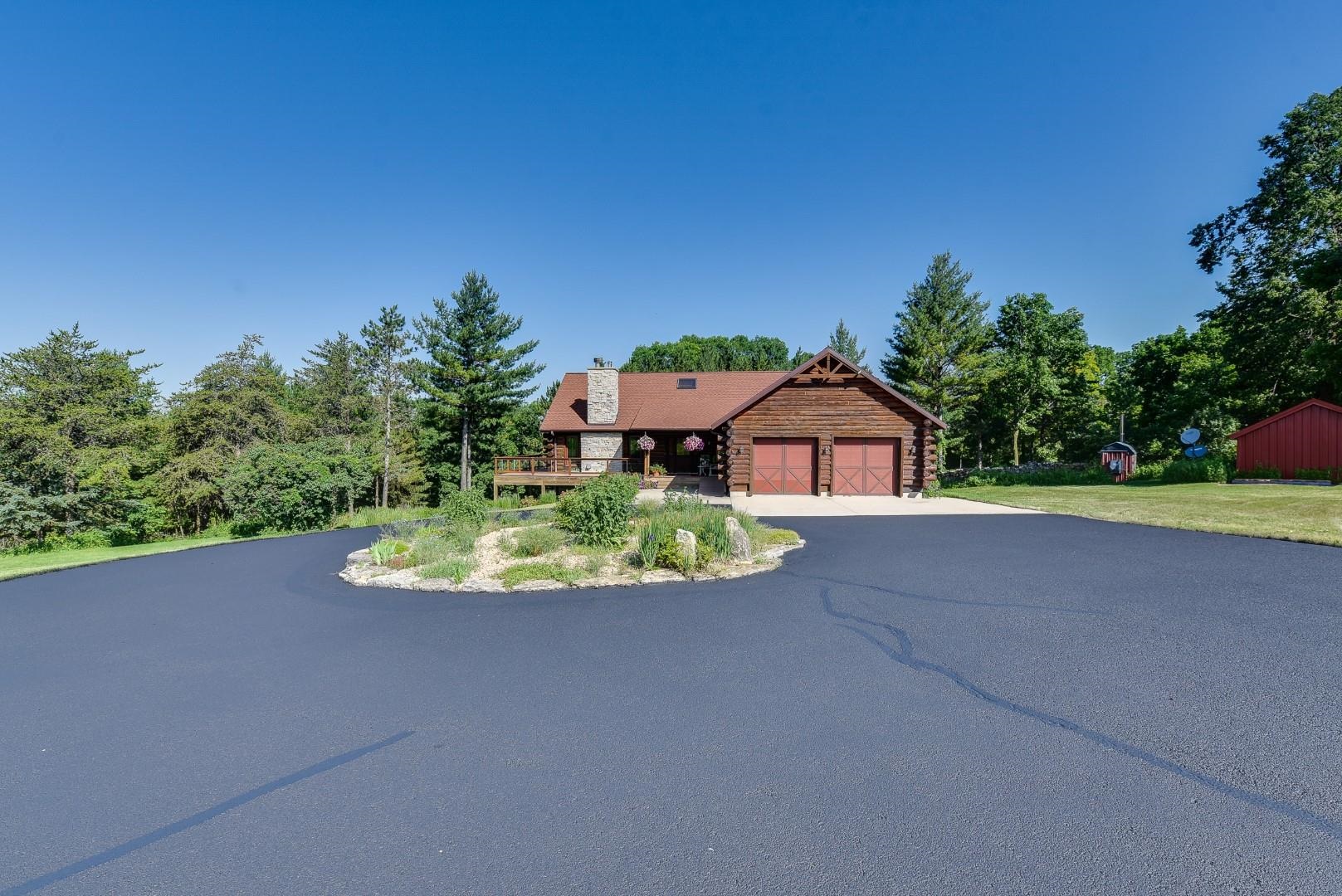 Your own private oasis! Stunning log home on just over 90 ac. Beautiful limestone wood burning fireplace on the main level, open floor plan w/ vaulted ceiling & large windows. Large kitchen w/high quality stainless, pantry & center island. Main level primary suite w/ 2 walk-in closets. Main level laundry. Great details built-in throughout including bookshelves & storage, desk in the office, closet systems, spice drawer in kitchen, epoxied garage, radiant floor heat in walkout level. Amazing 19x13 screened porch. 54 ac in MFL, 25 ac of tillable, over 5 ac of trails, rock outcroppings, creek, apple & pear trees, several well-maintained outbuildings including a great barn w/ metal roof. Excellent hunting and wildlife watching.