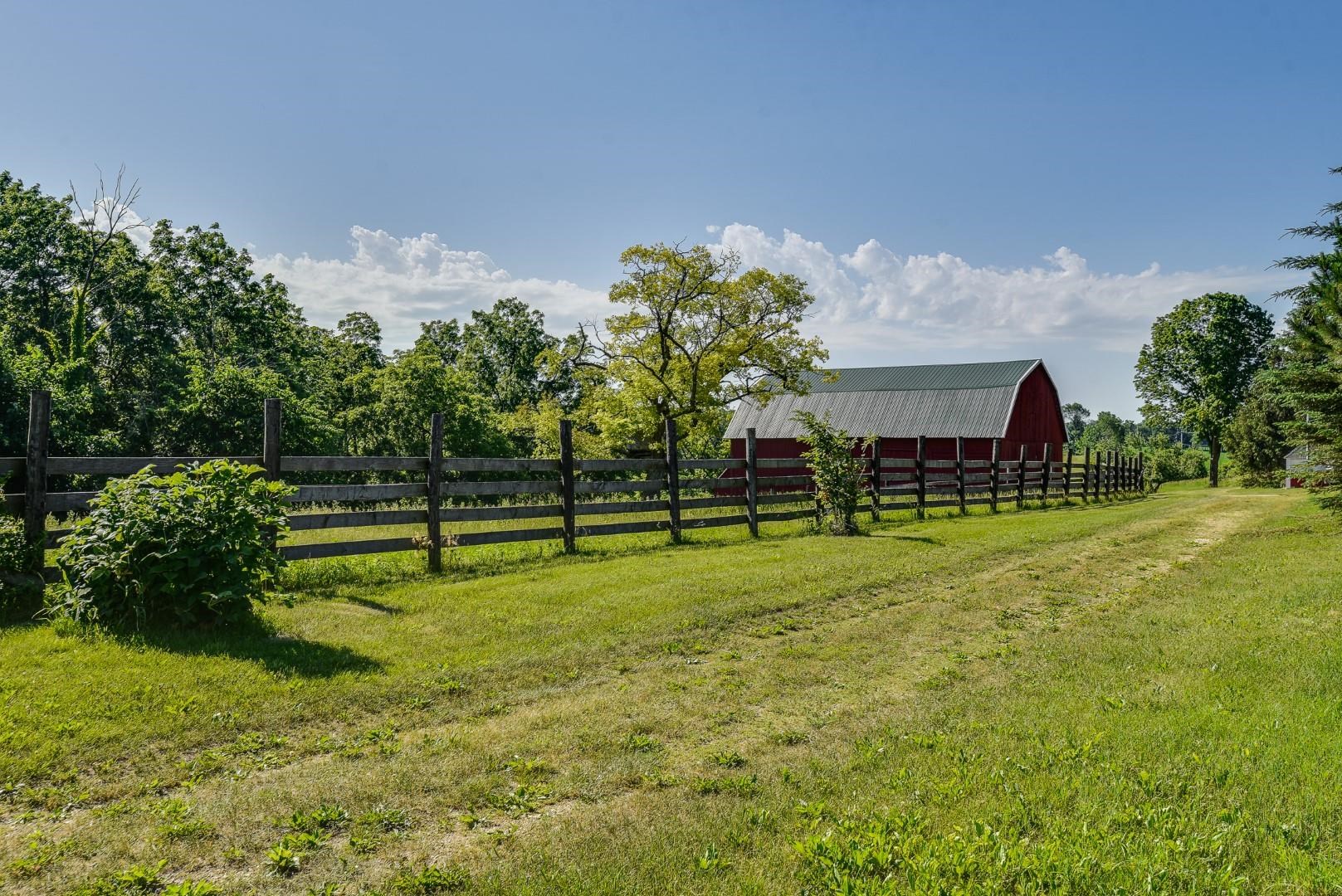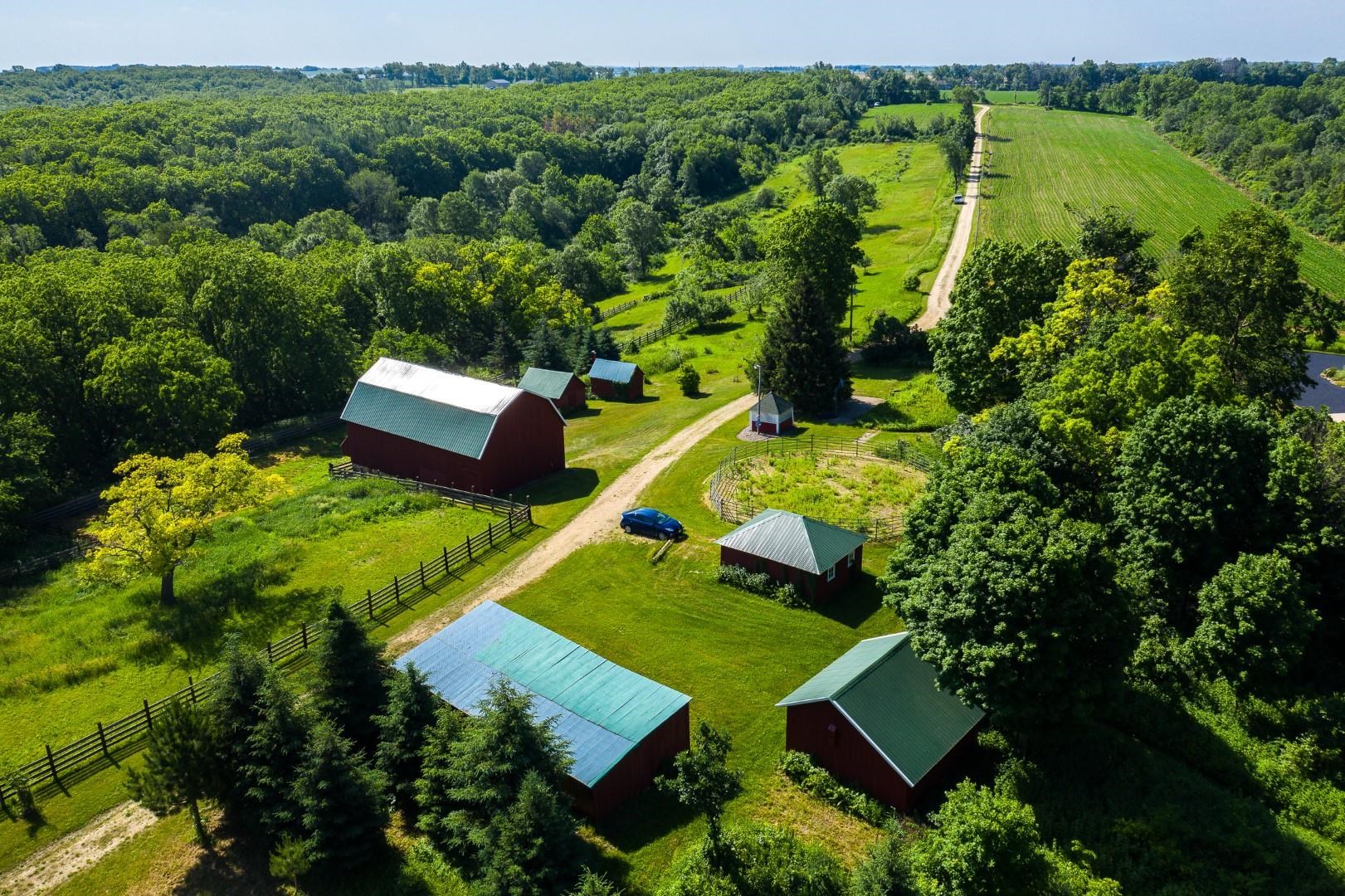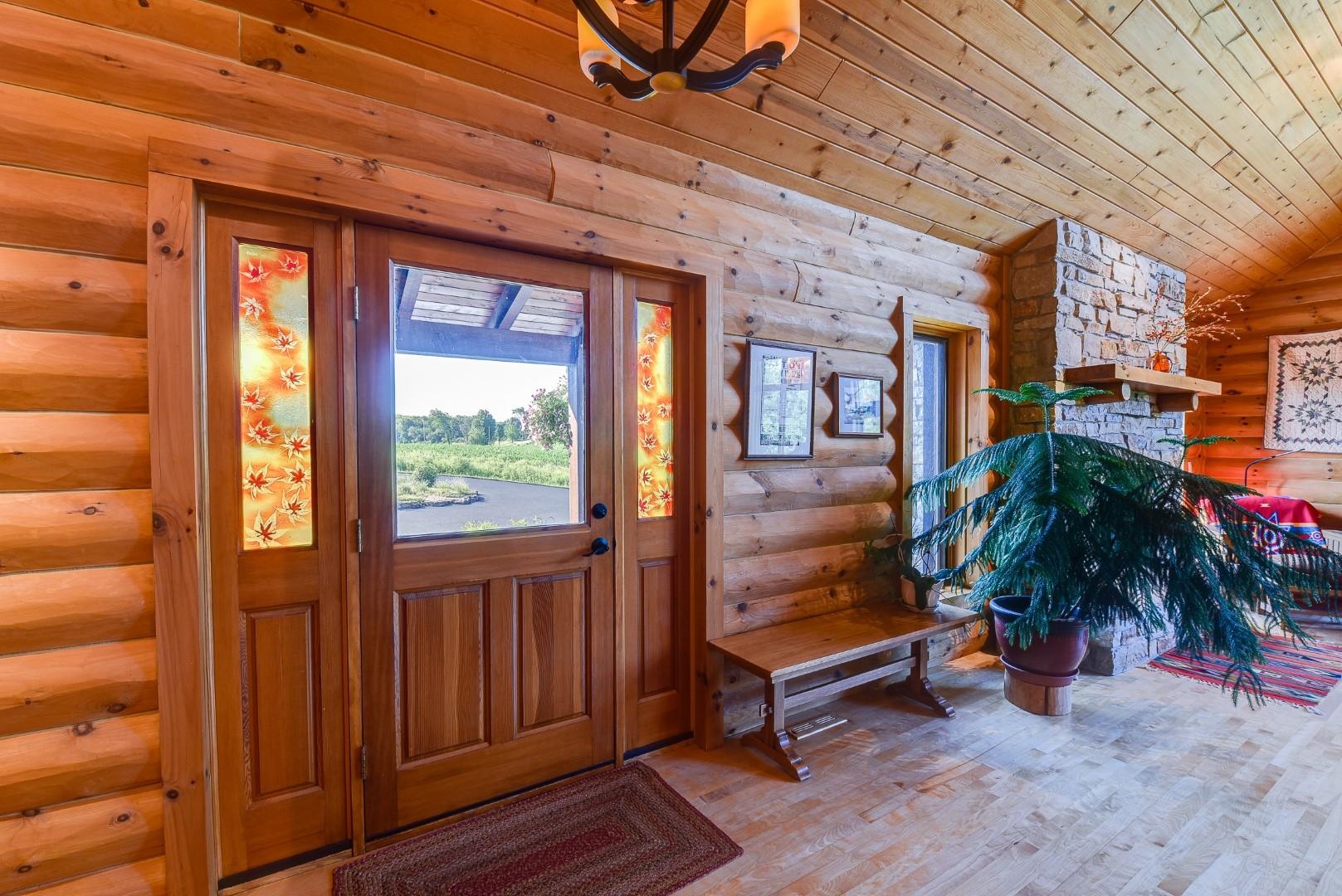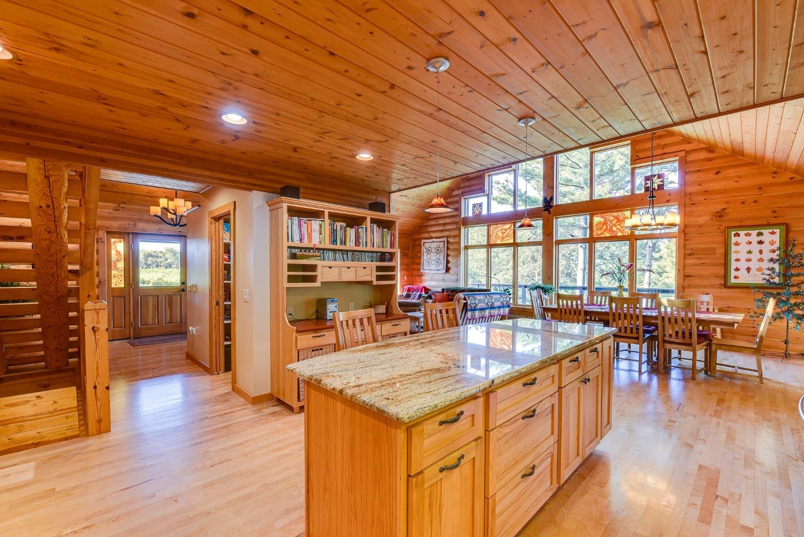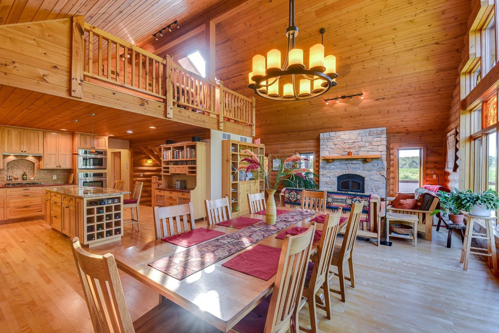 Your own private oasis! Stunning log home on just over 90 ac. Beautiful limestone wood burning fireplace on the main level, open floor plan w/ vaulted ceiling & large windows. Large kitchen w/high quality stainless, pantry & center island. Main level primary suite w/ 2 walk-in closets. Main level laundry. Great details built-in throughout including bookshelves & storage, desk in the office, closet systems, spice drawer in kitchen, epoxied garage, radiant floor heat in walkout level. Amazing 19x13 screened porch. 54 ac in MFL, 25 ac of tillable, over 5 ac of trails, rock outcroppings, creek, apple & pear trees, several well-maintained outbuildings including a great barn w/ metal roof. Excellent hunting and wildlife watching.