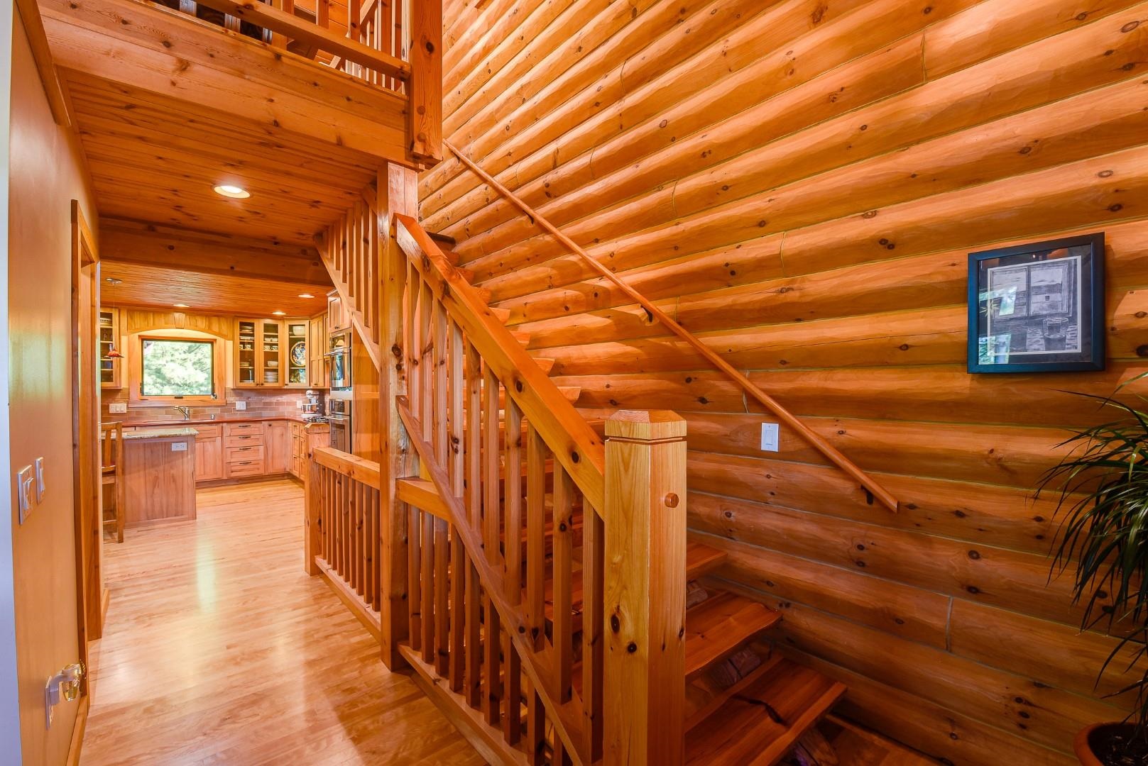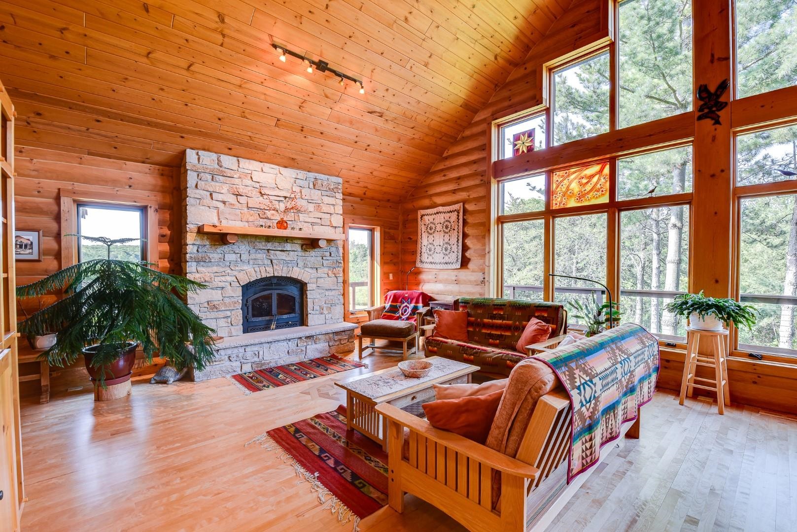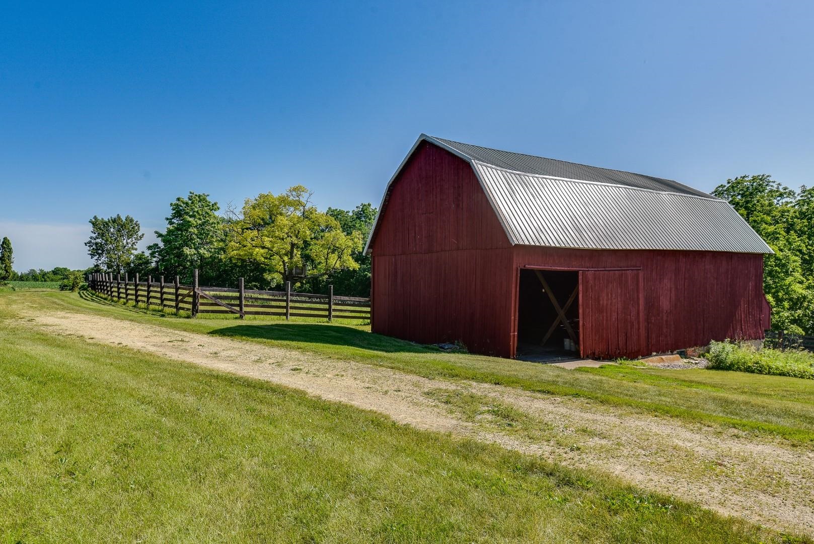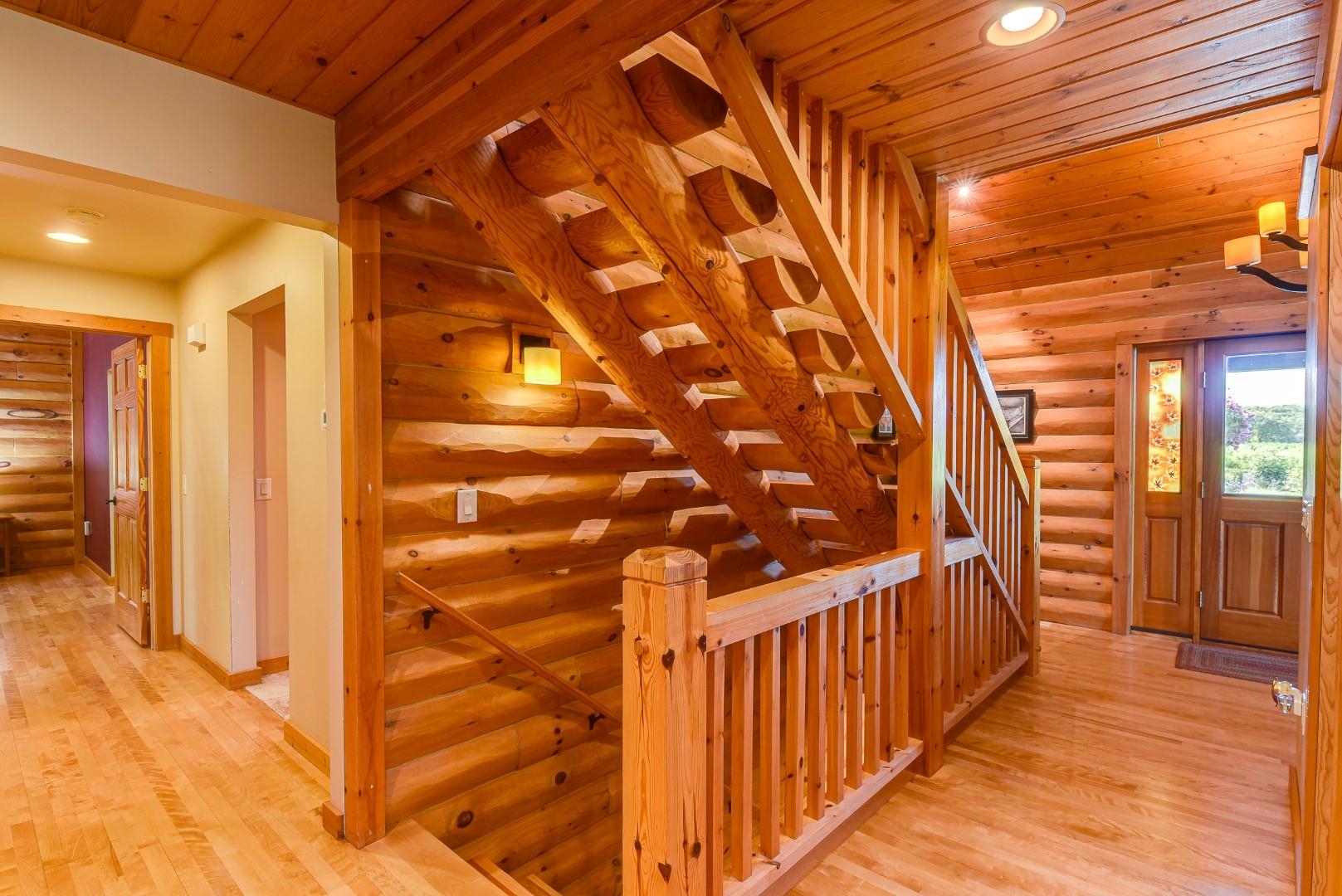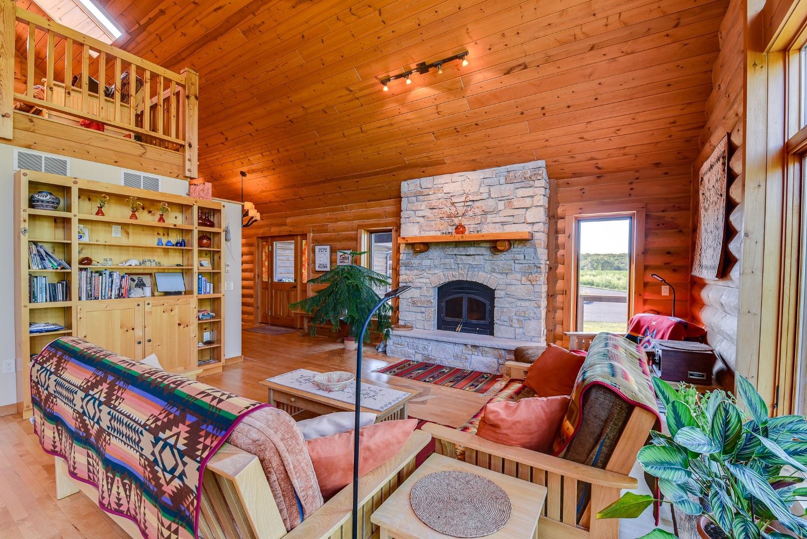 Your own private oasis! Stunning log home on just over 90 ac. Beautiful limestone wood burning fireplace on the main level, open floor plan w/ vaulted ceiling & large windows. Large kitchen w/high quality stainless, pantry & center island. Main level primary suite w/ 2 walk-in closets. Main level laundry. Great details built-in throughout including bookshelves & storage, desk in the office, closet systems, spice drawer in kitchen, epoxied garage, radiant floor heat in walkout level. Amazing 19x13 screened porch. 54 ac in MFL, 25 ac of tillable, over 5 ac of trails, rock outcroppings, creek, apple & pear trees, several well-maintained outbuildings including a great barn w/ metal roof. Excellent hunting and wildlife watching.