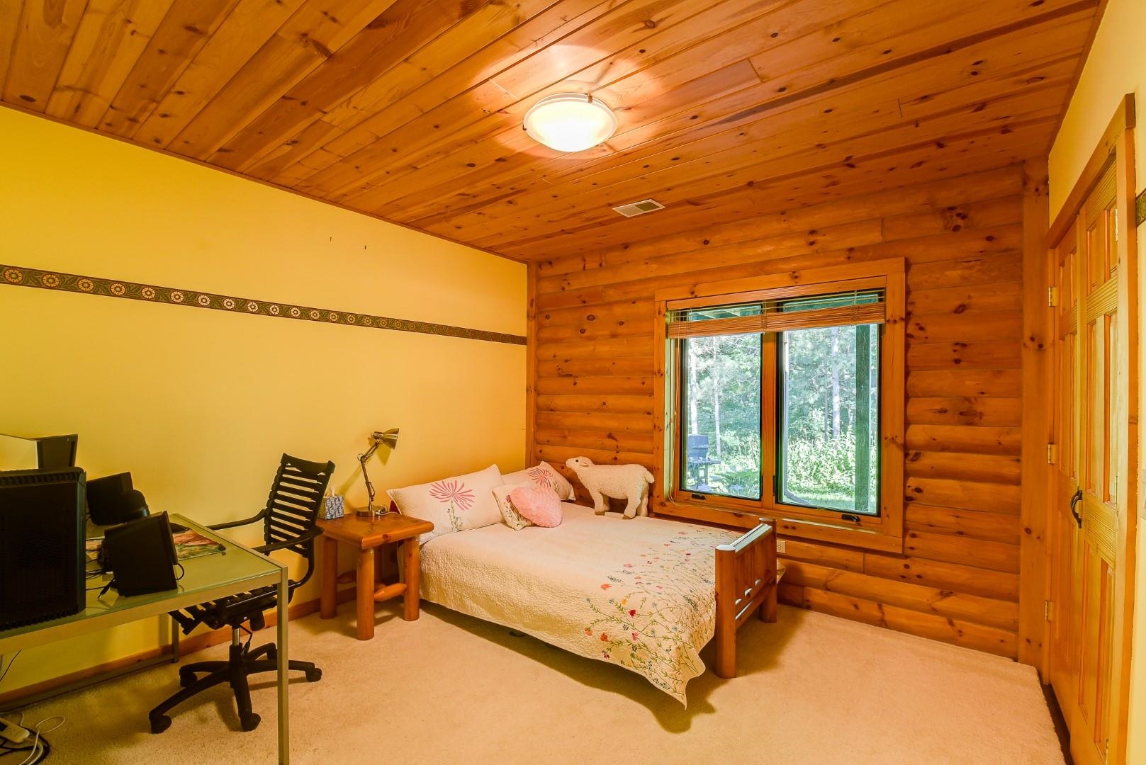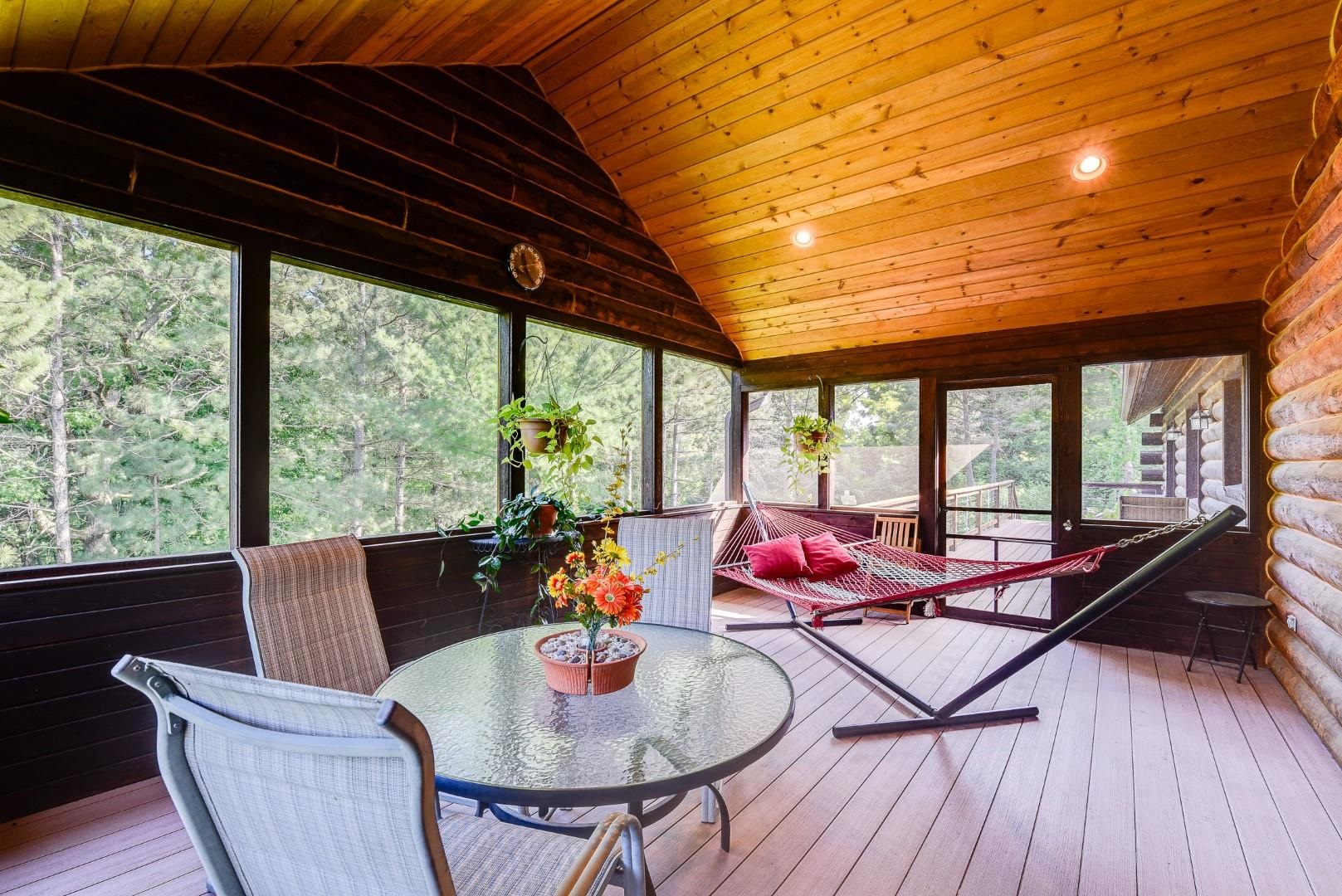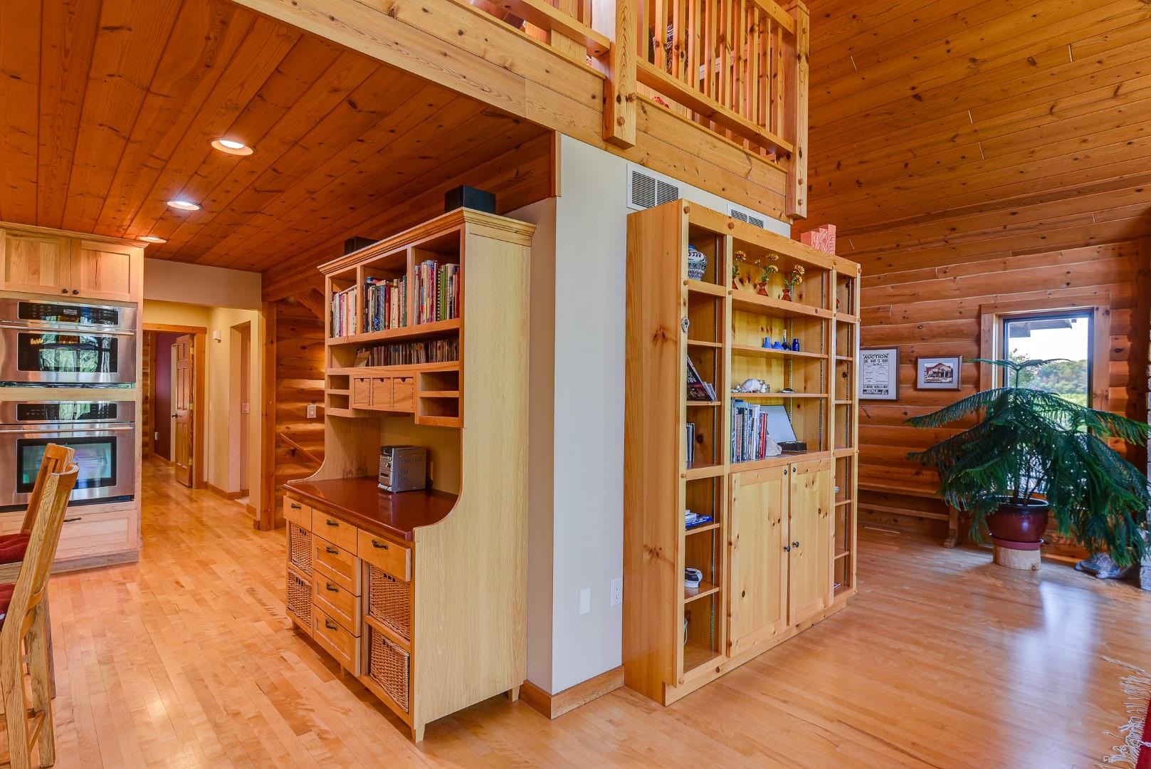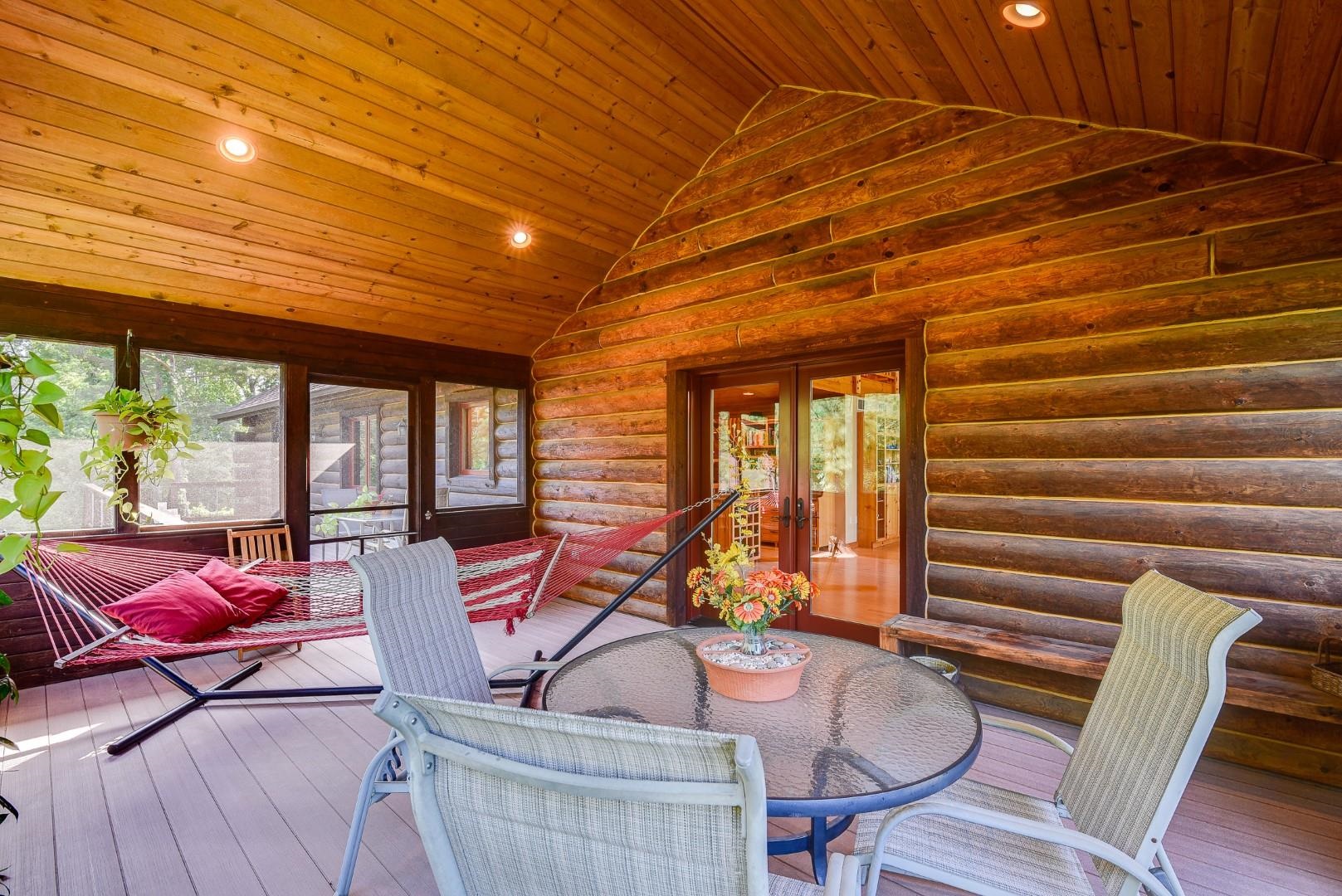 Your own private oasis! Stunning log home on just over 90 ac. Beautiful limestone wood burning fireplace on the main level, open floor plan w/ vaulted ceiling & large windows. Large kitchen w/high quality stainless, pantry & center island. Main level primary suite w/ 2 walk-in closets. Main level laundry. Great details built-in throughout including bookshelves & storage, desk in the office, closet systems, spice drawer in kitchen, epoxied garage, radiant floor heat in walkout level. Amazing 19x13 screened porch. 54 ac in MFL, 25 ac of tillable, over 5 ac of trails, rock outcroppings, creek, apple & pear trees, several well-maintained outbuildings including a great barn w/ metal roof. Excellent hunting and wildlife watching.