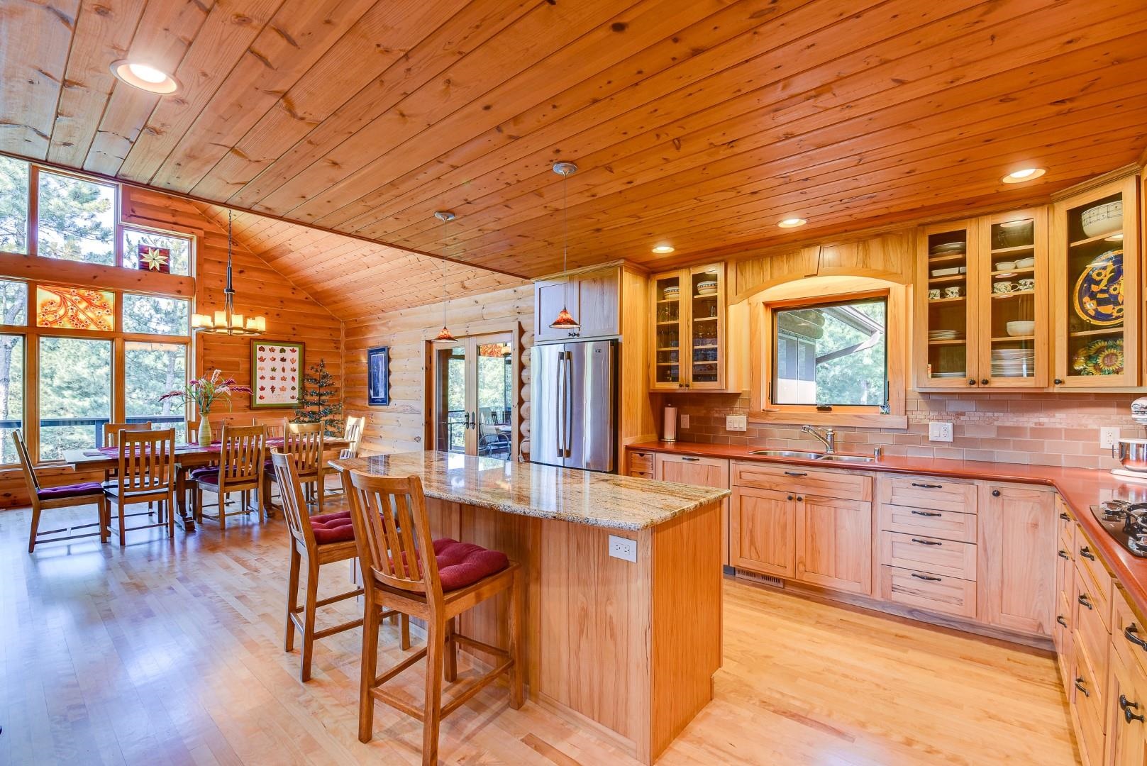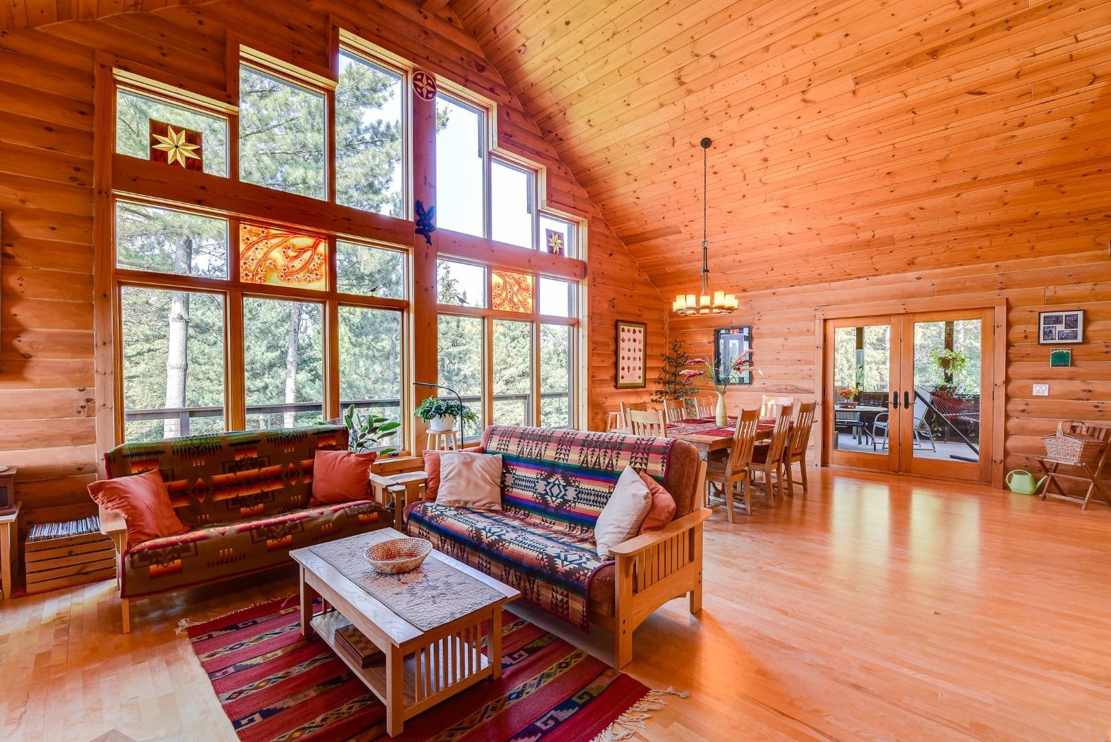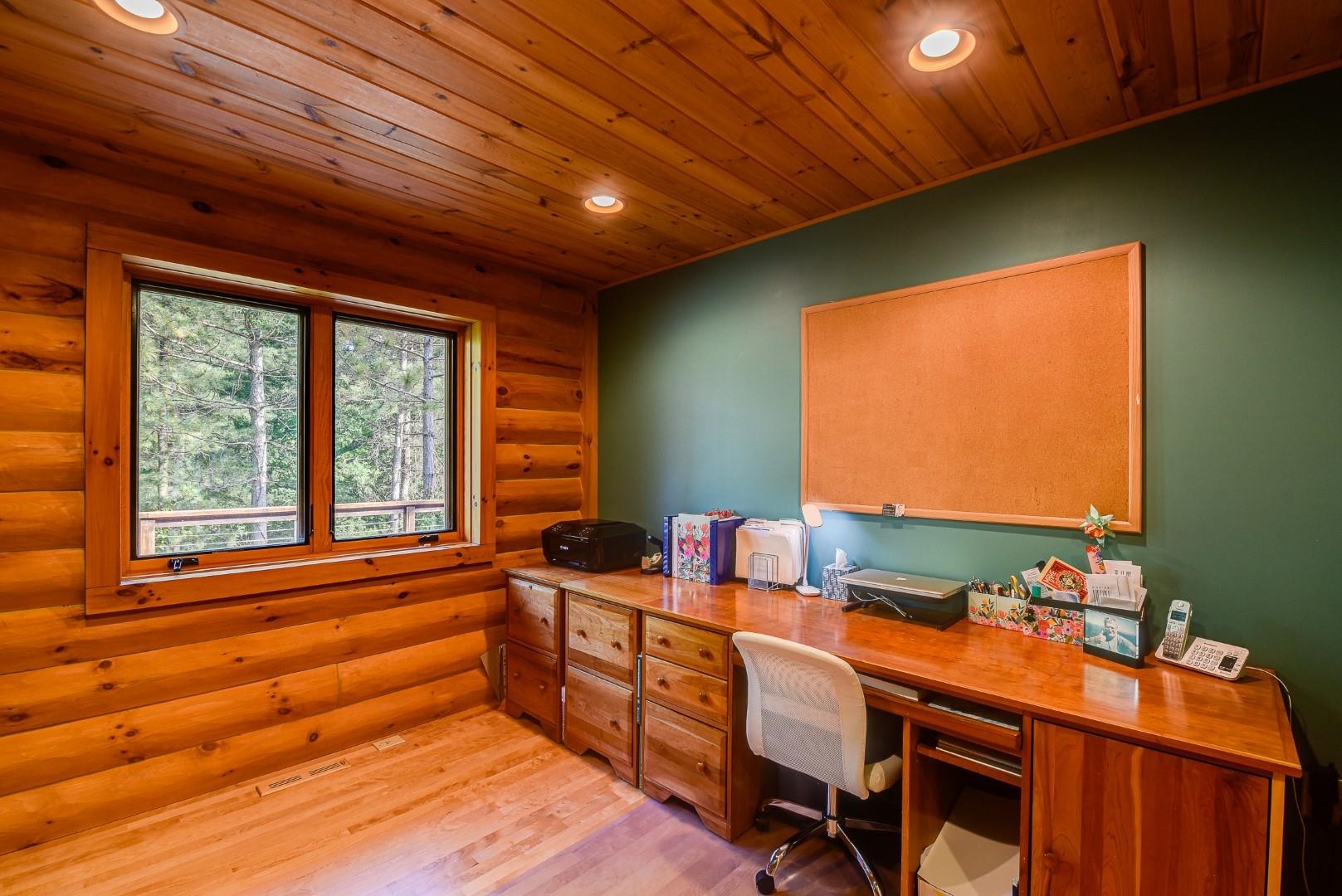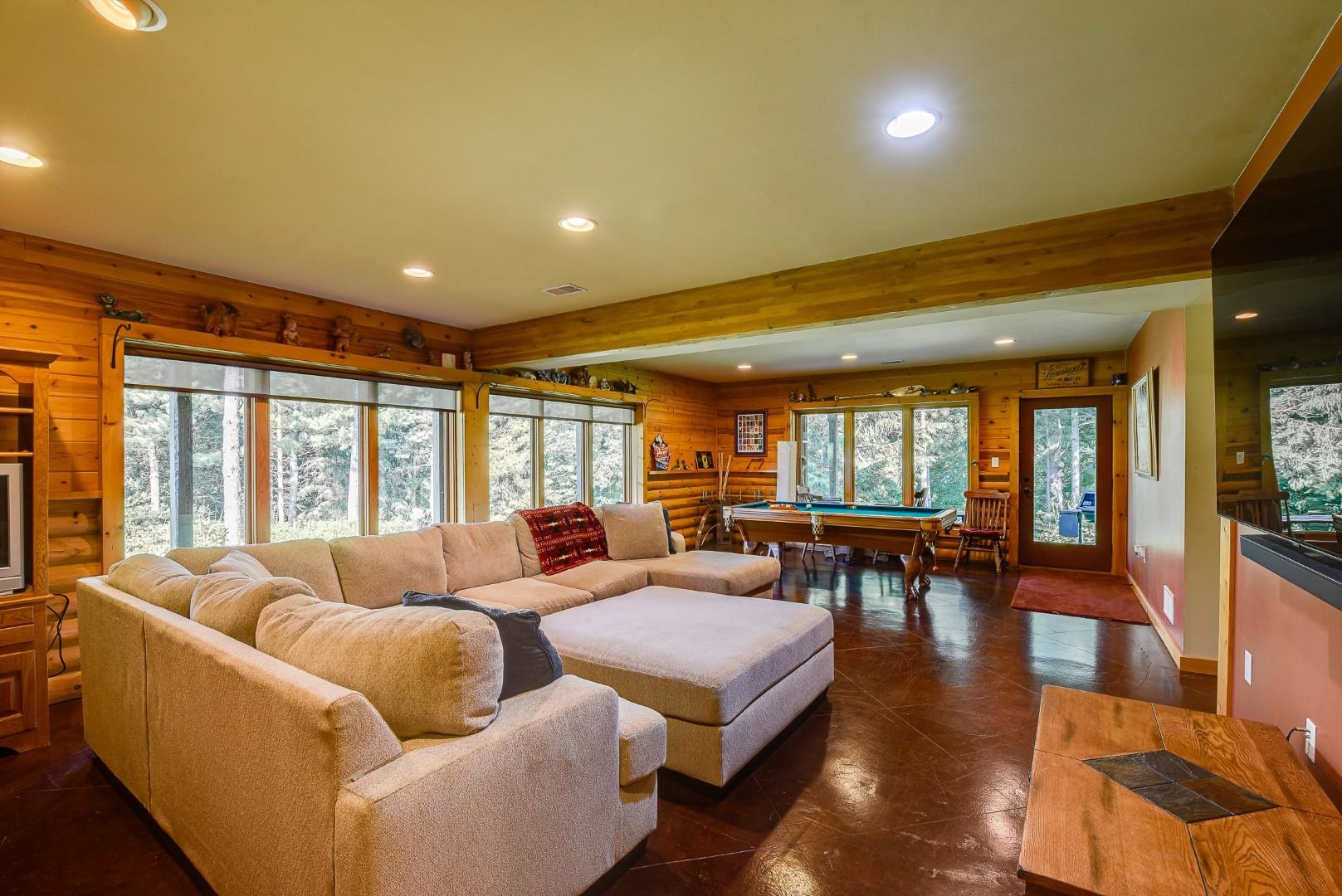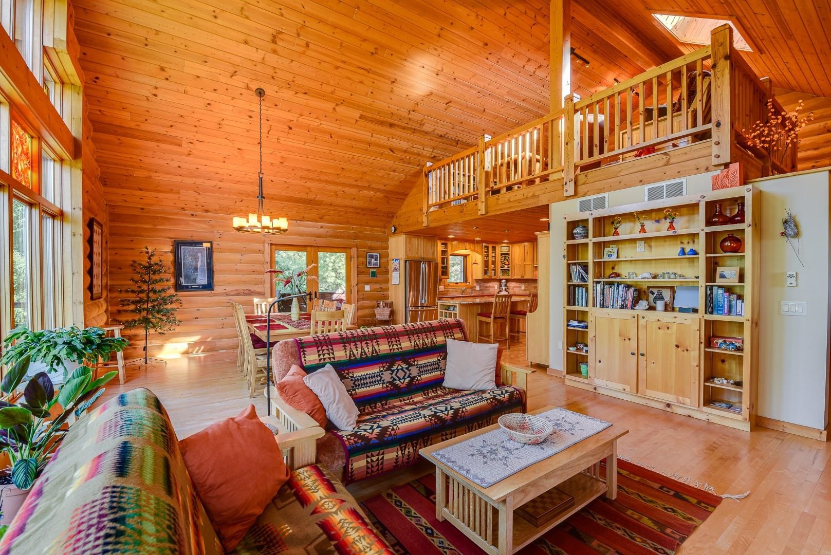 Your own private oasis! Stunning log home on just over 90 ac. Beautiful limestone wood burning fireplace on the main level, open floor plan w/ vaulted ceiling & large windows. Large kitchen w/high quality stainless, pantry & center island. Main level primary suite w/ 2 walk-in closets. Main level laundry. Great details built-in throughout including bookshelves & storage, desk in the office, closet systems, spice drawer in kitchen, epoxied garage, radiant floor heat in walkout level. Amazing 19x13 screened porch. 54 ac in MFL, 25 ac of tillable, over 5 ac of trails, rock outcroppings, creek, apple & pear trees, several well-maintained outbuildings including a great barn w/ metal roof. Excellent hunting and wildlife watching.