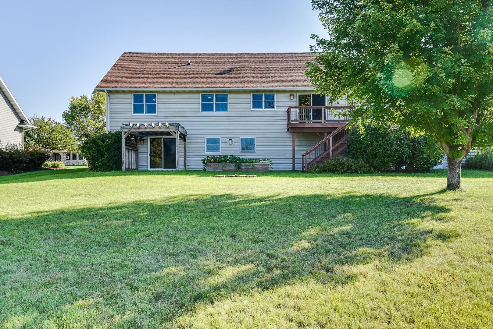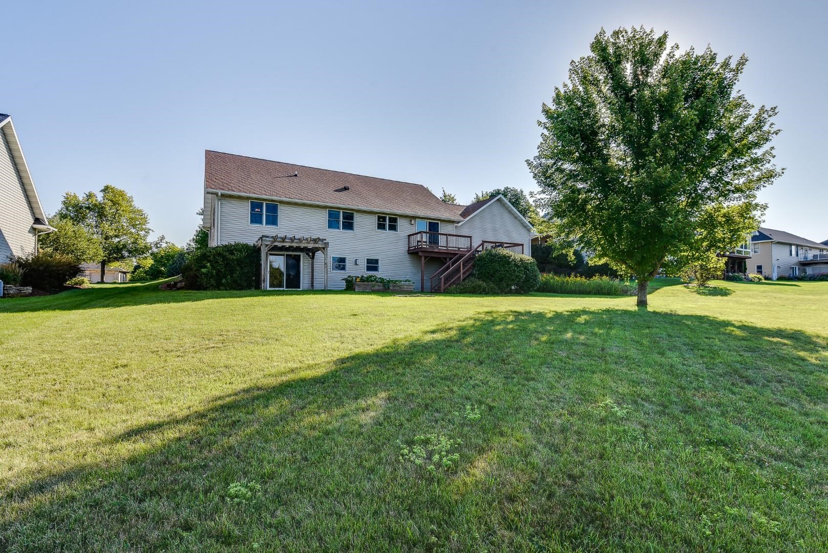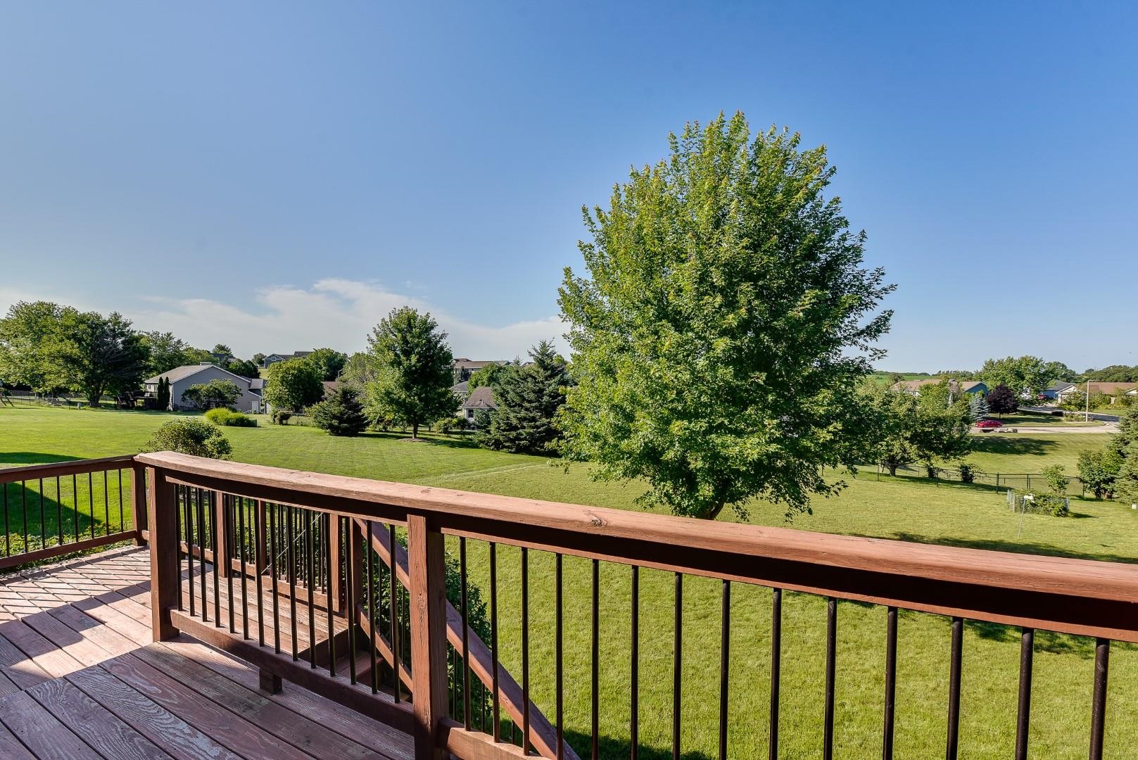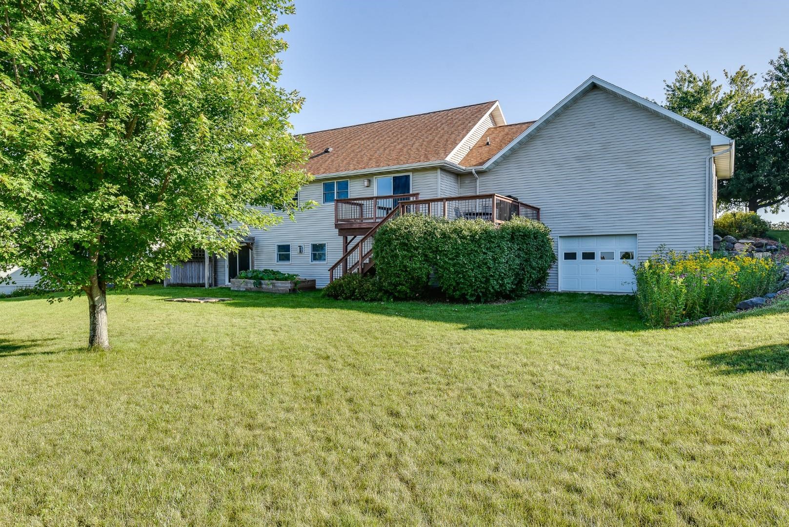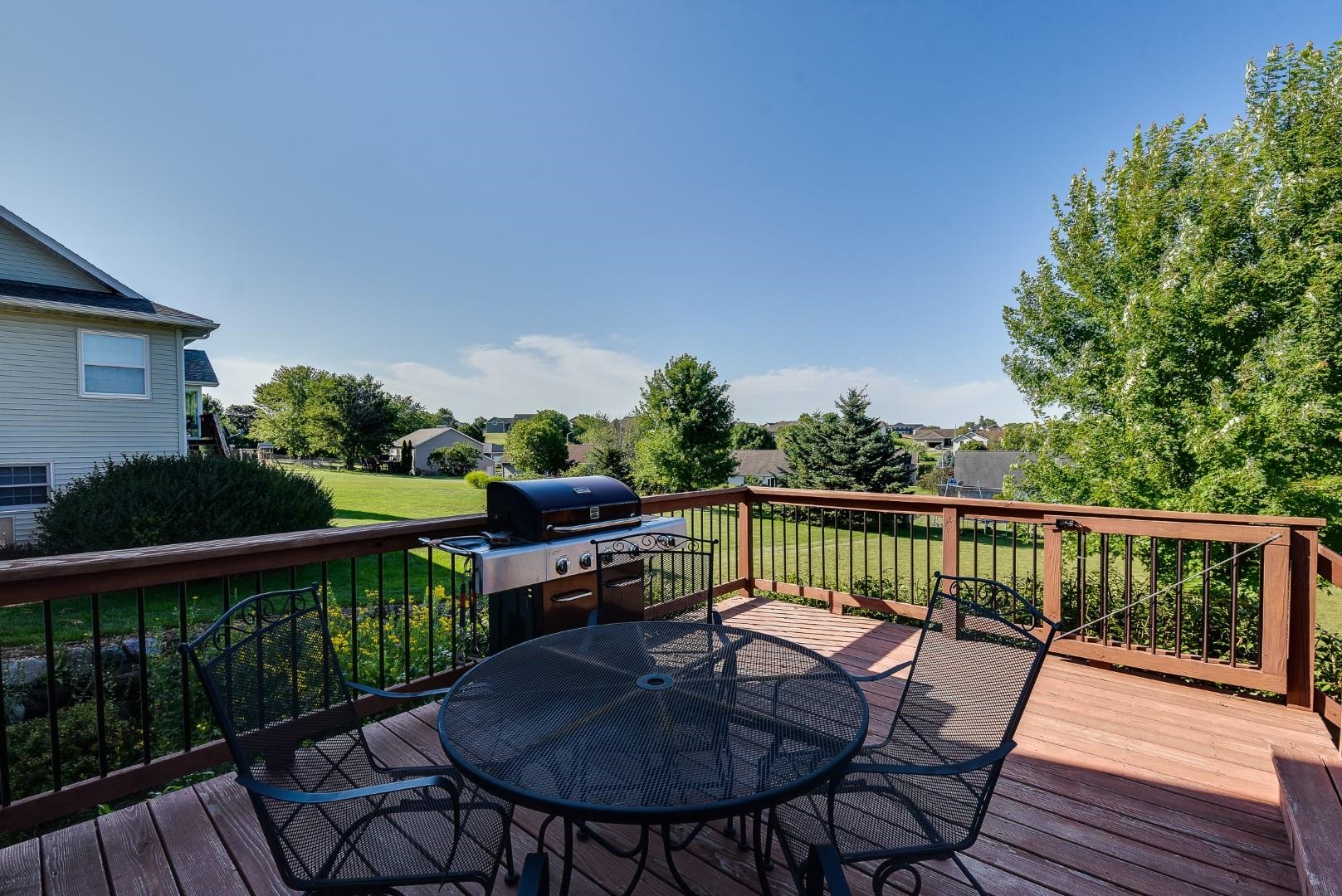 Welcome home! Fall in love with this 4 bedroom, 3 bath ranch home featuring a spacious open floor plan, vaulted ceiling, hardwood flooring in the kitchen & dining area, large bedrooms, main level laundry, walk in pantry, gas fireplace on the main level and gas stove in the walkout LL. Lots of storage and light in this home. Outside there is a beautiful covered porch, deck and a large, flat backyard with great views! Extra garage in the lower level for lawn mowers and/or toys. Desirable neighborhood within walking distance to the schools and easy commute to Lands’ End, Vortex Optics, Duluth Trading and Madison. All measurements are approx. Call for your private showing today!
