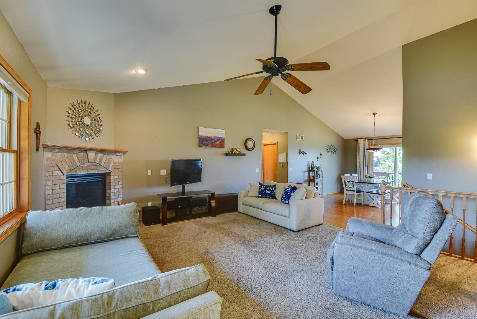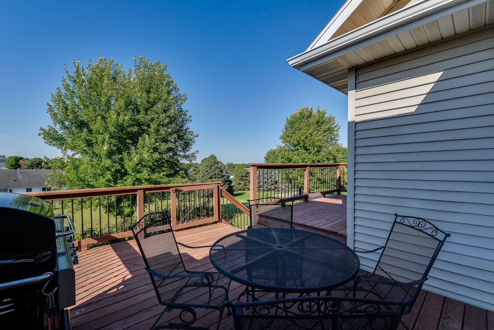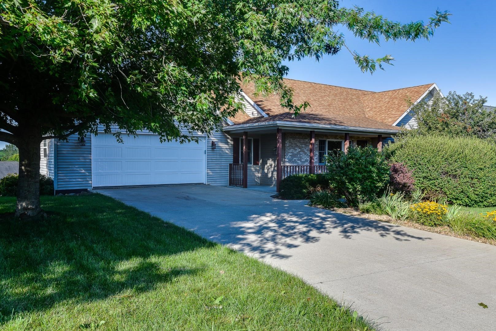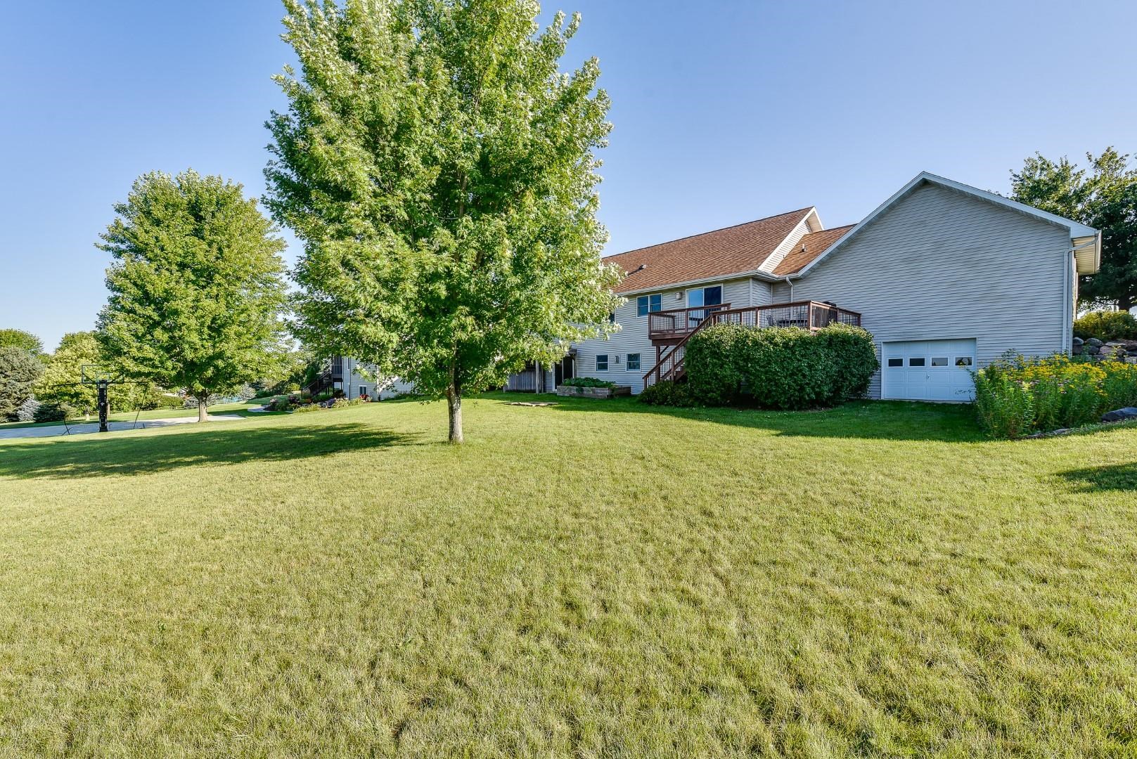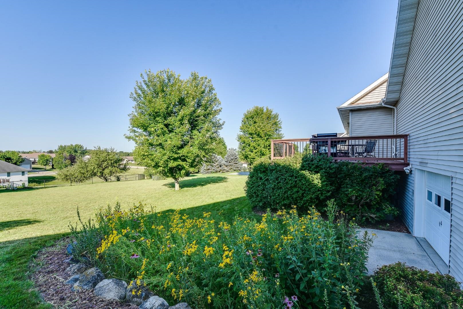 Welcome home! Fall in love with this 4 bedroom, 3 bath ranch home featuring a spacious open floor plan, vaulted ceiling, hardwood flooring in the kitchen & dining area, large bedrooms, main level laundry, walk in pantry, gas fireplace on the main level and gas stove in the walkout LL. Lots of storage and light in this home. Outside there is a beautiful covered porch, deck and a large, flat backyard with great views! Extra garage in the lower level for lawn mowers and/or toys. Desirable neighborhood within walking distance to the schools and easy commute to Lands’ End, Vortex Optics, Duluth Trading and Madison. All measurements are approx. Call for your private showing today!