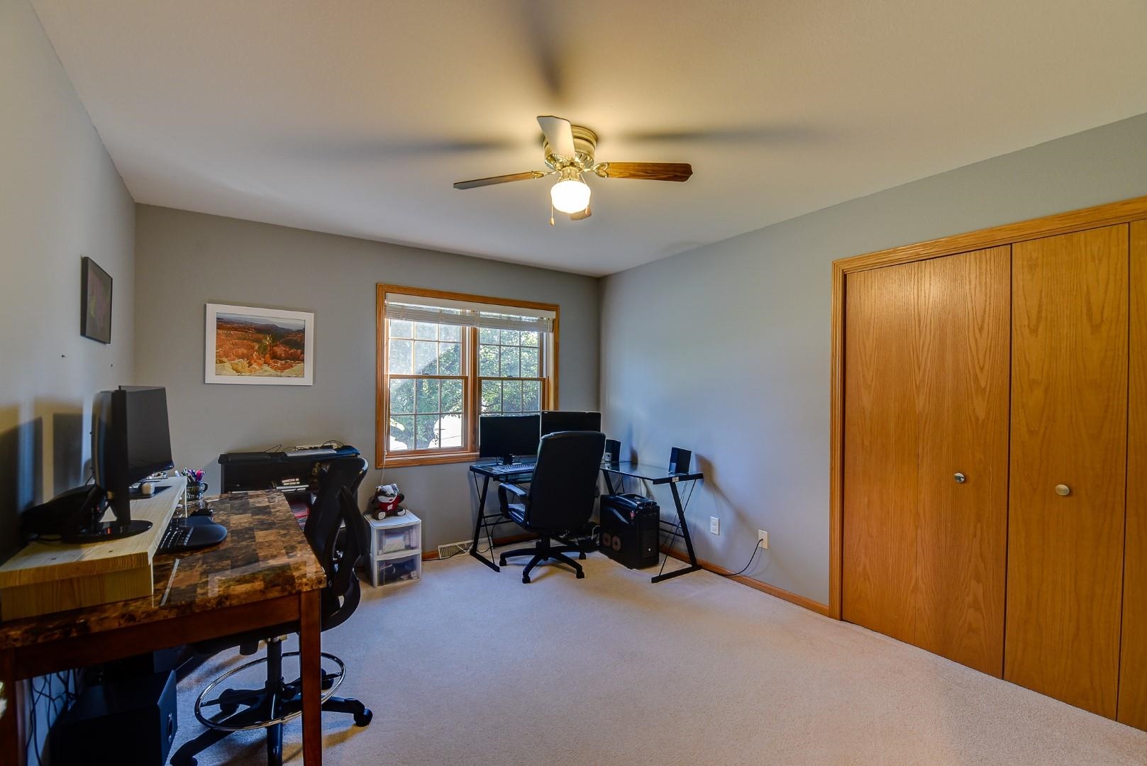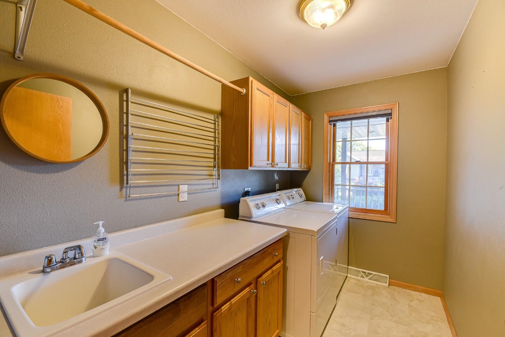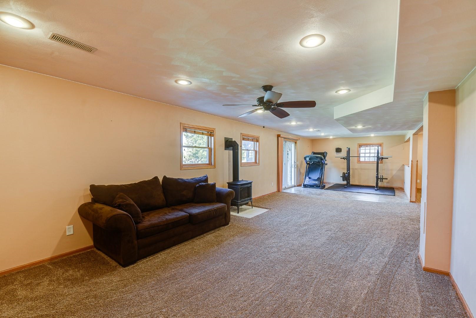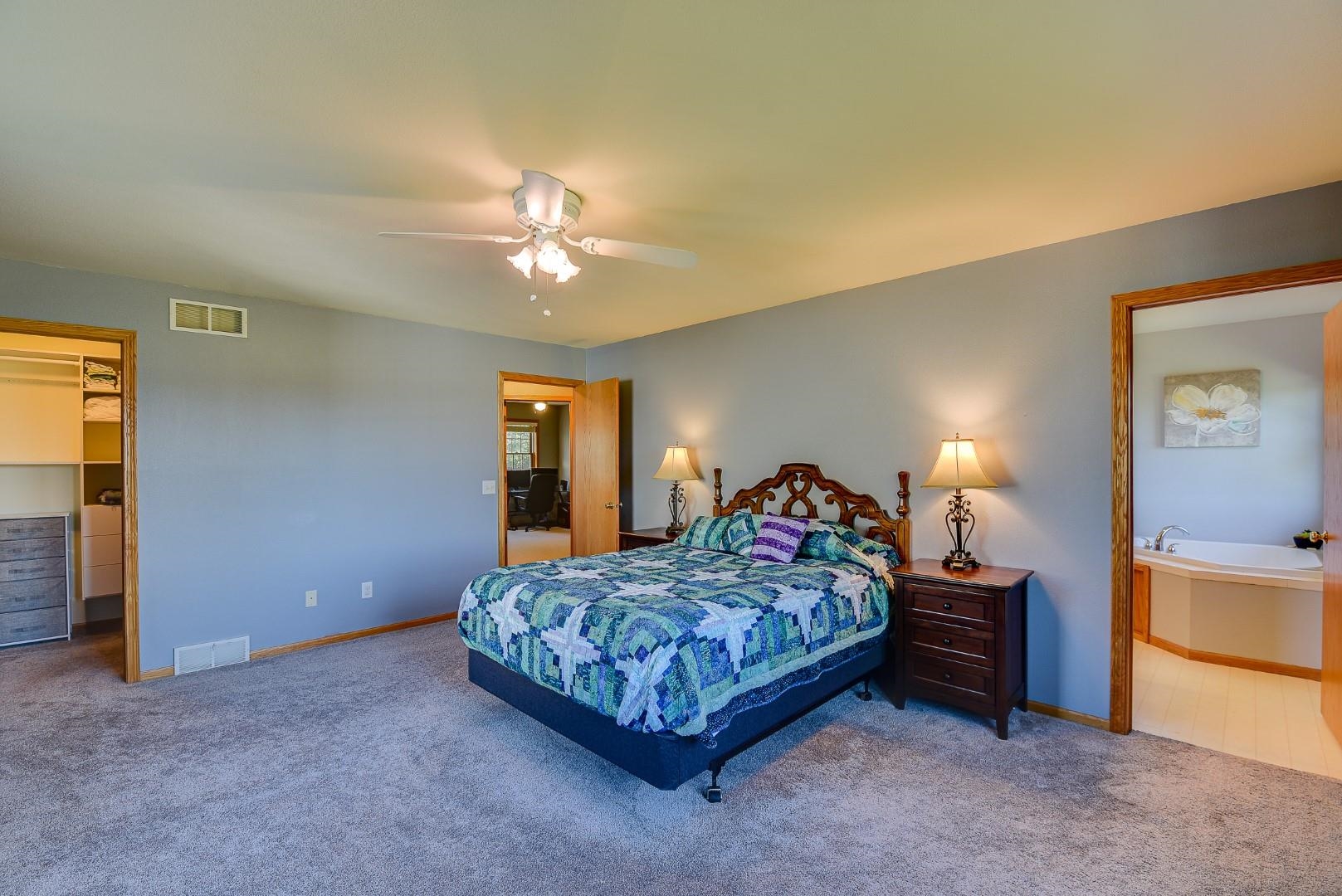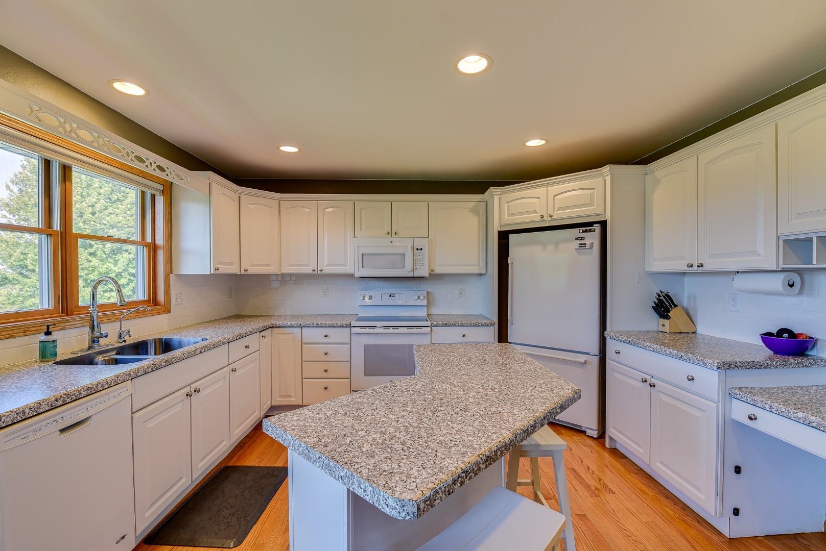 Welcome home! Fall in love with this 4 bedroom, 3 bath ranch home featuring a spacious open floor plan, vaulted ceiling, hardwood flooring in the kitchen & dining area, large bedrooms, main level laundry, walk in pantry, gas fireplace on the main level and gas stove in the walkout LL. Lots of storage and light in this home. Outside there is a beautiful covered porch, deck and a large, flat backyard with great views! Extra garage in the lower level for lawn mowers and/or toys. Desirable neighborhood within walking distance to the schools and easy commute to Lands’ End, Vortex Optics, Duluth Trading and Madison. All measurements are approx. Call for your private showing today!