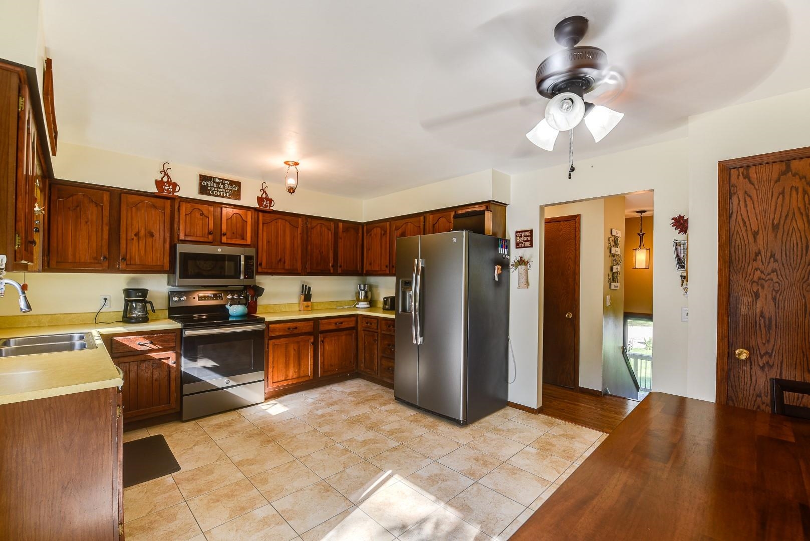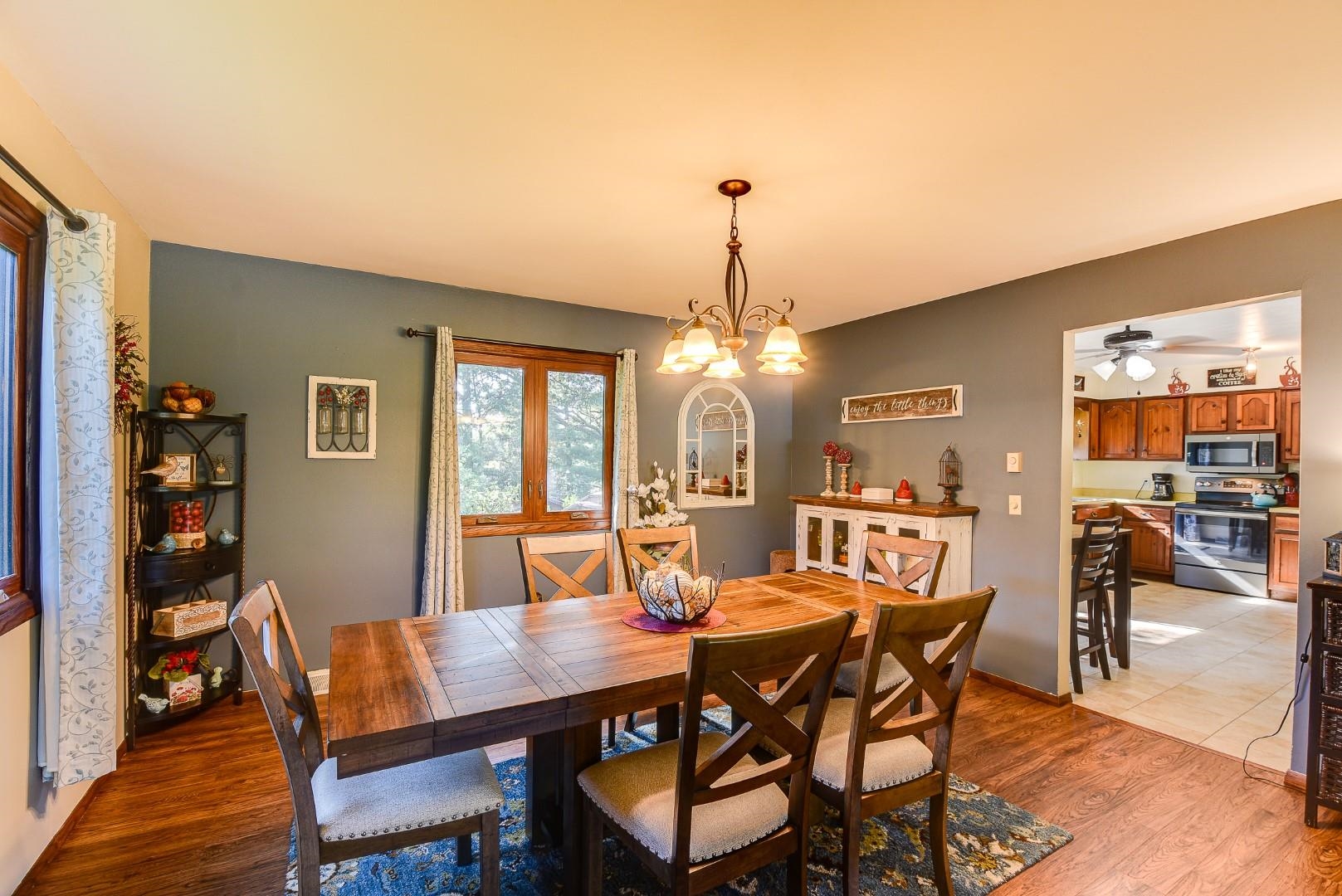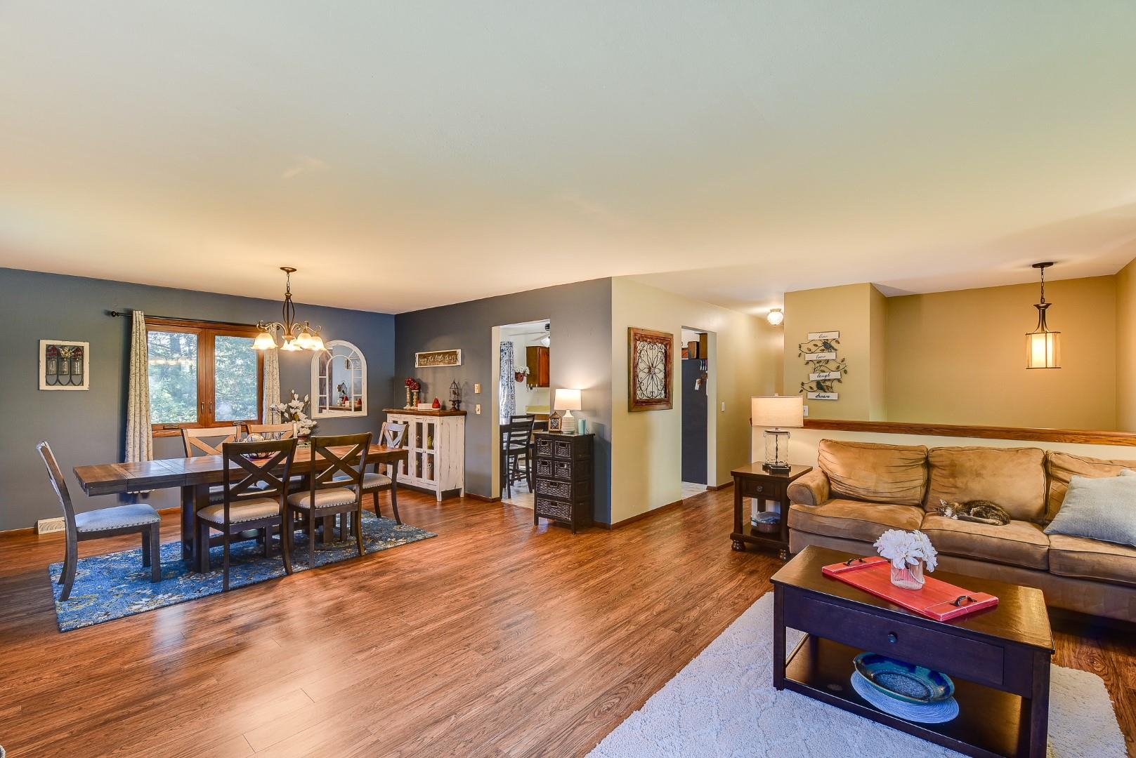 Beautifully updated, meticulously clean 3 bedroom, 2 bath home in a fabulous neighborhood! Desirable open concept layout with spacious living/dining room and eat-in kitchen. The spacious bedrooms offer oversized closets. Lower level features a large bright family room with a 3/4 bath and wet bar. Oversized 1.5 car garage. This home also features a brick & cedar exterior, large deck and storage shed in the private back yard. All newer appliances. Additional updates include flooring on main level, fresh paint and some light fixtures. Located near Centennial Park & city pool. All measurements are approx. Call for your private showing today!