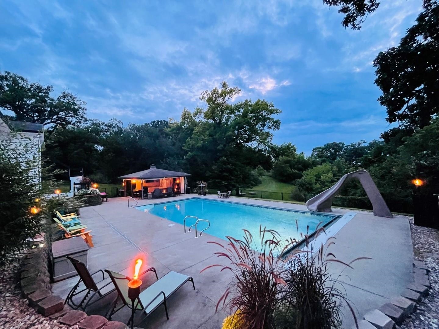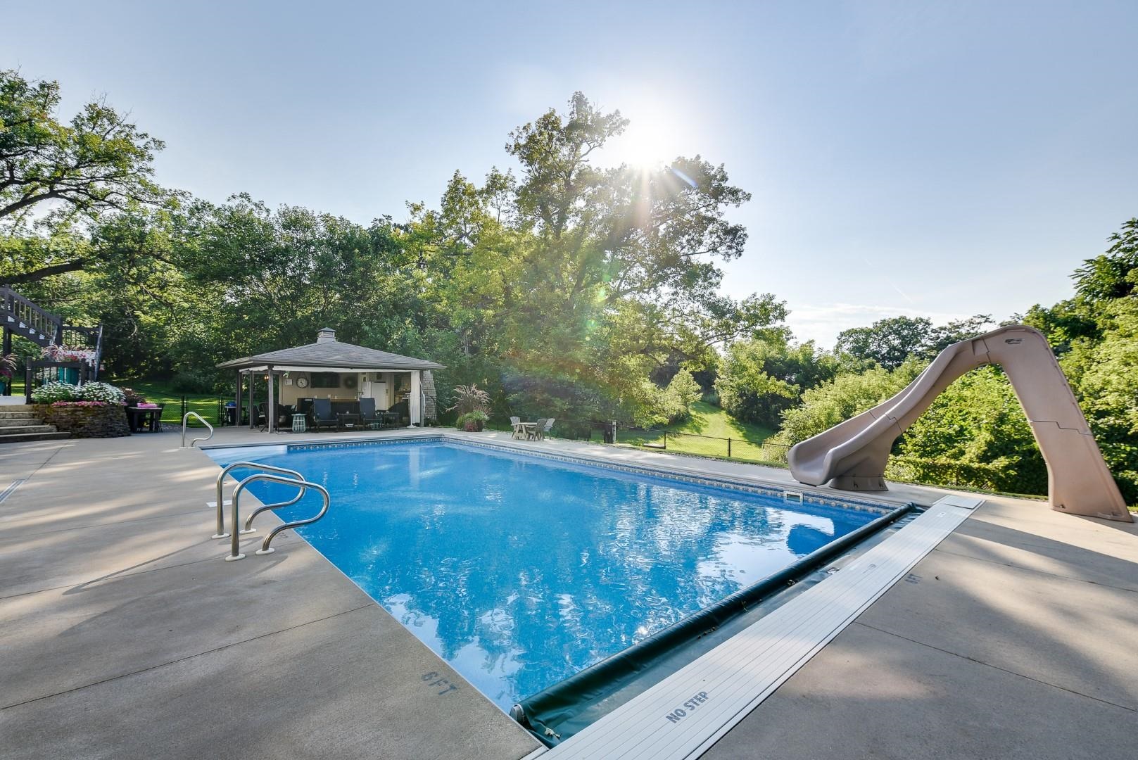 Rare opportunity w/ this breathtaking ranch home! Private & tucked away in a quiet area sitting on over an acre lot w/ town conveniences. This bright, sunny home truly has it all, ideal main level office, mud room, beautiful updated flooring throughout, gorgeous kitchen, cozy family room with gas fireplace, huge main floor primary suite w/ spa like feel & double sinks, and so much more. If the home isn’t enough to take your breath away the backyard oasis absolutely will. Sit back and enjoy the in-ground pool completely fenced & the amazing pool house with a wood fireplace. A great paradise for entertaining, and the views, oh the views! Detached heated 2 car garage along with an attached 2 car garage. Own your own slice of heaven today! Verify sqft if important.