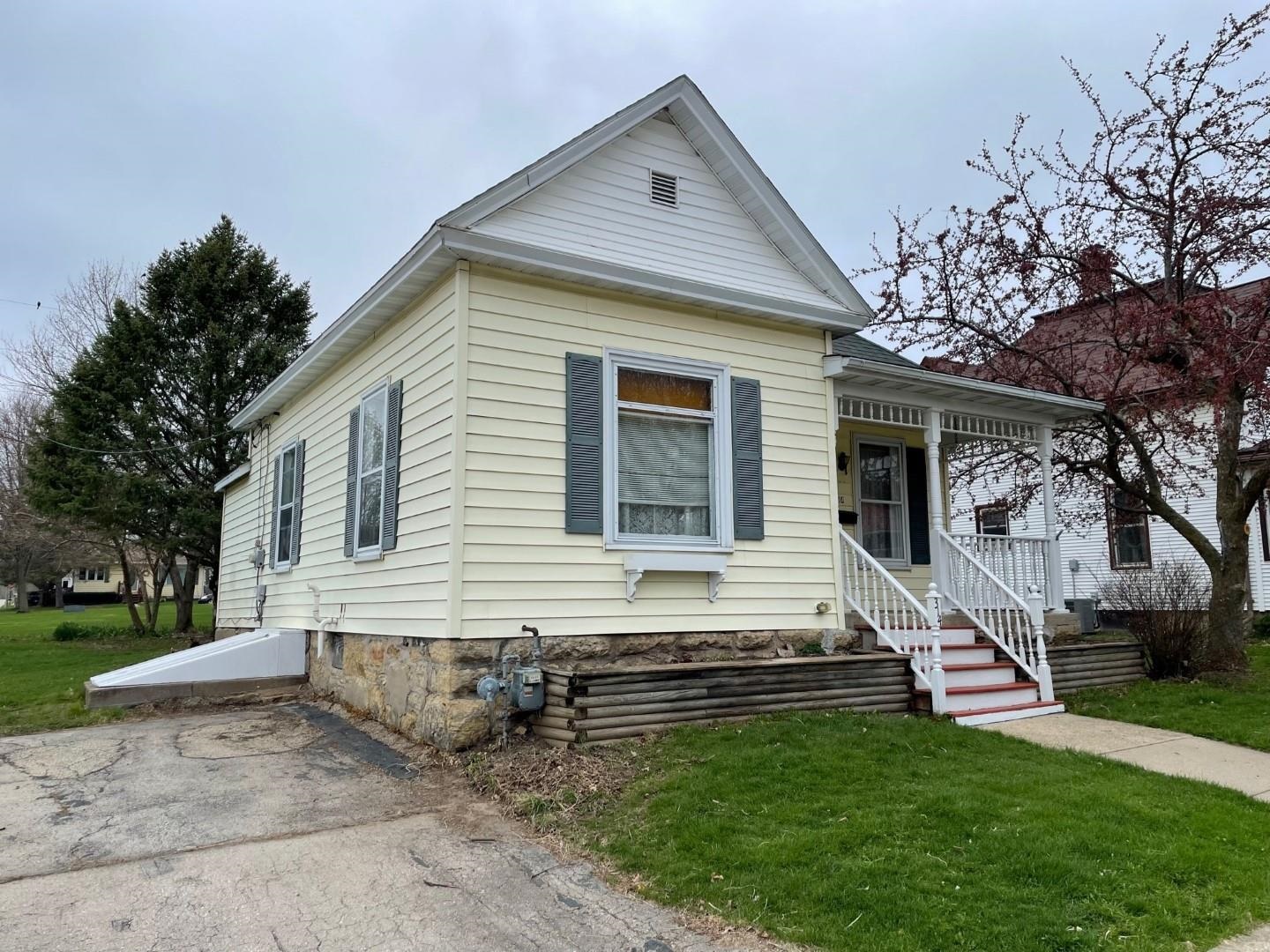The most adorable and most affordable home for sale in Dodgeville! Excellent curb appeal with an inviting front porch to sit and enjoy your morning cup of coffee and chat with neighbors. Near city park, swimming pool, and shopping. 2 bedrooms, 1 full bath with everything located on the main floor. Included with your purchase are range/oven, refrigerator, washer, and dryer. This is an estate sale. Sellers have never lived in the home. Sellers are also including a $2,000 flooring allowance and selling the home “as is". The home is on a stone foundation.