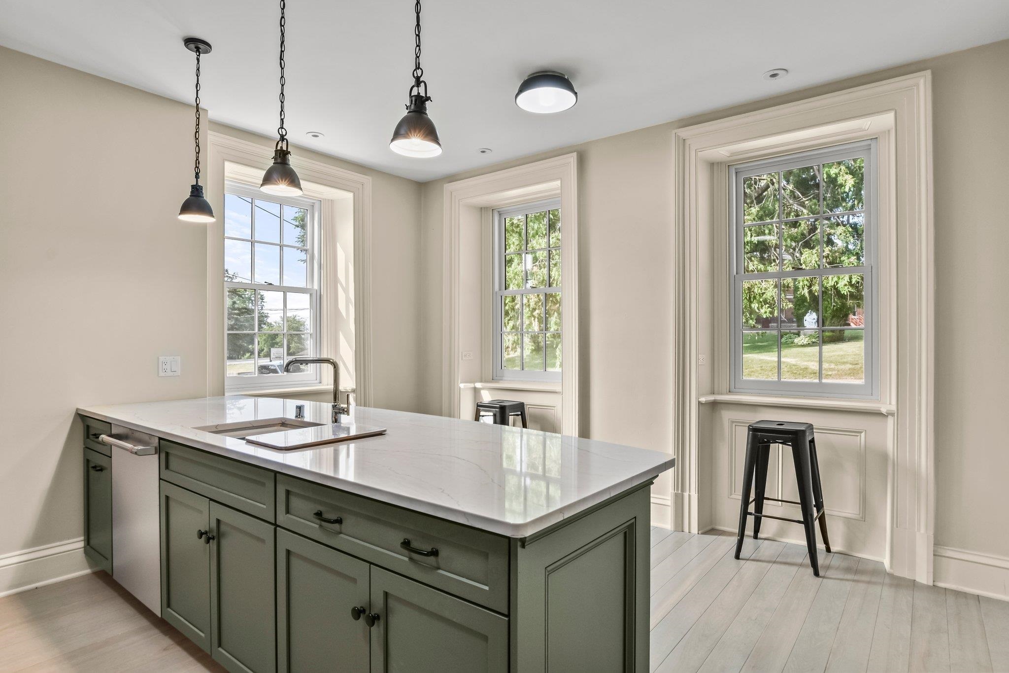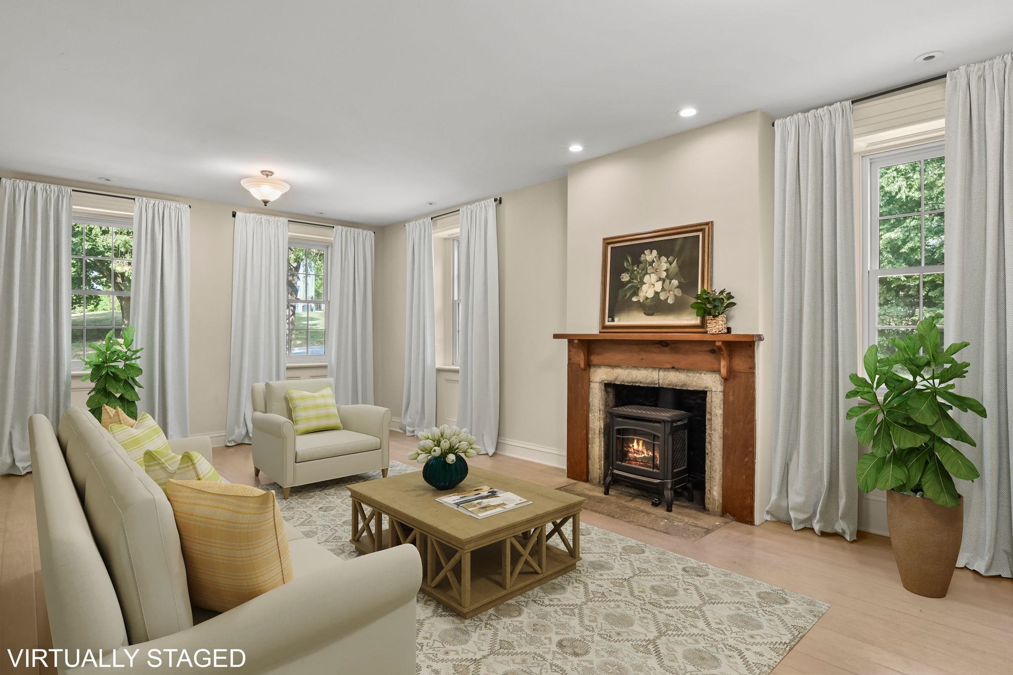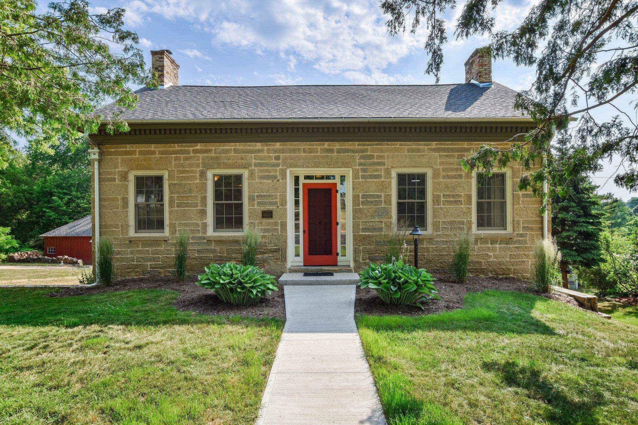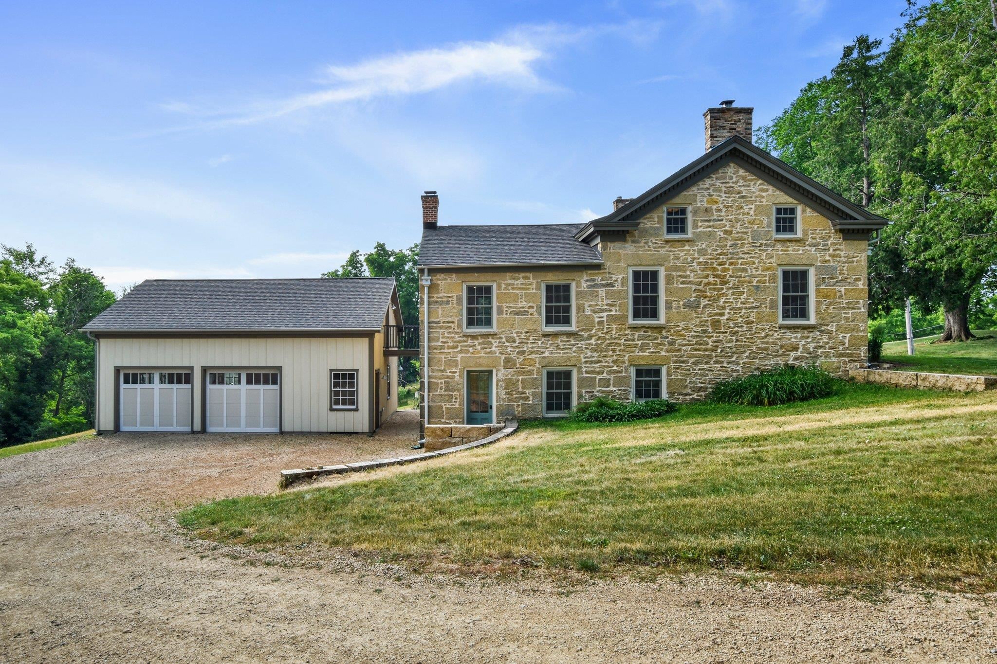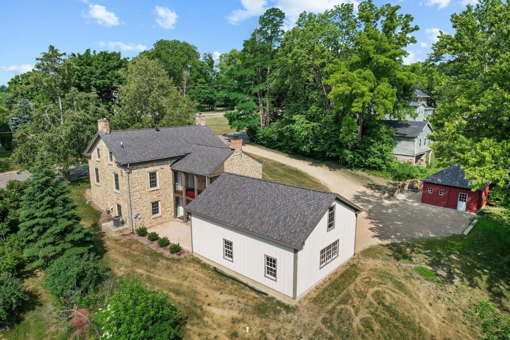 No showings until 7/15. Behold the historic treasure you've been seeking! Stunning stone Greek Revival home was built in 1846. Home has been meticulously updated by some of the finest craftsmen in the area, retaining its authentic charm, now w/modern enhancements such as HVAC, electrical, plumbing, windows, baths, etc. Gourmet kitchen perfect for entertaining. Every floor has its own private suite. Wine cellar in lower level. Elegant back porch adjoining the home & garage is ideal. Home has an oversized 2-car garage, w/ bonus space above that's convertible into a desirable studio or home office. Additional detached 1 car garage offers ample space for garden shed/party hall. On over an acre, within walking distance to downtown & historic Orchard Lawn. Call us today!