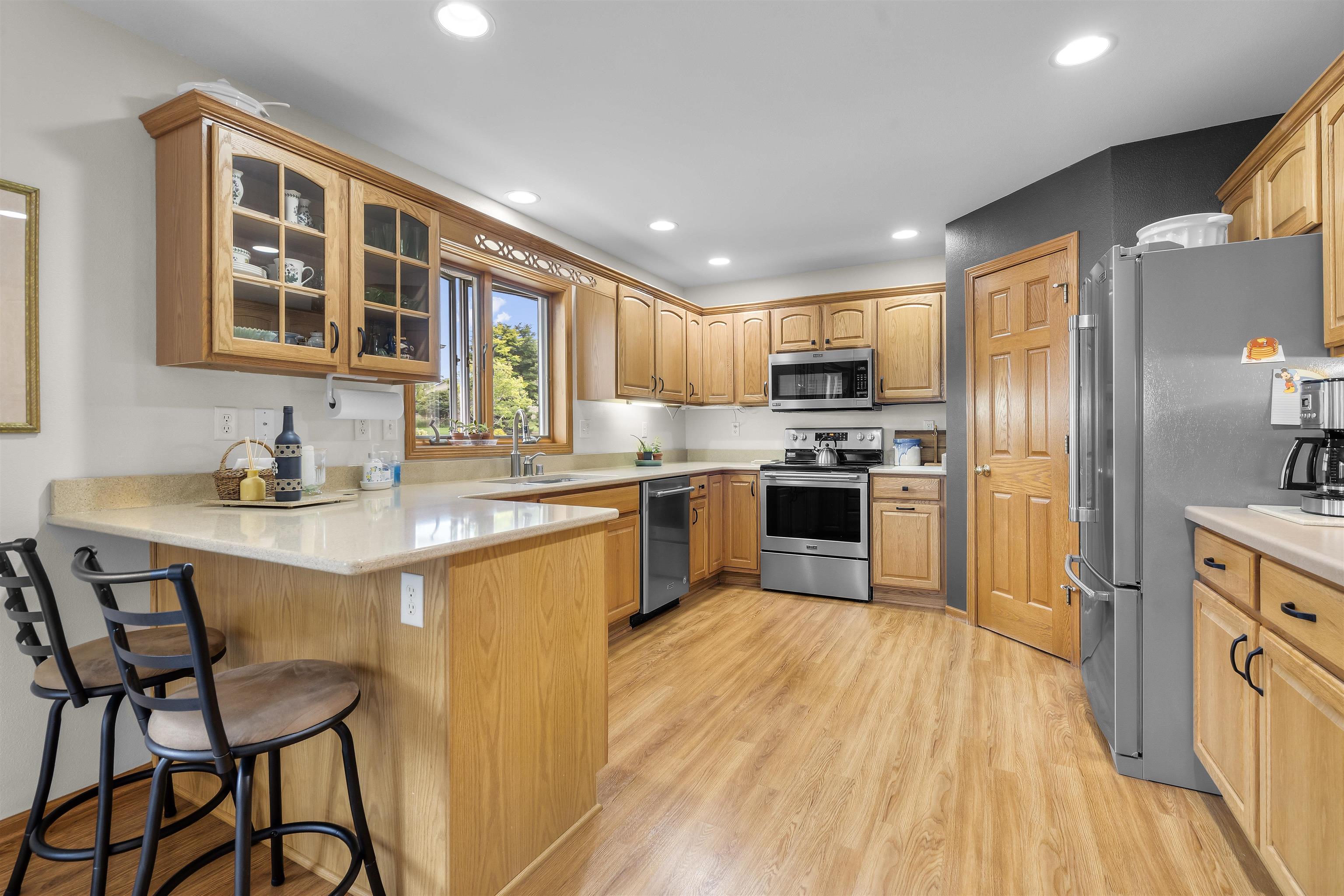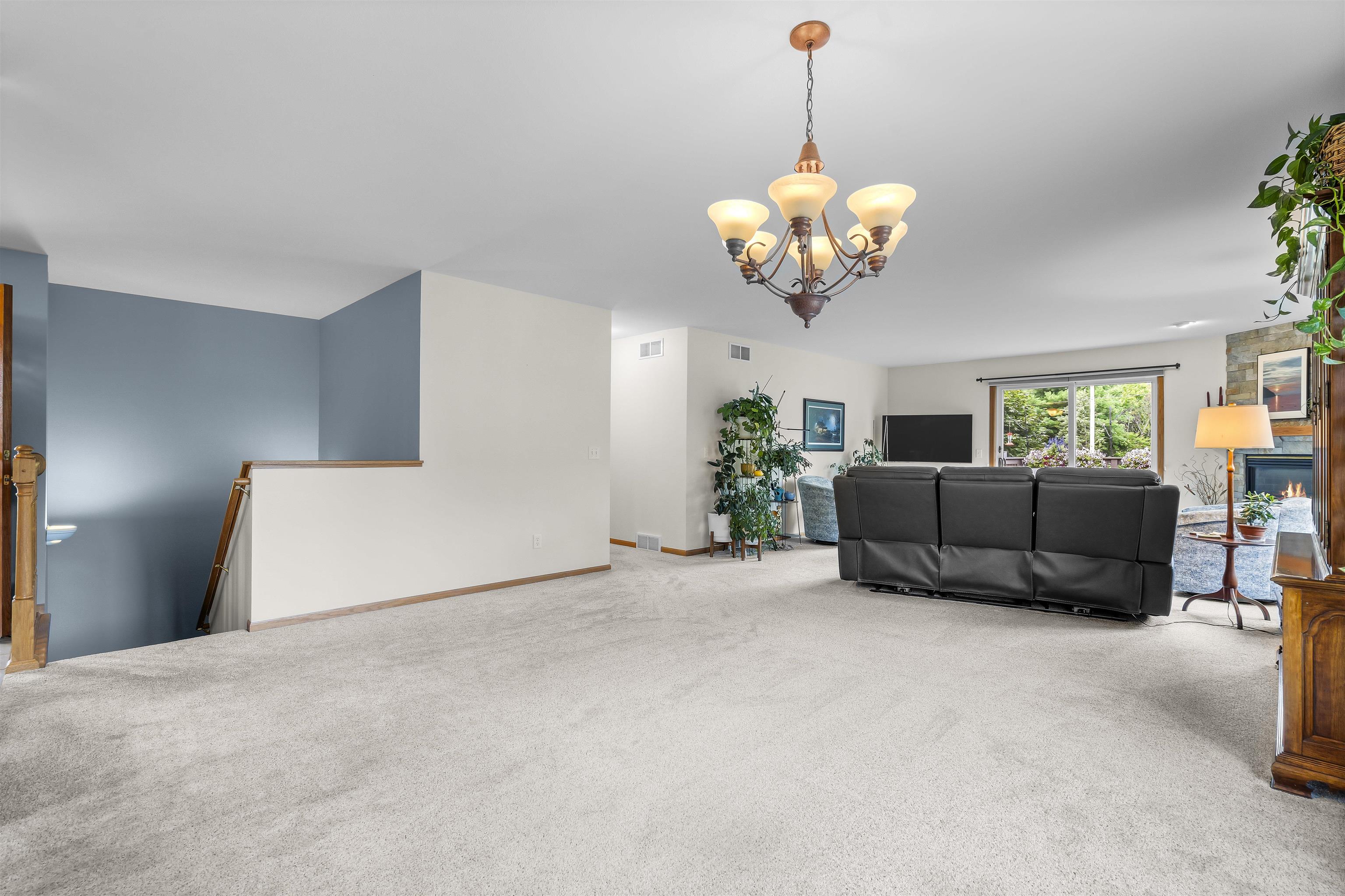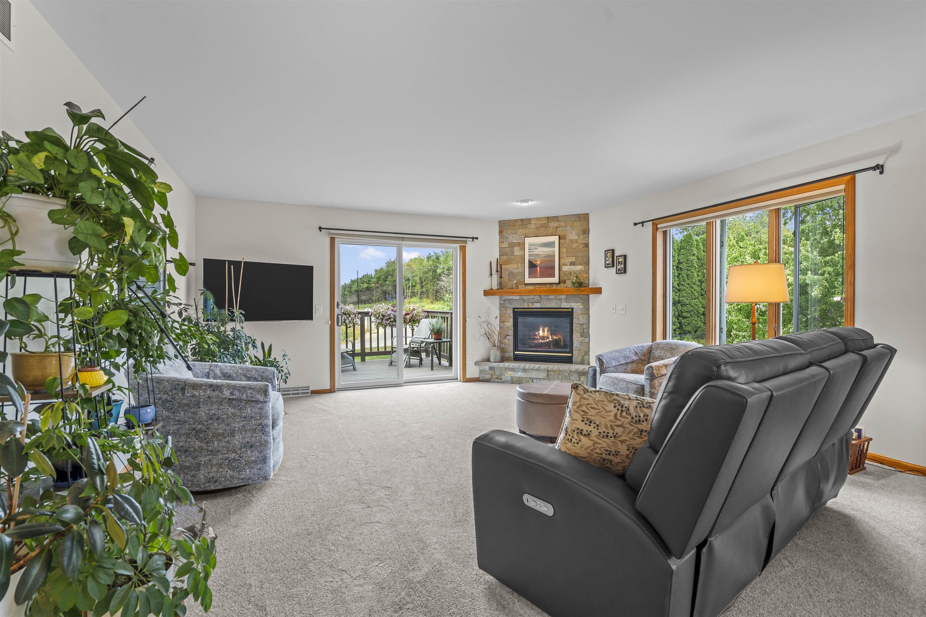 Rare opportunity! Immaculate, open concept, bright & cheery duplex condo. The kitchen features stainless appliances, quartz counter and a walk-in pantry. Many new updates including; fresh paint throughout, stone fireplace surround, newer stove, microwave, hot water heater & much more. This home features a spacious main level primary suite, main level laundry & tons of storage throughout. The lower level includes a walk-out family room with add. bedroom & bath. There's also a workshop in the lower level for your projects & hobbies. This is one of the only formal condo assoc. in town w/lawn care, landscaping & snow removal incl. in condo fee. Desirable location & walkable to the schools.