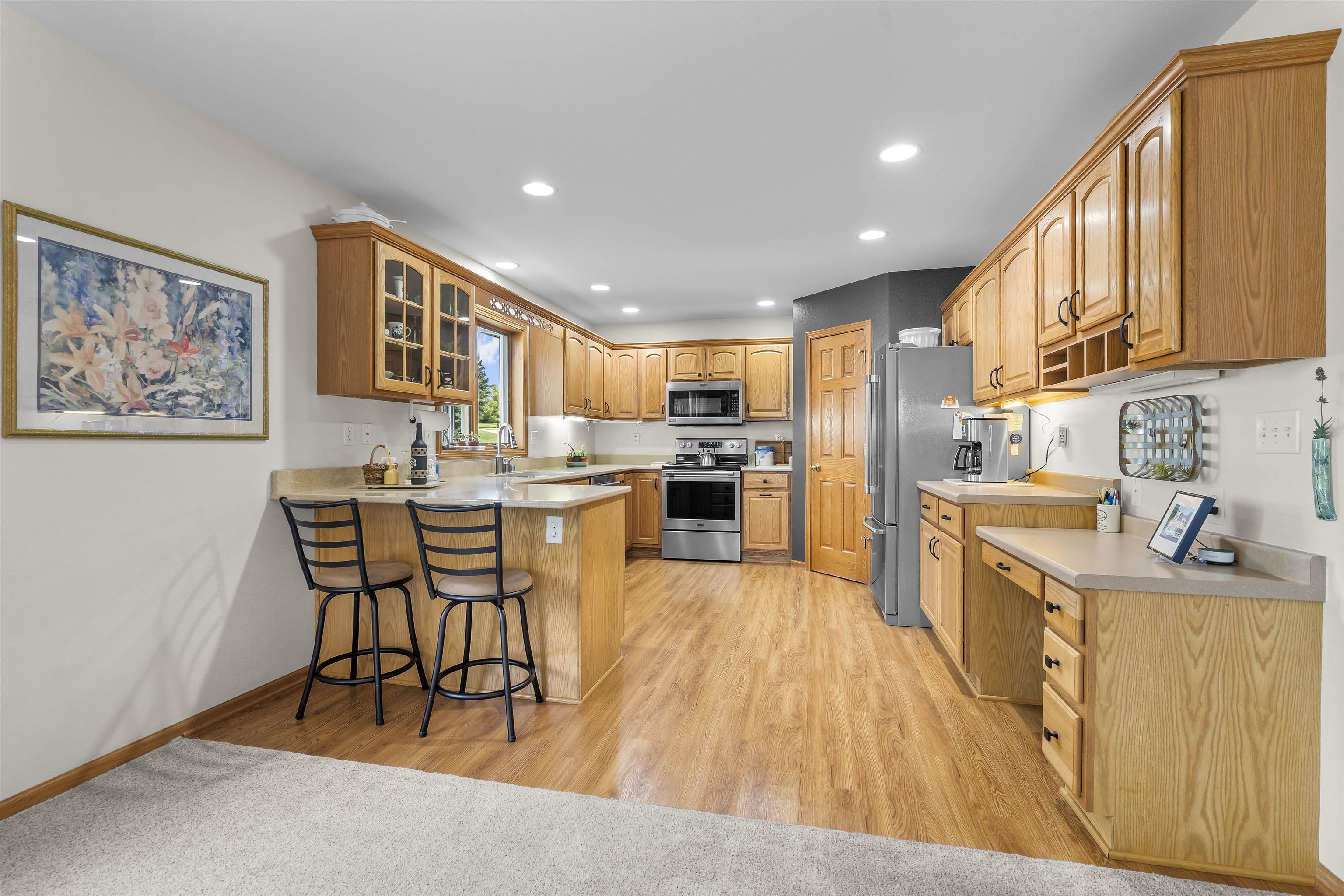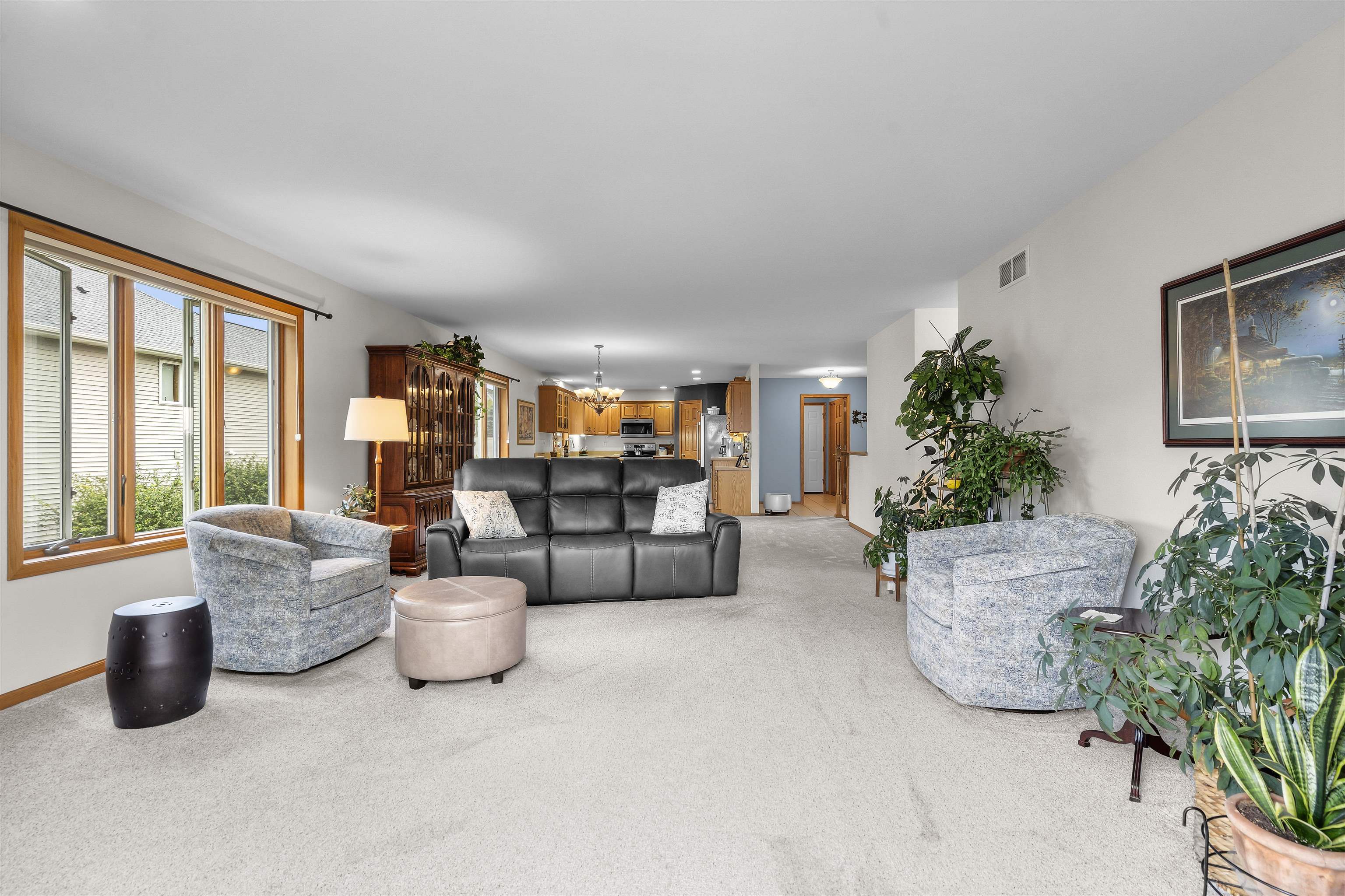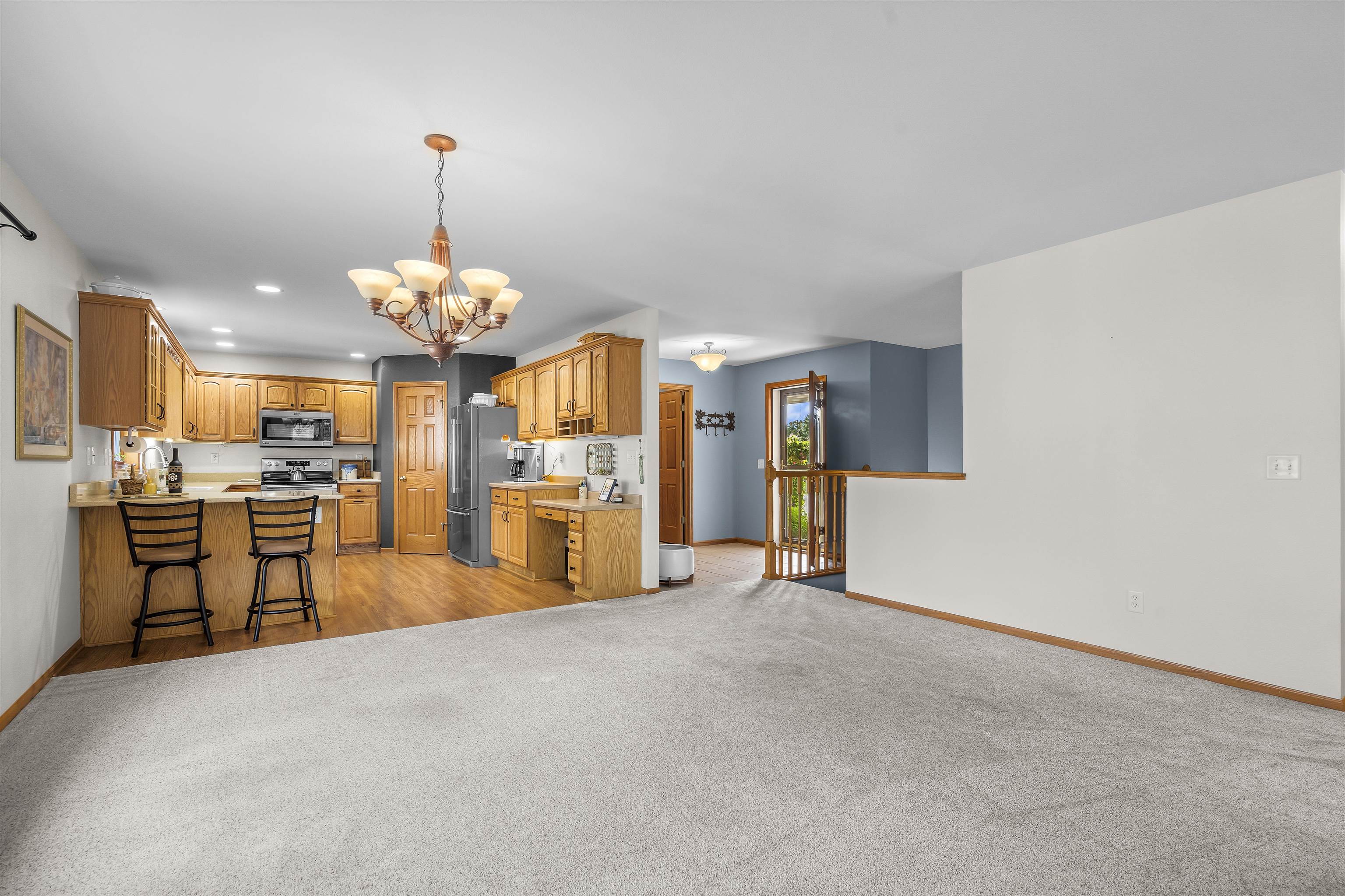 Rare opportunity! Immaculate, open concept, bright & cheery duplex condo. The kitchen features stainless appliances, quartz counter and a walk-in pantry. Many new updates including; fresh paint throughout, stone fireplace surround, newer stove, microwave, hot water heater & much more. This home features a spacious main level primary suite, main level laundry & tons of storage throughout. The lower level includes a walk-out family room with add. bedroom & bath. There's also a workshop in the lower level for your projects & hobbies. This is one of the only formal condo assoc. in town w/lawn care, landscaping & snow removal incl. in condo fee. Desirable location & walkable to the schools.