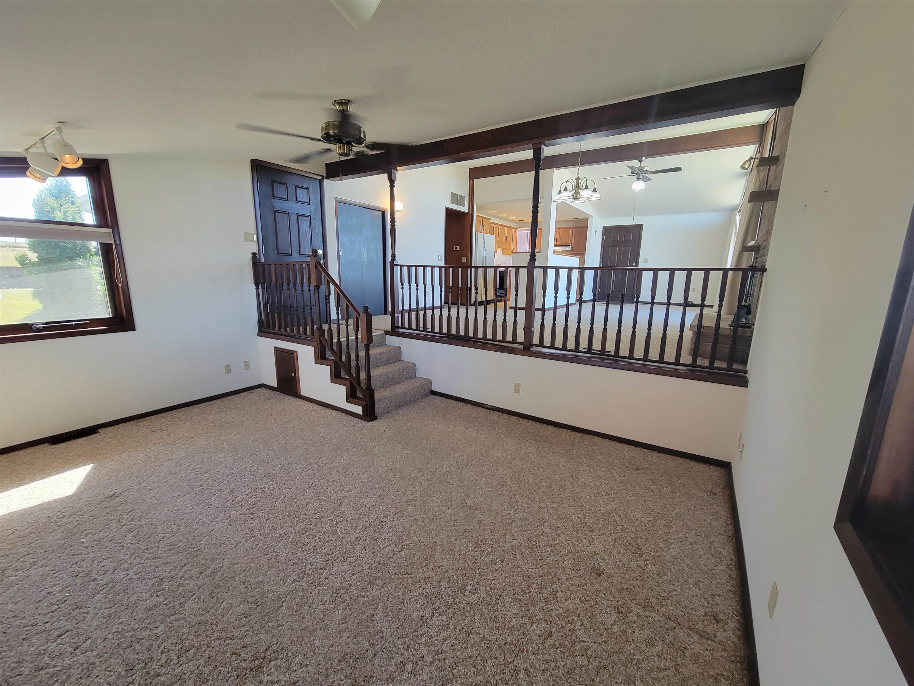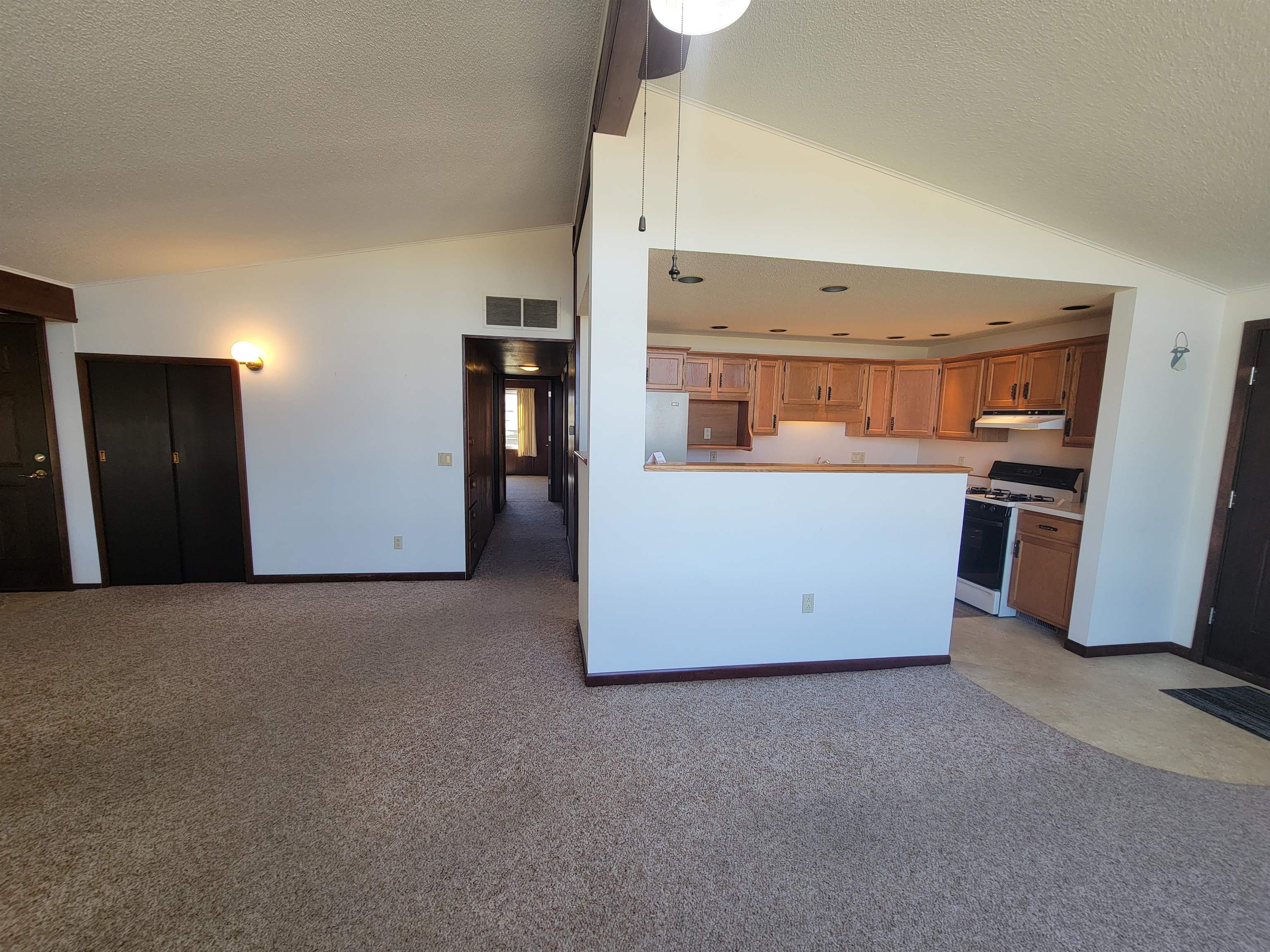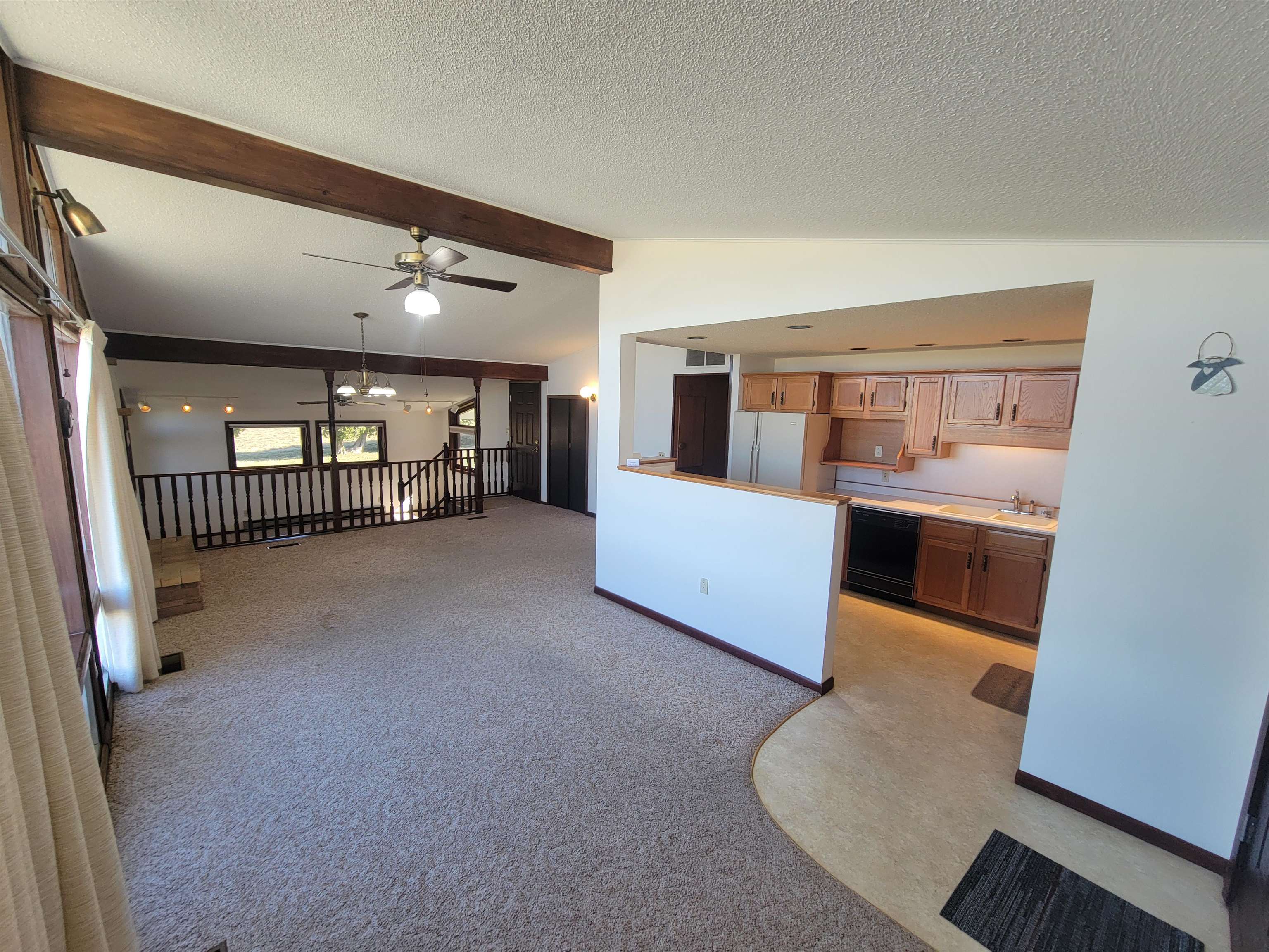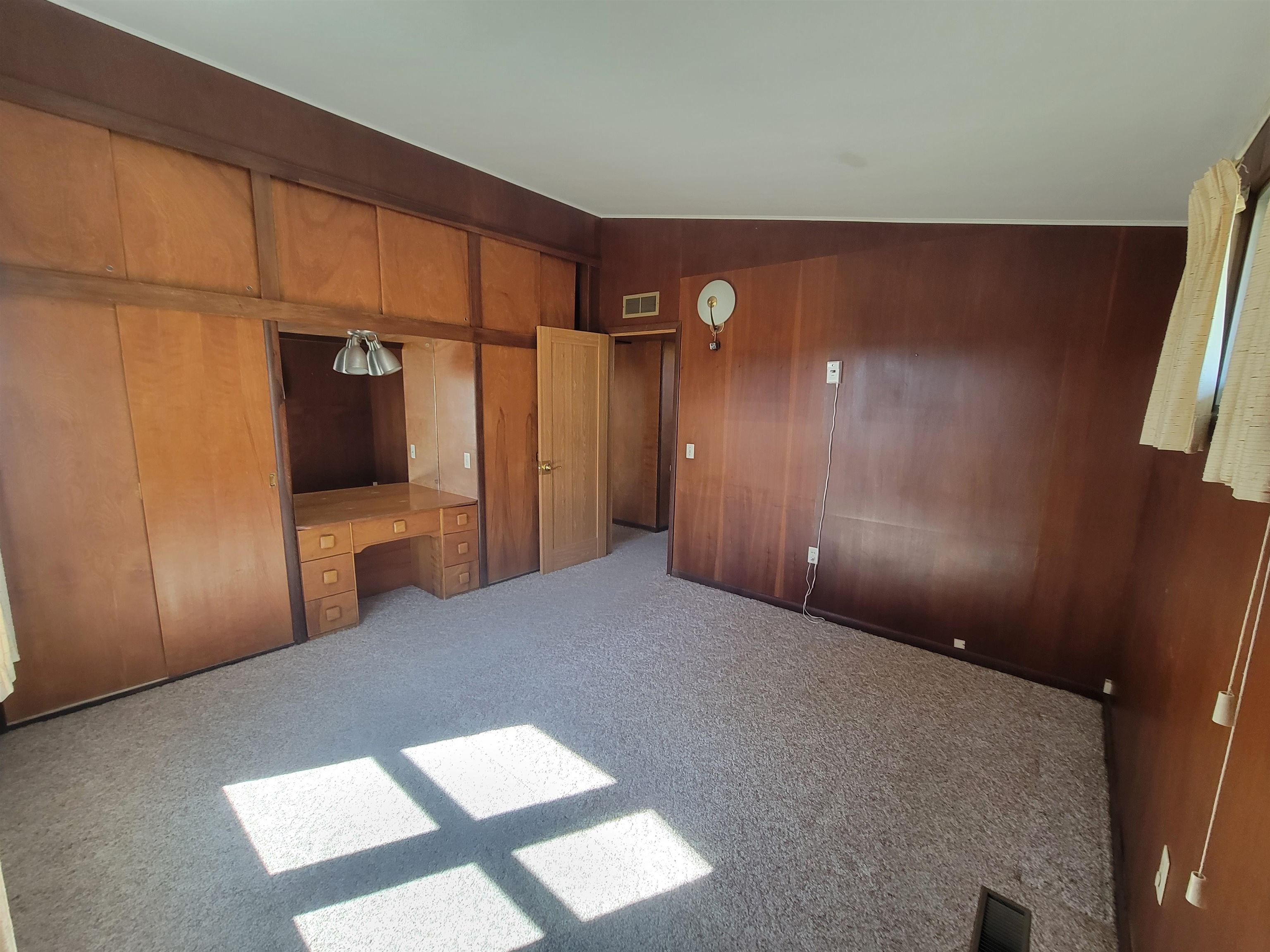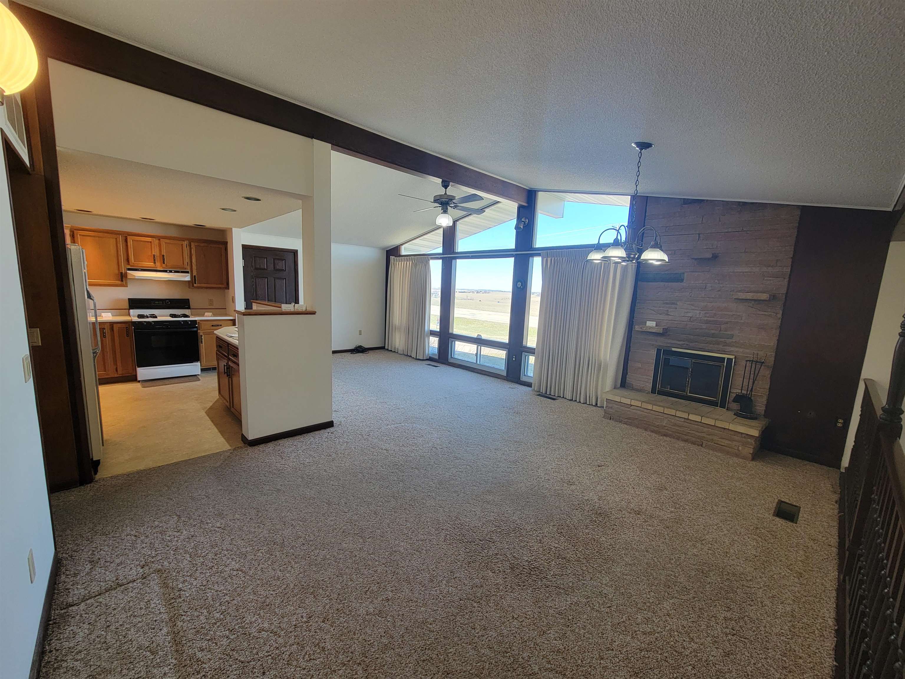 Well located mid century modern ranch home with nice open floor plan with an efficient galley style kitchen and roomy dining and living areas with a wood burning fireplace and three large picture windows with a beautiful view overlooking the "M". Sunken family room with access to a backyard patio. Nice large and level backyard. Primary bedroom includes a built in vanity with a matching closet on each side. Laundry area includes a stack laundry unit. The outside includes an attached carport with built in storage and a huge approximately 38x42 garage with natural gas forced air heat, electrical, and 8 and 12 foot overhead doors. Great location just a mile from Platteville. New water softener, electrical panel and toilet have been installed. Roof has been repaired.