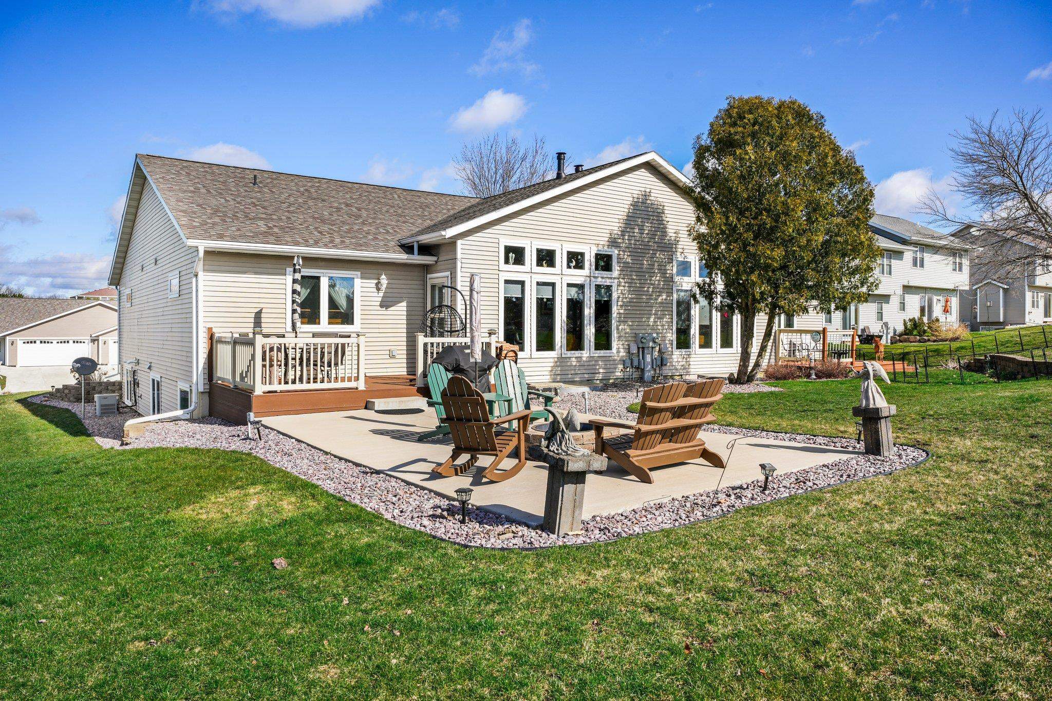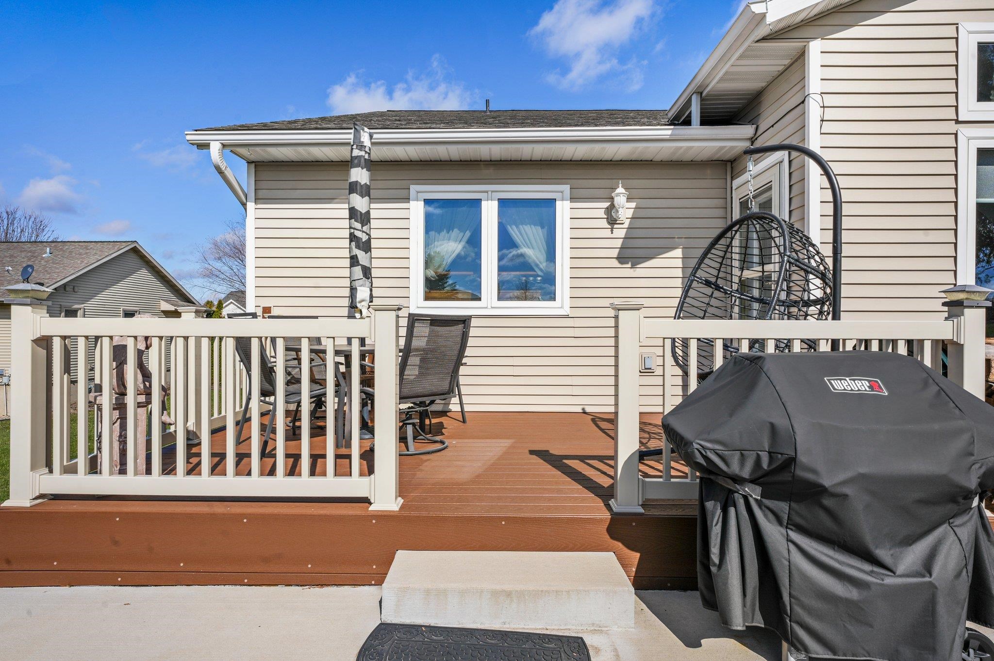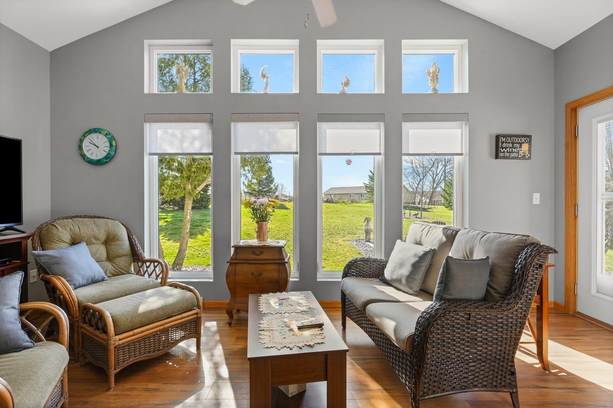 Welcome to your dream home! Step into a wonderfully spacious condominium featuring an open & airy floor plan with 3 bedrooms & 3 baths, w/an impressive vaulted ceiling & inviting fireplace. Delight in the seamless connection to nature w/an adjoining sunroom & composite deck. The primary suite is a sanctuary of comfort, complete w/ walk-in closet. Fall in love w/the dreamy kitchen, boasting ample storage space, granite countertops & sleek stainless steel appliances. A huge breakfast bar turns this home into the perfect spot for gatherings. The lower level is a bright & inviting space w/ a cheerful, sunny rec room & an additional bedroom & bath. Attached 2-car garage adds convenience. Venture outside to discover a spacious & private backyard, offering a peaceful country-like setting.