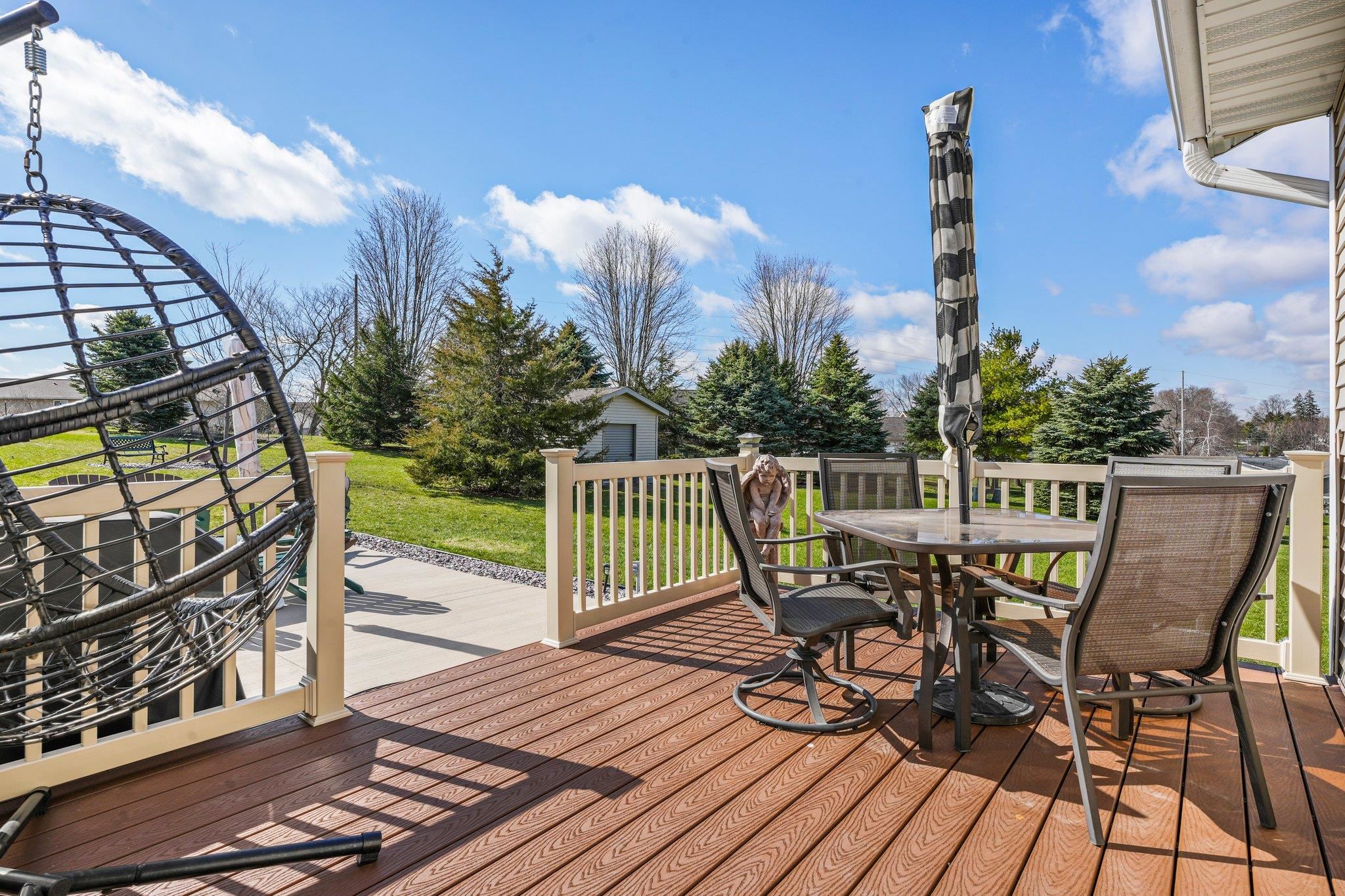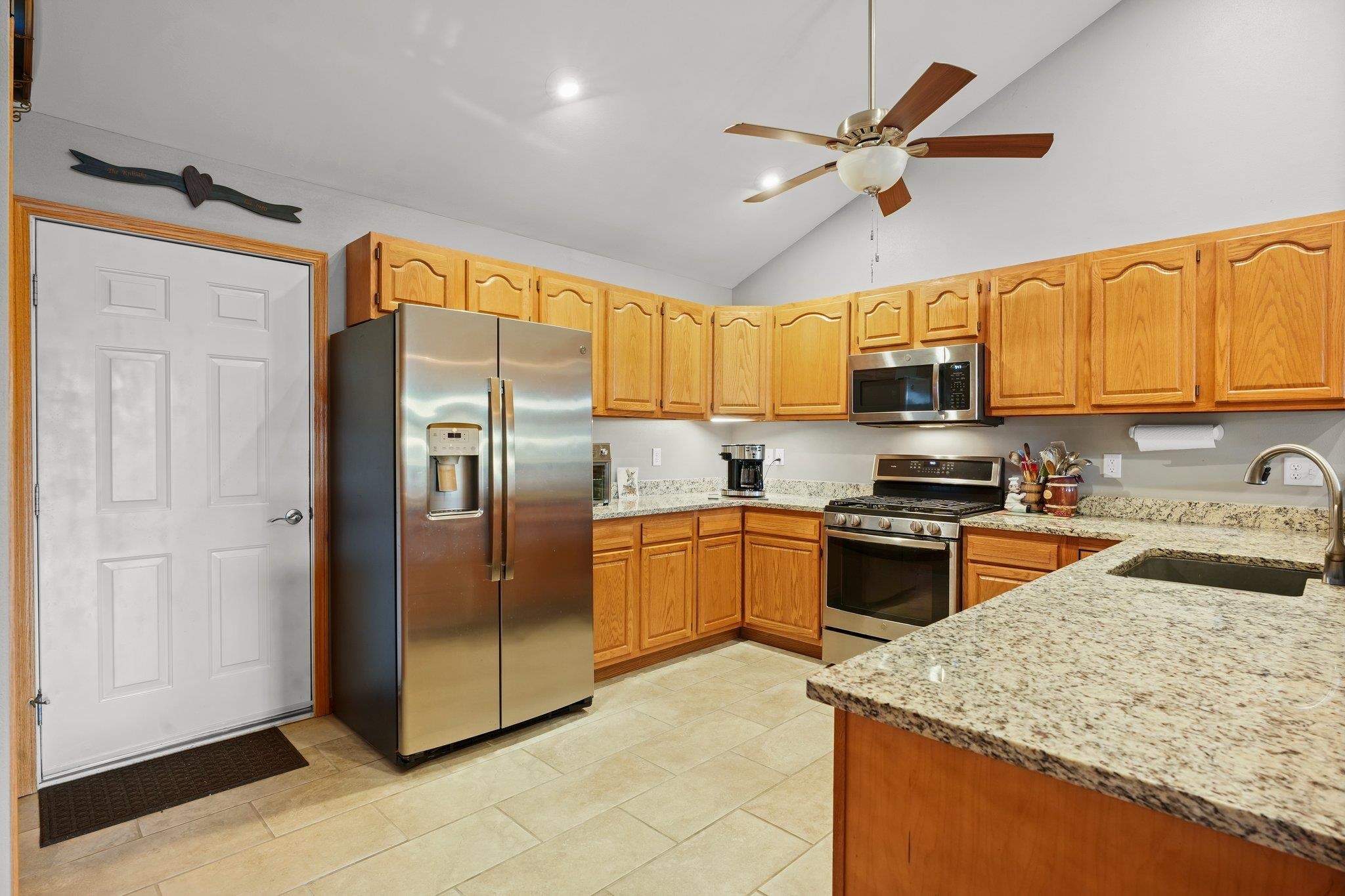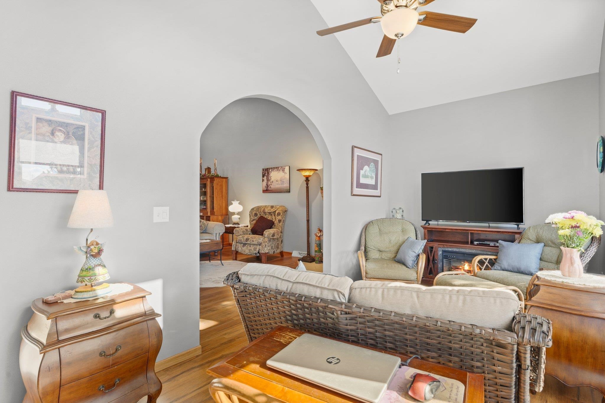 Welcome to your dream home! Step into a wonderfully spacious condominium featuring an open & airy floor plan with 3 bedrooms & 3 baths, w/an impressive vaulted ceiling & inviting fireplace. Delight in the seamless connection to nature w/an adjoining sunroom & composite deck. The primary suite is a sanctuary of comfort, complete w/ walk-in closet. Fall in love w/the dreamy kitchen, boasting ample storage space, granite countertops & sleek stainless steel appliances. A huge breakfast bar turns this home into the perfect spot for gatherings. The lower level is a bright & inviting space w/ a cheerful, sunny rec room & an additional bedroom & bath. Attached 2-car garage adds convenience. Venture outside to discover a spacious & private backyard, offering a peaceful country-like setting.