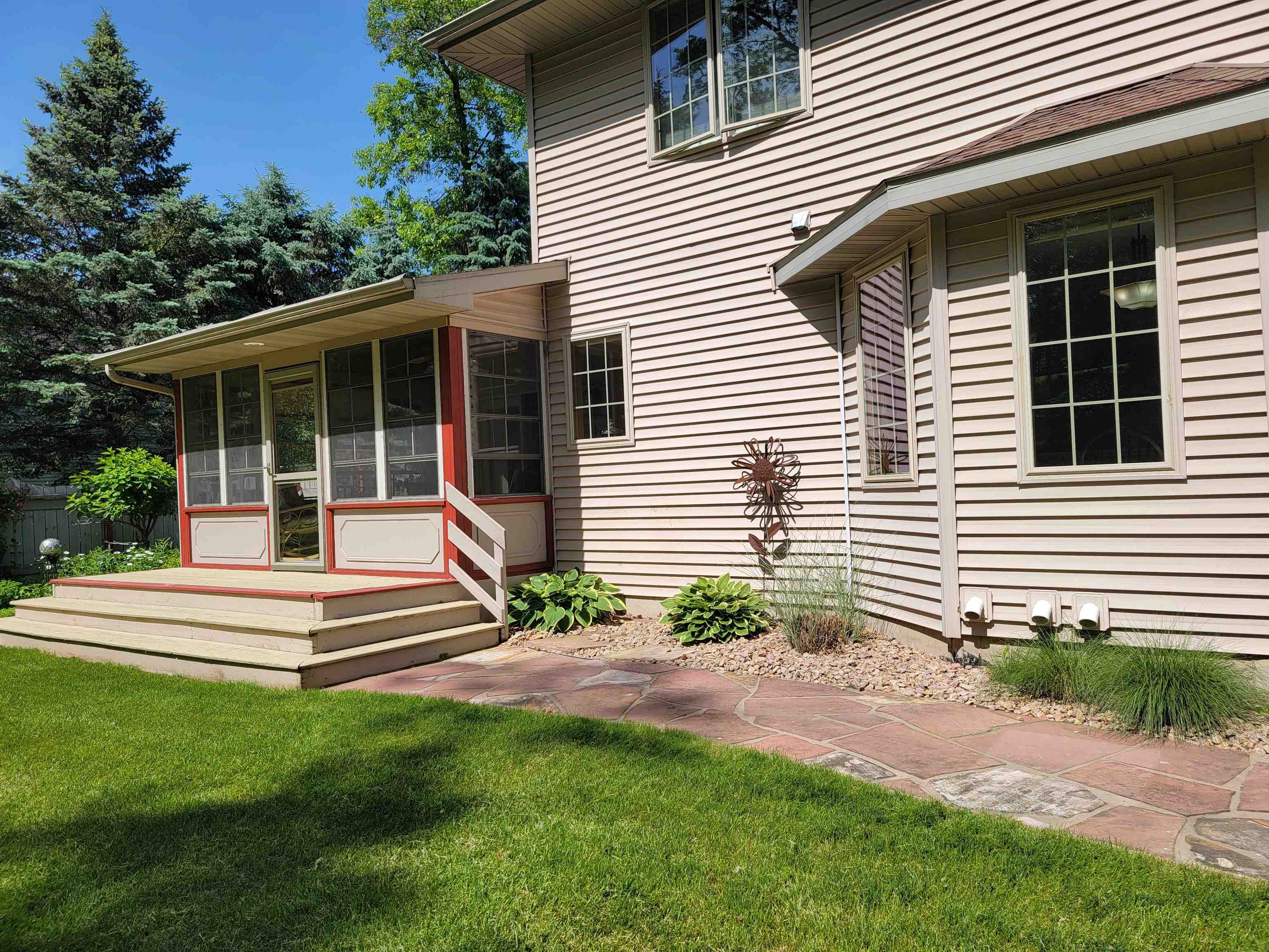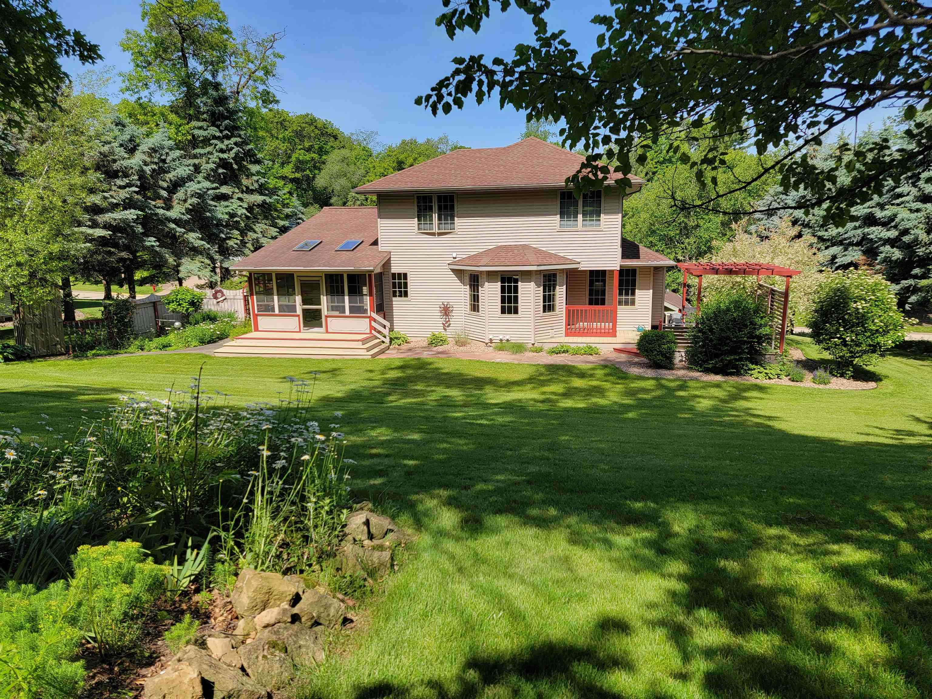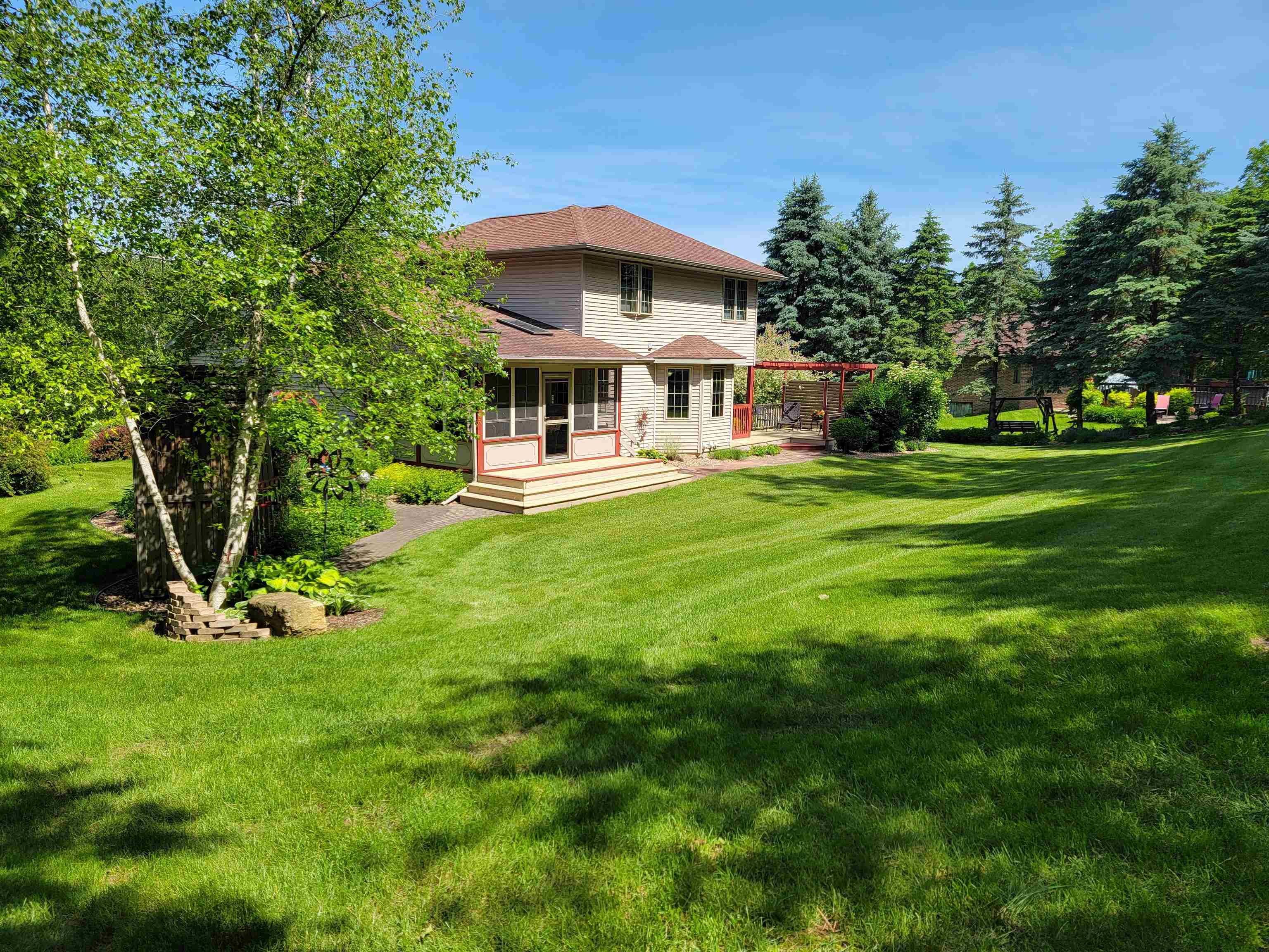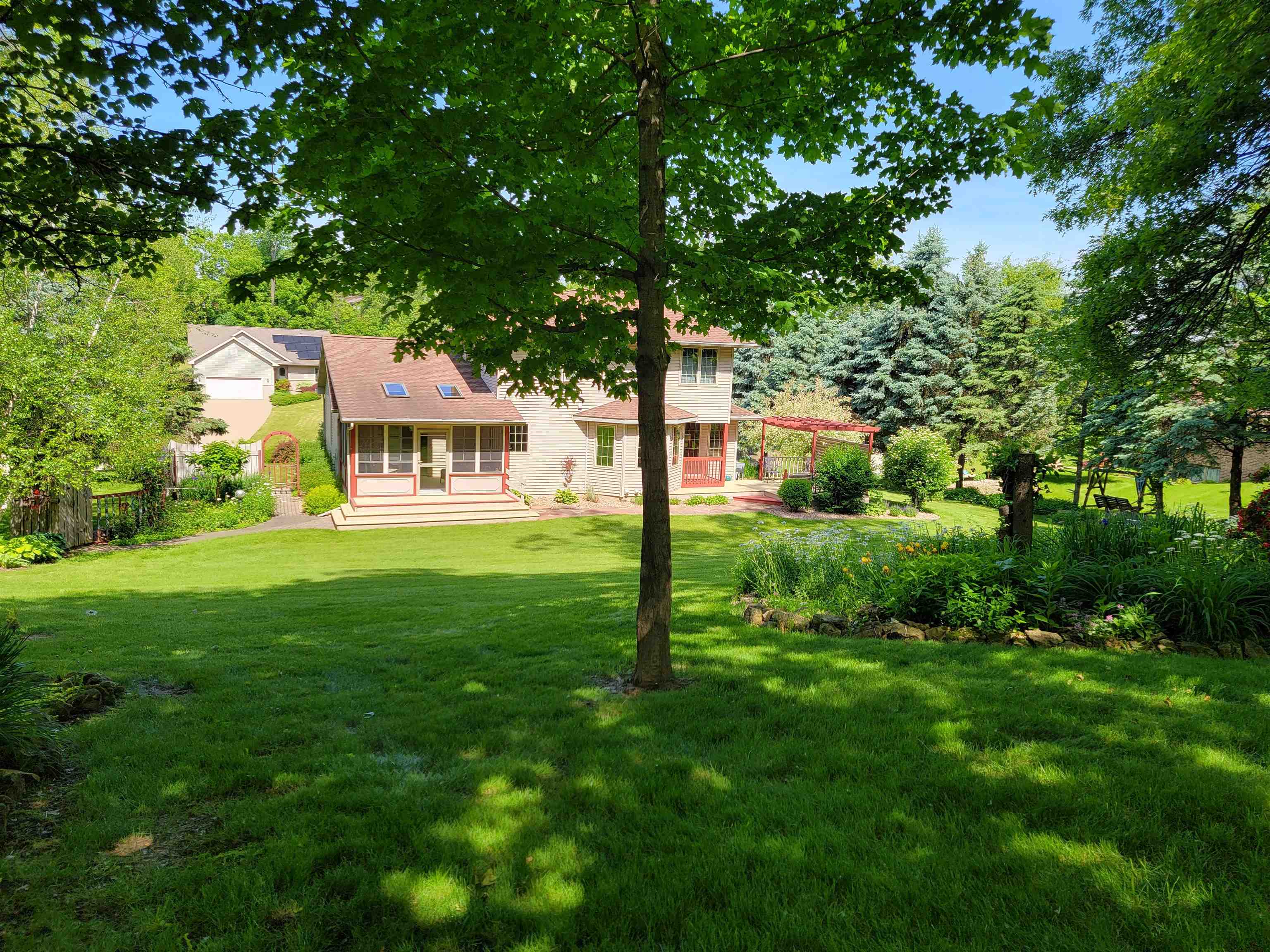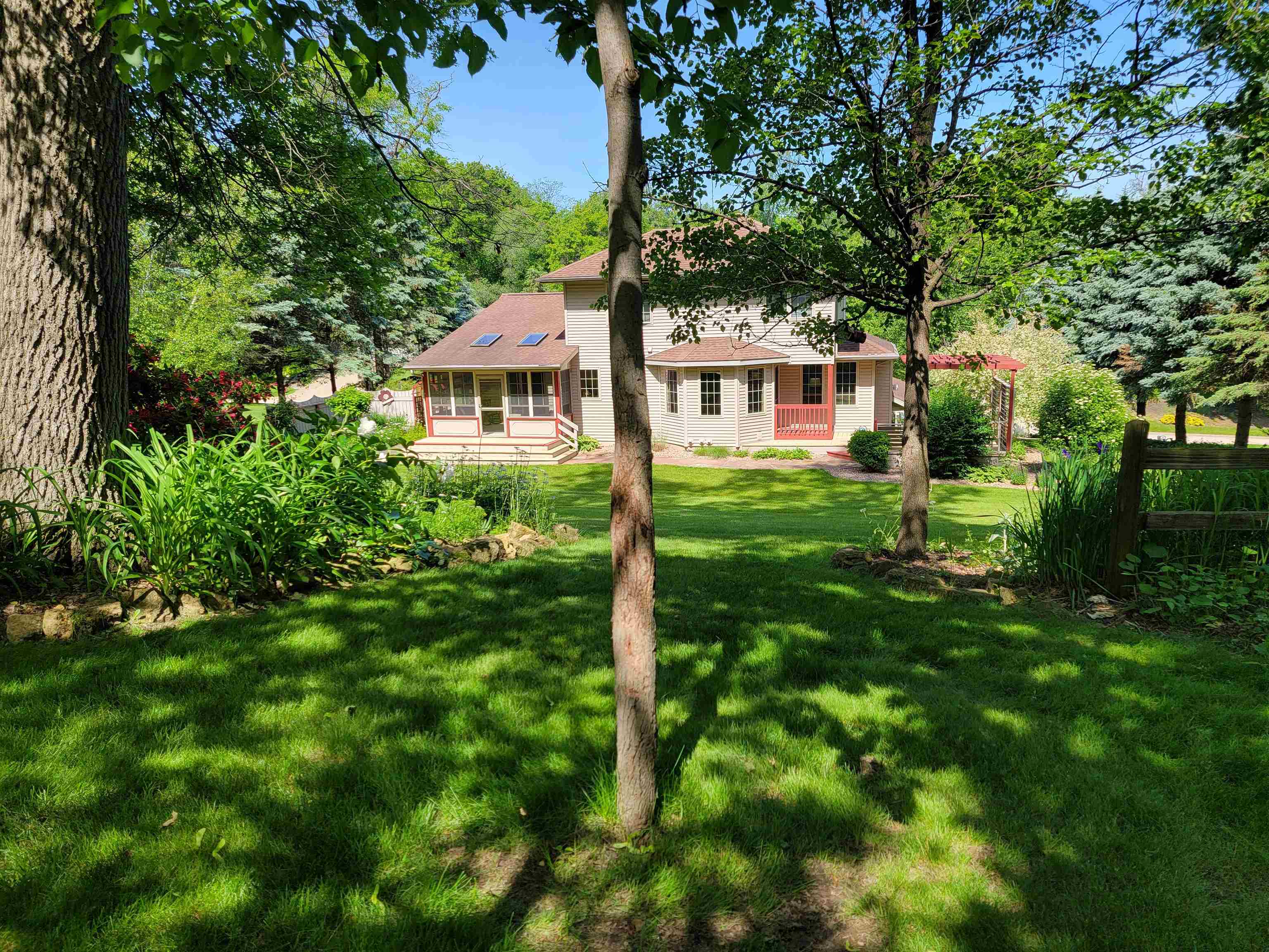 Motivated Sellers! Plenty of room with MANY Updates - Charming one owner 4 BR, 3.5 BA home that has been pampered and well maintained through out its lifetime. Gas fireplace is located in the family room next to the breakfast nook and open kitchen. Perfect for simple relaxing at home or plenty of room for guests and entertaining. Bright kitchen area looks out over the beautifully landscaped yard with a manmade dry creek bed and stone pavers. The park like back yard has plenty of privacy & peace. Newer large windows with custom window treatments make a great transition from interior space to the outdoors. Convenient location close to UW-Platteville and within a quick commute of Dubuque, Iowa.