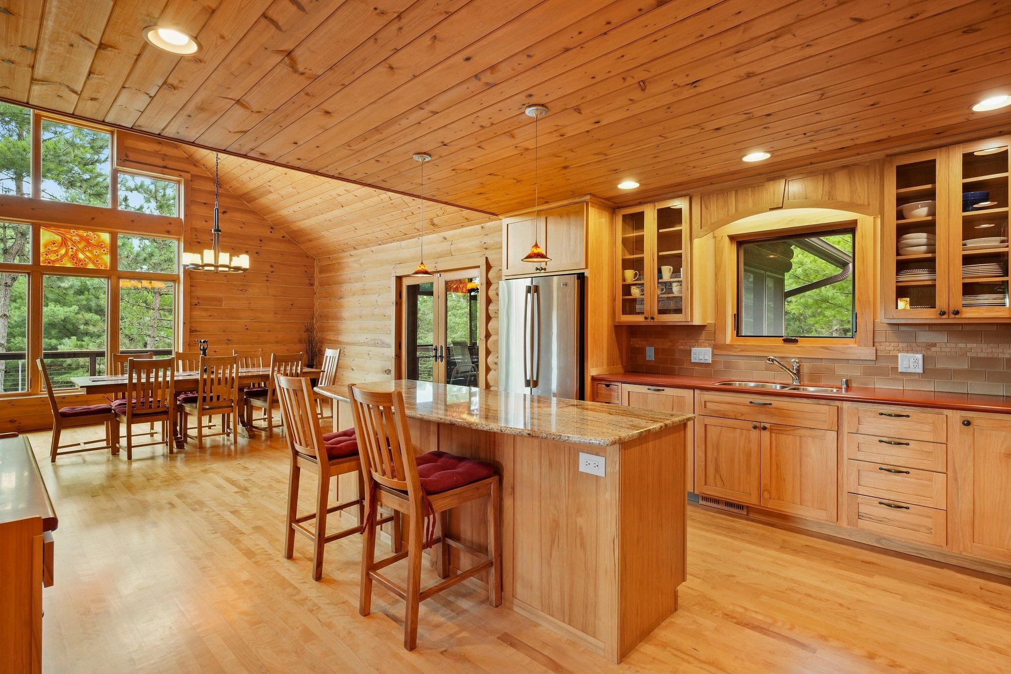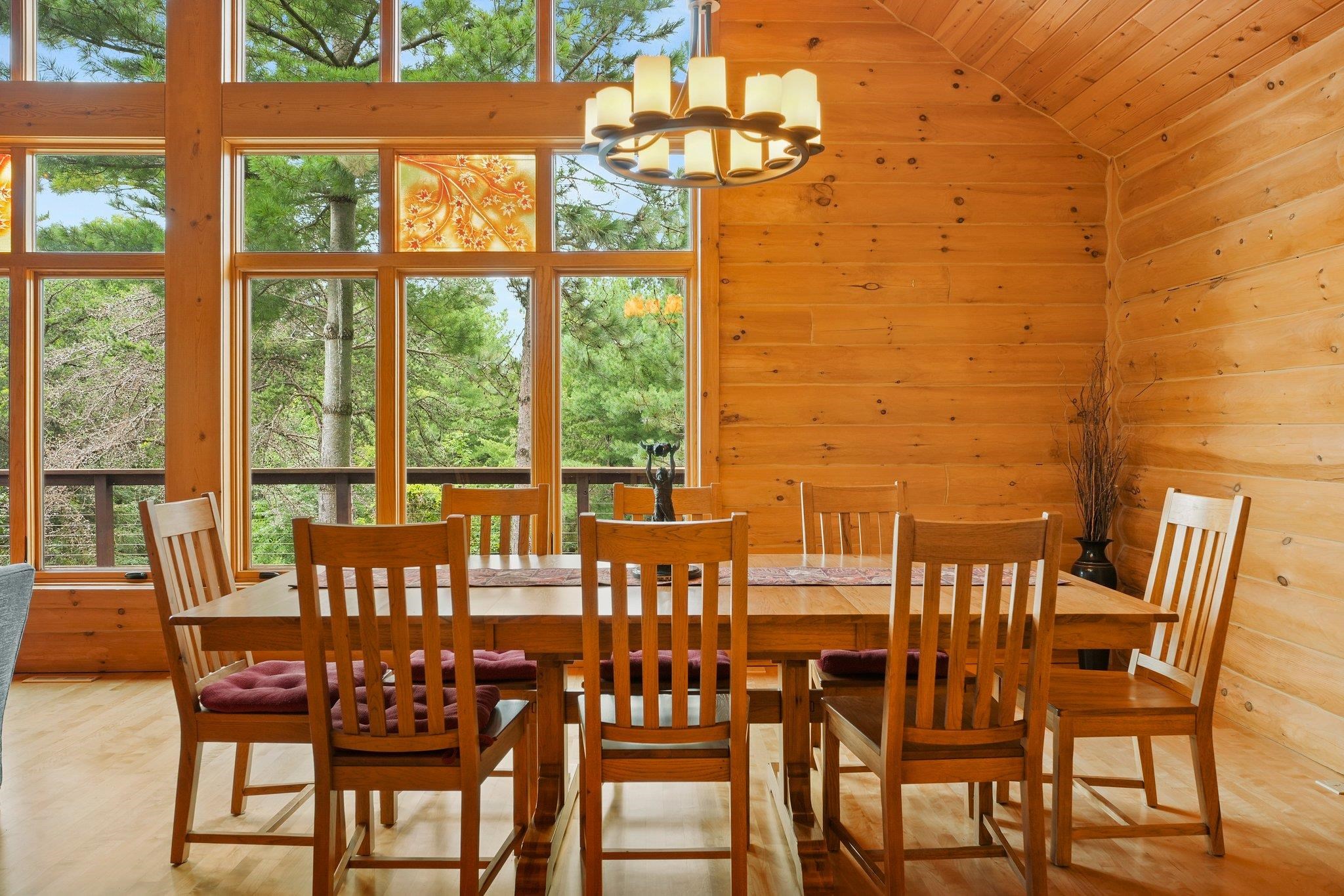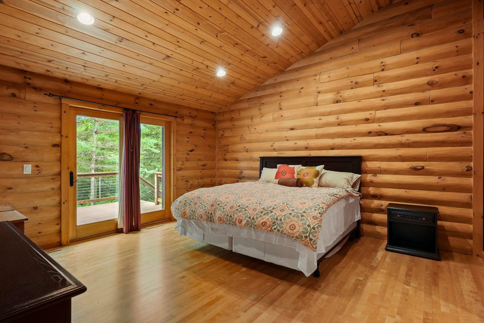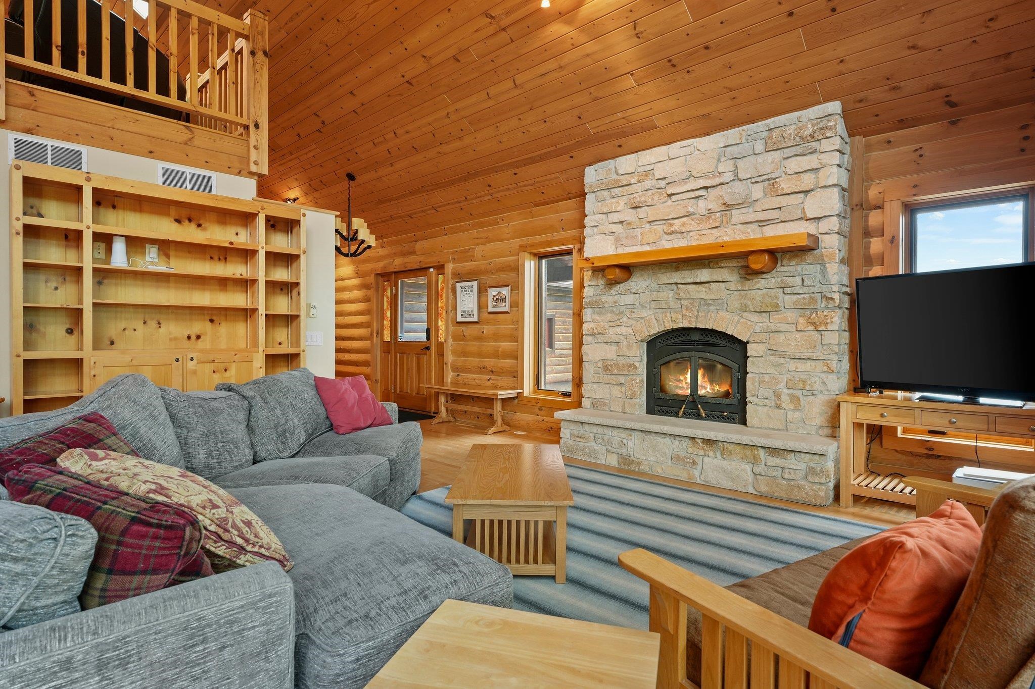 Welcome to your private oasis! Stunning log home is set on over 90 ac. Main level boasts beautiful limestone wood-burning fireplace, open floor plan w/vaulted ceiling & large windows. Spacious kitchen has high-quality stainless appliances, pantry & center island. Main level incl a primary suite w/2 walk-in closets & convenient laundry. Thoughtful details throughout: built-ins like bookshelves, storage, office desk, closet systems, kitchen spice drawer, epoxy-finished garage & radiant flr heating in the walkout level. Enjoy the 19’x13’ screened porch. Property has 40 ac in MFL, 25 tillable ac, over 5 ac of trails, rock outcroppings, creek, apple & pear trees & well-maintained outbuildings & barn w/metal roof. Fenced areas provide flexibility for horses/cattle. Excellent deer hunting.