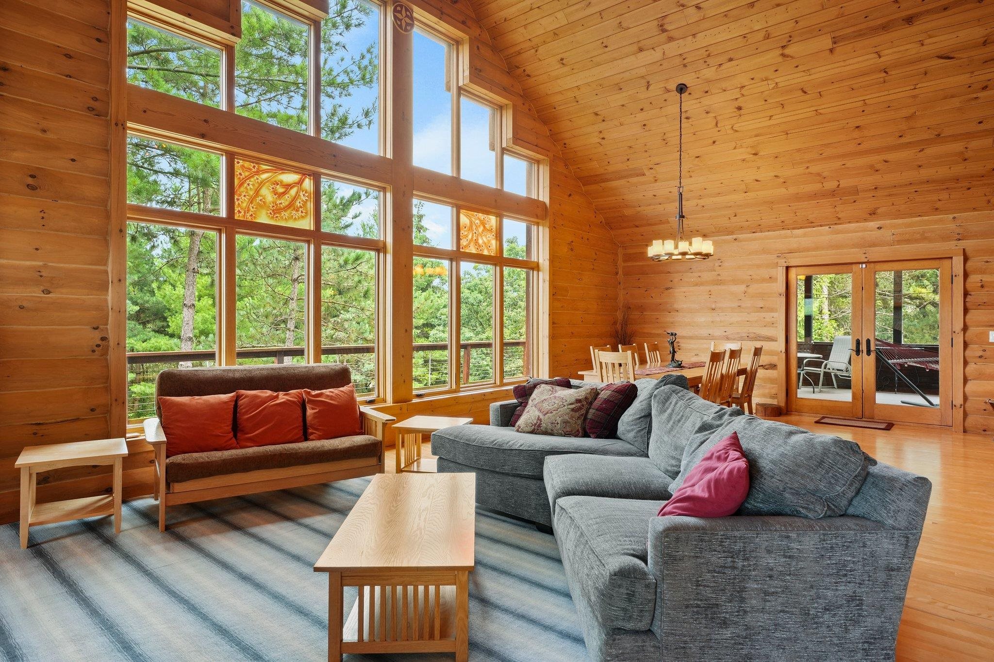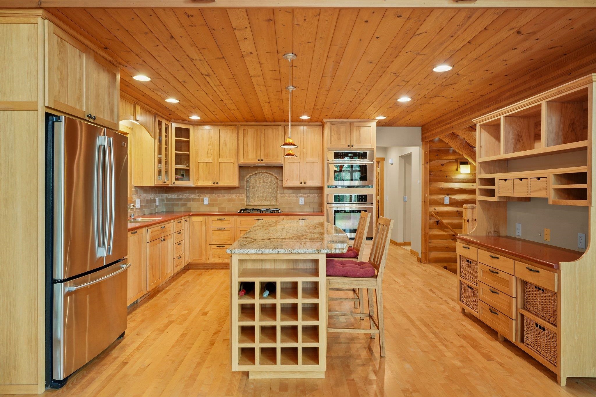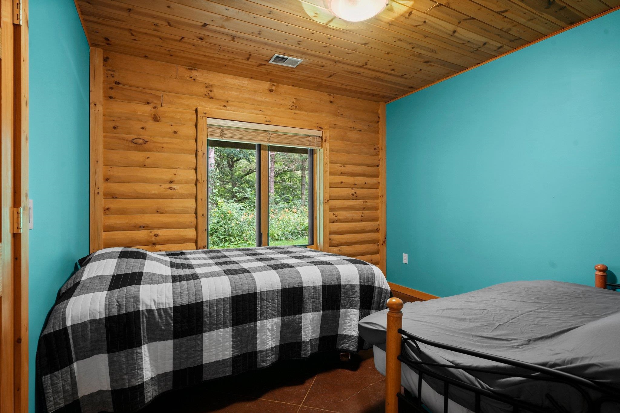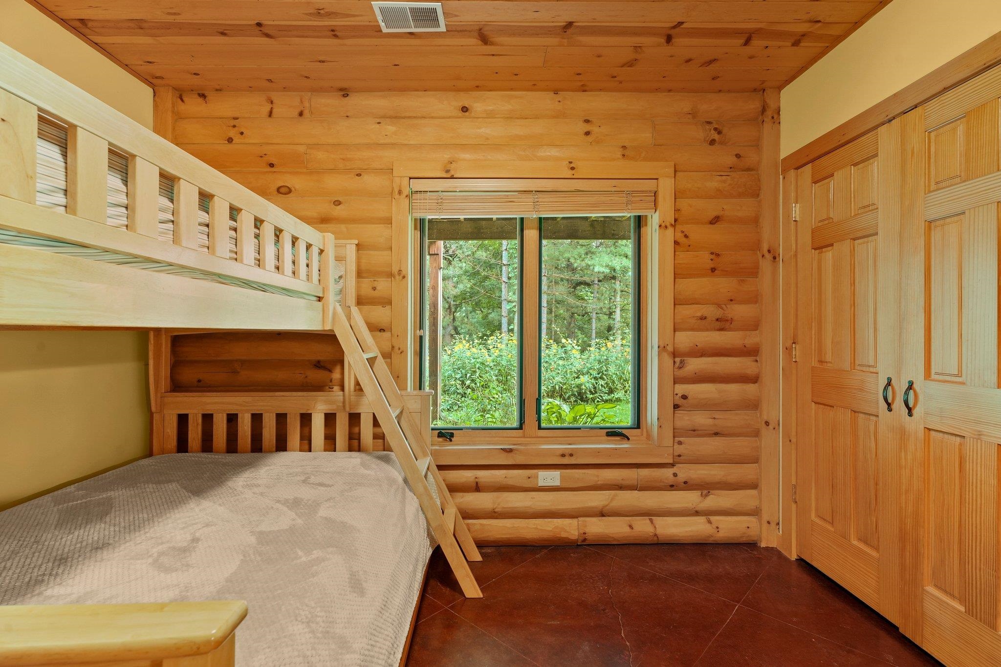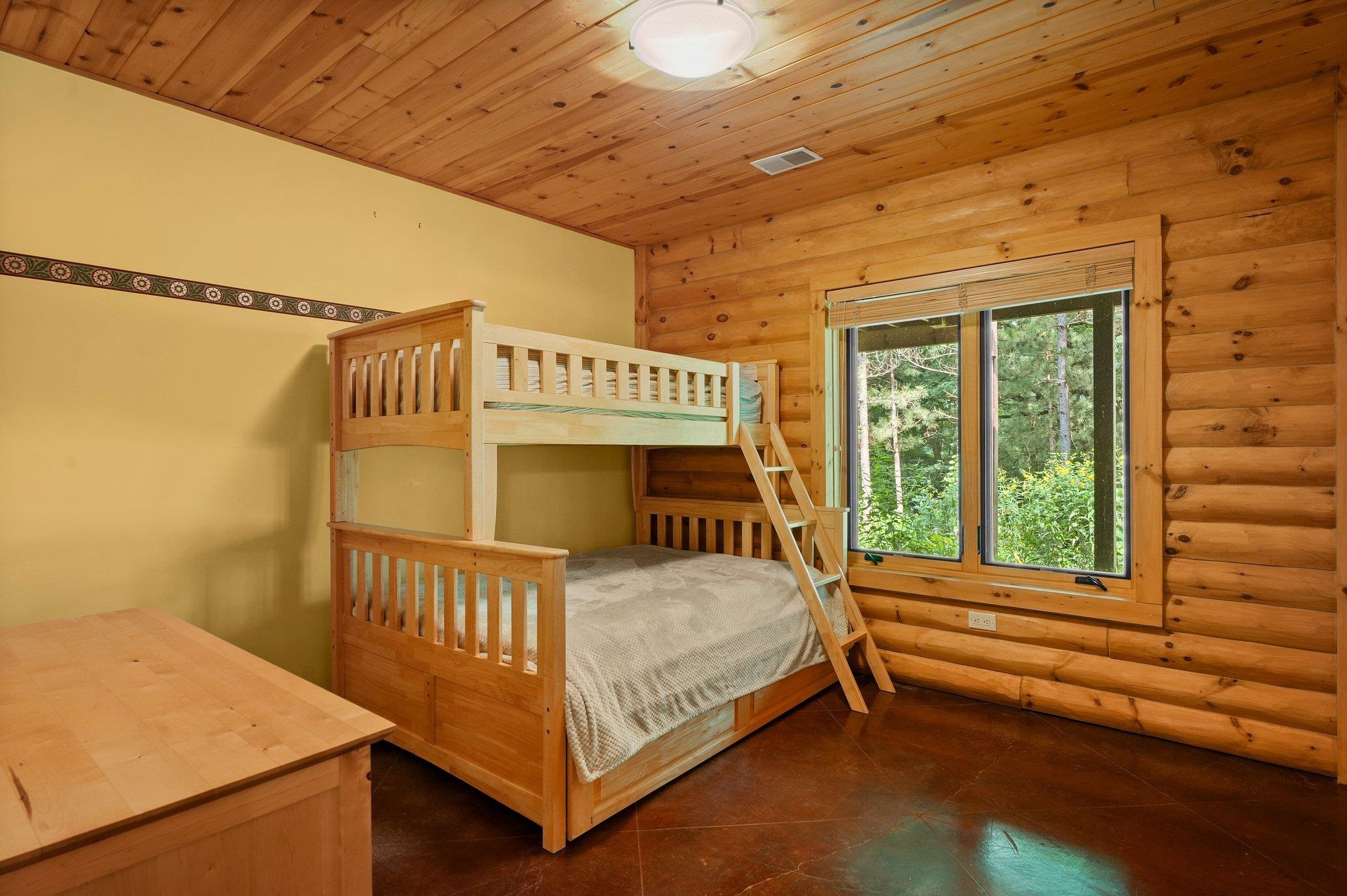 Welcome to your private oasis! Stunning log home is set on over 90 ac. Main level boasts beautiful limestone wood-burning fireplace, open floor plan w/vaulted ceiling & large windows. Spacious kitchen has high-quality stainless appliances, pantry & center island. Main level incl a primary suite w/2 walk-in closets & convenient laundry. Thoughtful details throughout: built-ins like bookshelves, storage, office desk, closet systems, kitchen spice drawer, epoxy-finished garage & radiant flr heating in the walkout level. Enjoy the 19’x13’ screened porch. Property has 40 ac in MFL, 25 tillable ac, over 5 ac of trails, rock outcroppings, creek, apple & pear trees & well-maintained outbuildings & barn w/metal roof. Fenced areas provide flexibility for horses/cattle. Excellent deer hunting.