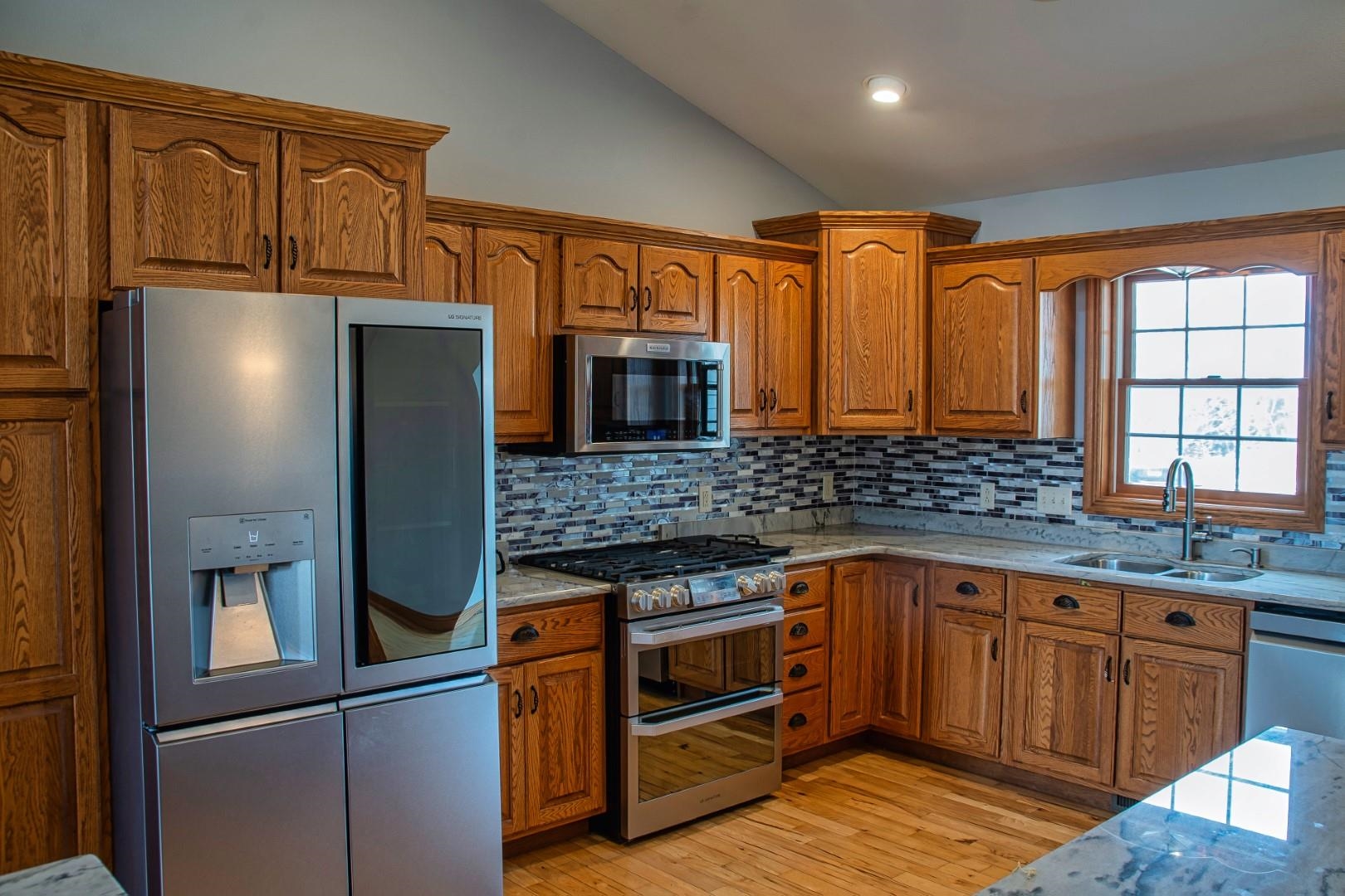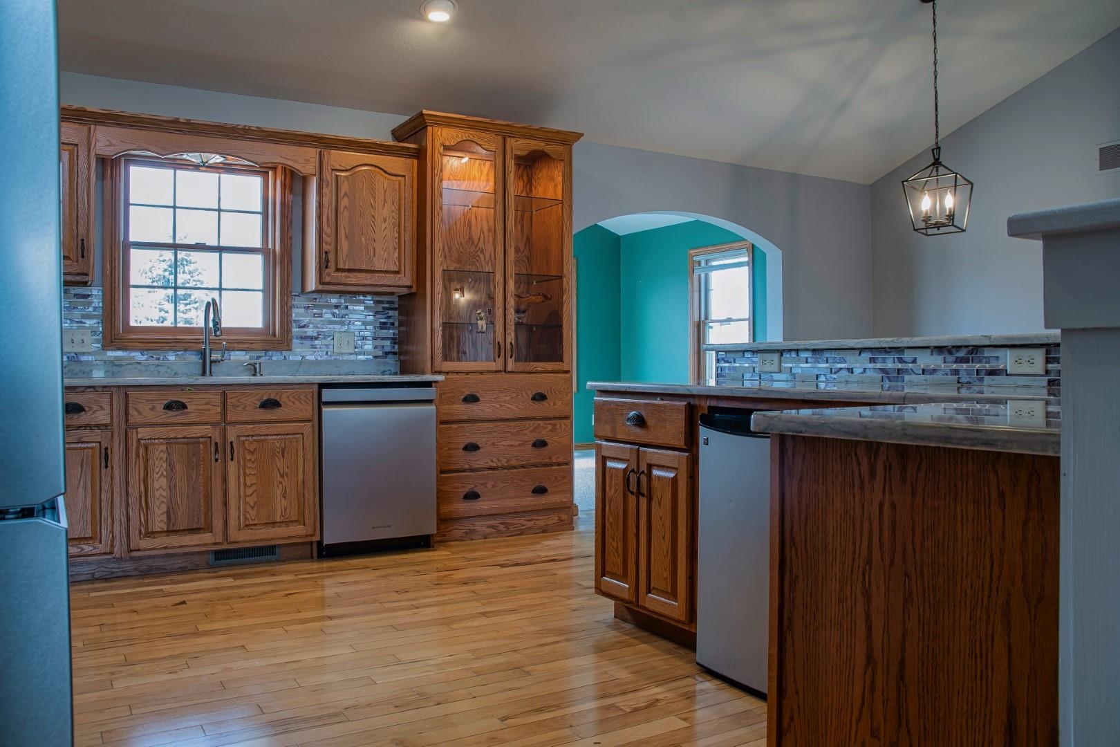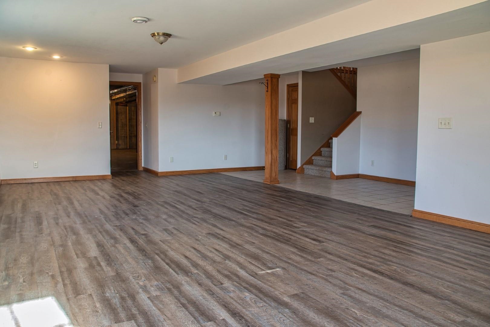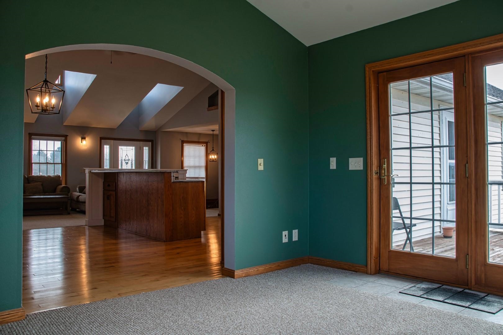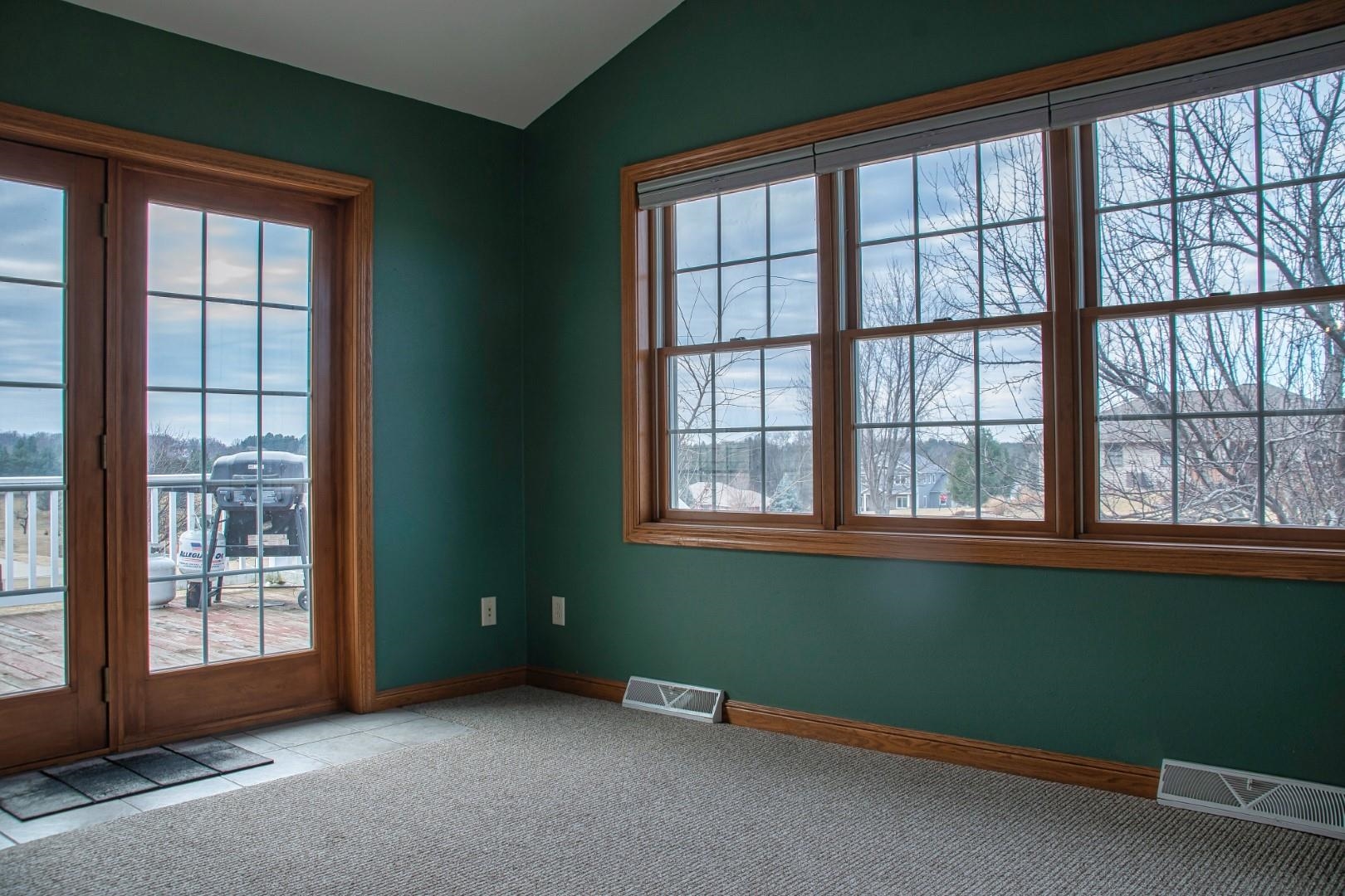 Enter the great room with vaulted ceilings, dormers, and a impressive fireplace open to the kitchen. The large dining area leads to the sun room and deck. The split bedrooms allow for a suite featuring tray ceilings, wood floors, double walk in closets, a bath with double sinks and a jetted tub with separate shower. The additional 2 bedrooms with a full bath with provided privacy. The lower level walkout has a family room full bath and a storage/work area.